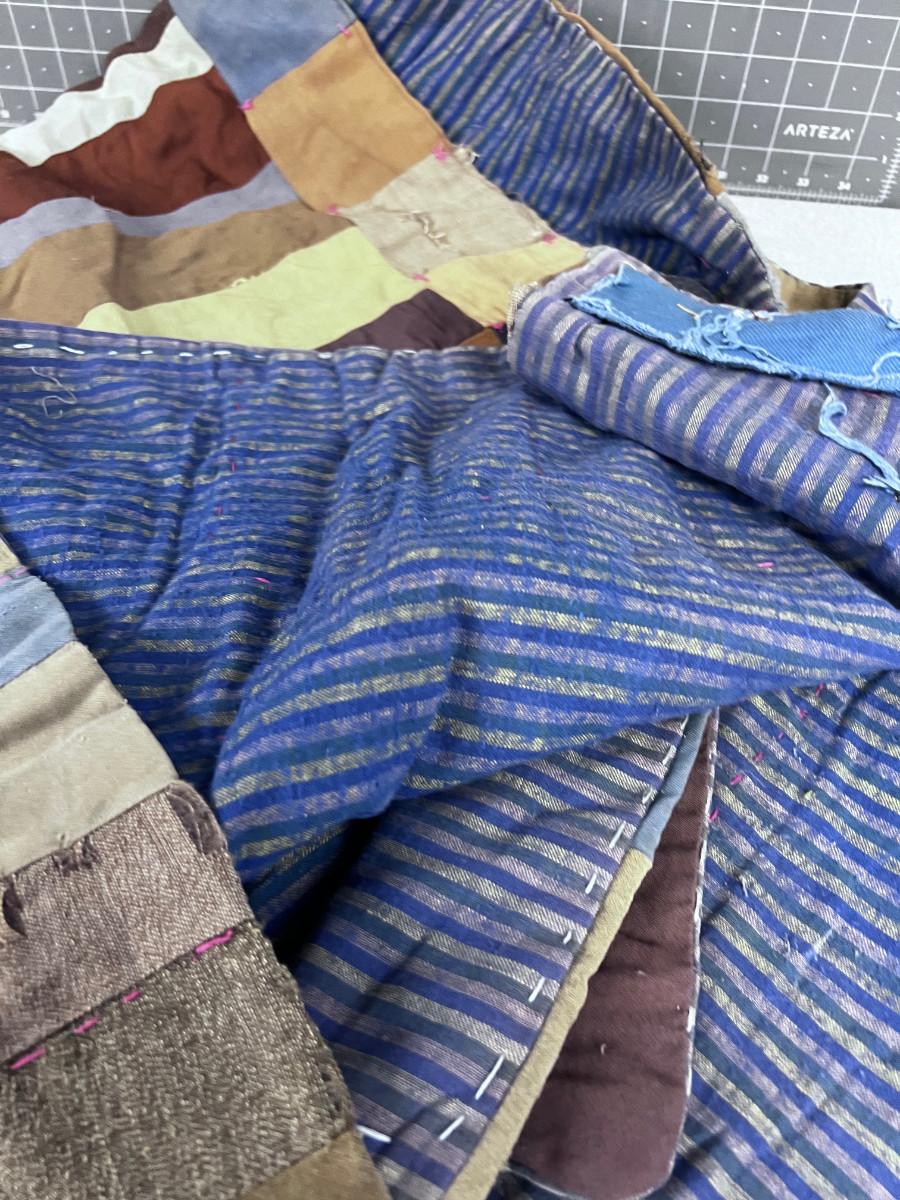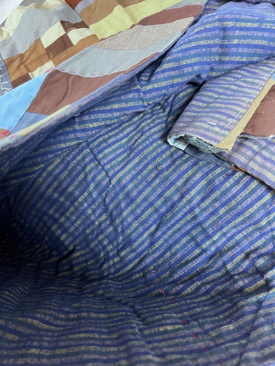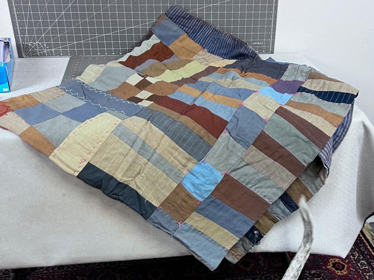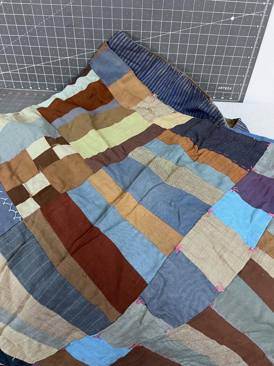 Antique Patchwork Quilt, Dark Demin, Made out of old Men's Suits