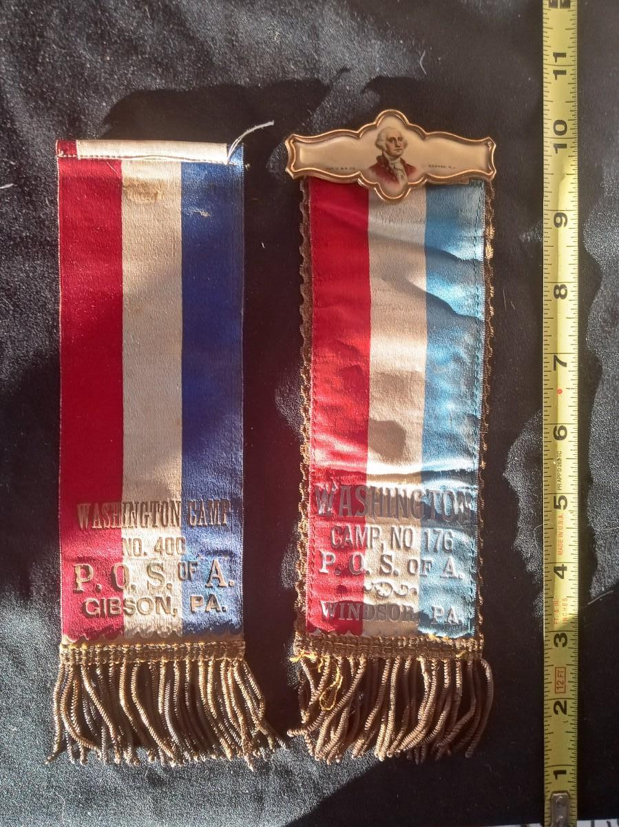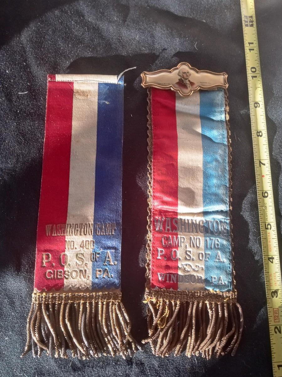 GEORGE WASHINGTON BADGE/PIN ON 1 OF THE RIBBONS, BOTH HAVE METAL TASSELS
