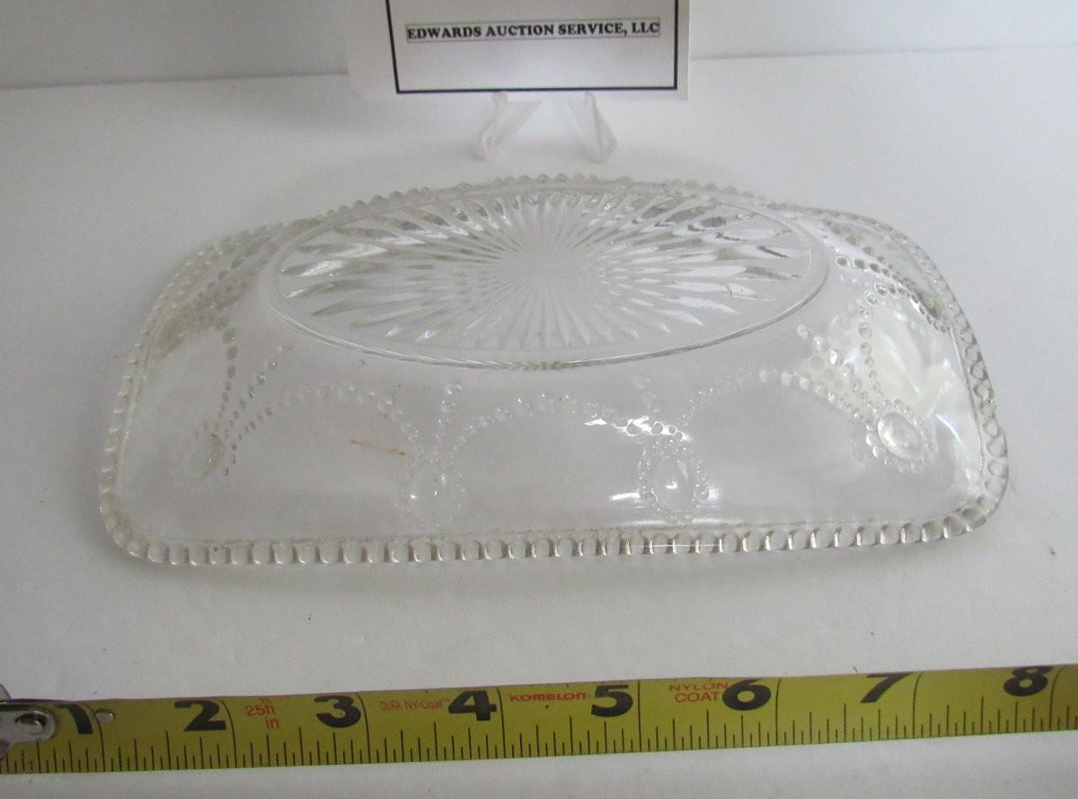 Old pattern/pressed glass only has edge roughness in spots, no chips or cracks. Shipping is available on this lot with additional shipping and handling fees. See our terms for details.