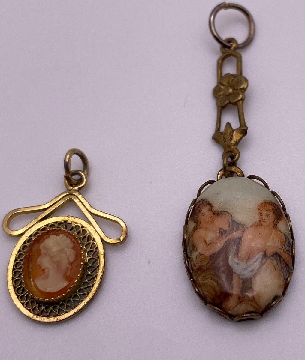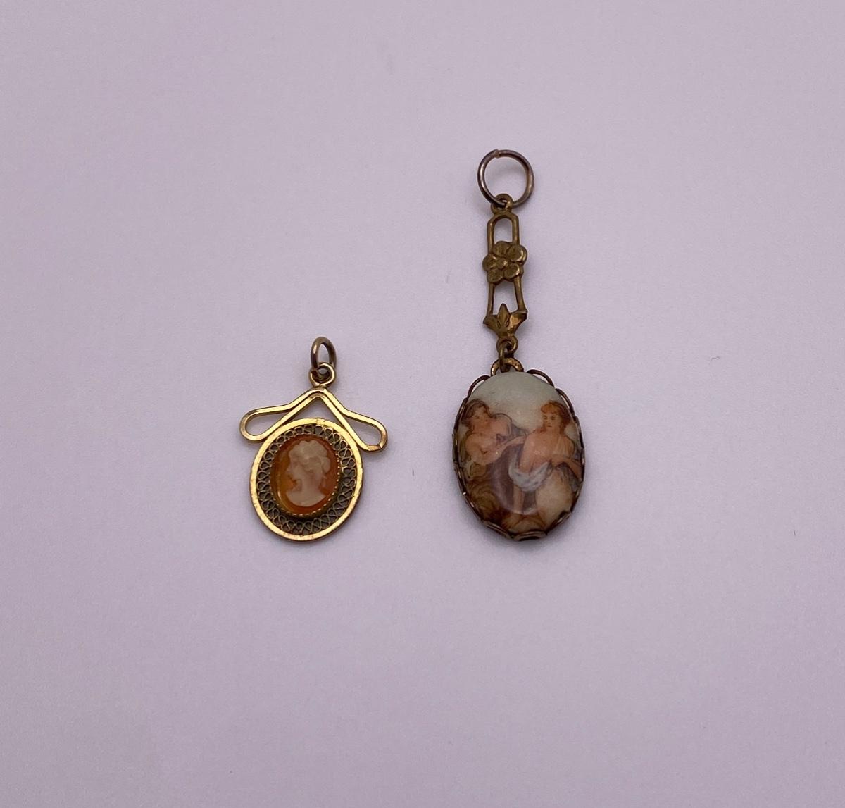Two Antique Pendants. One Pendant in Cameo and Other Pendant with Art