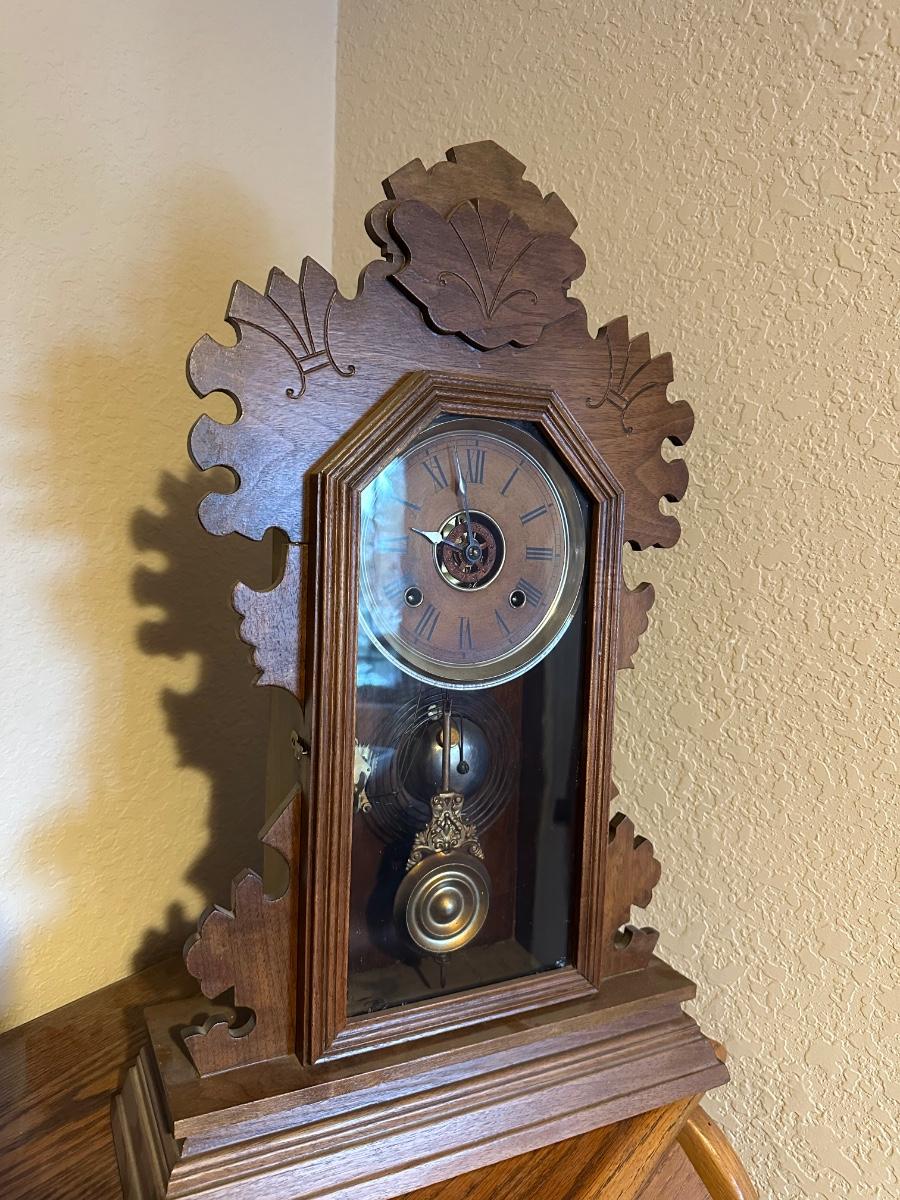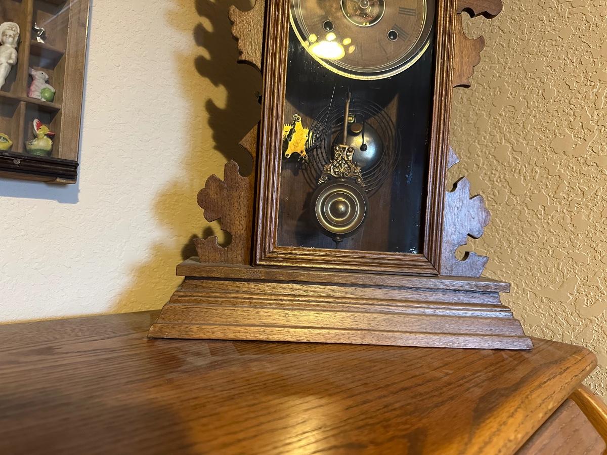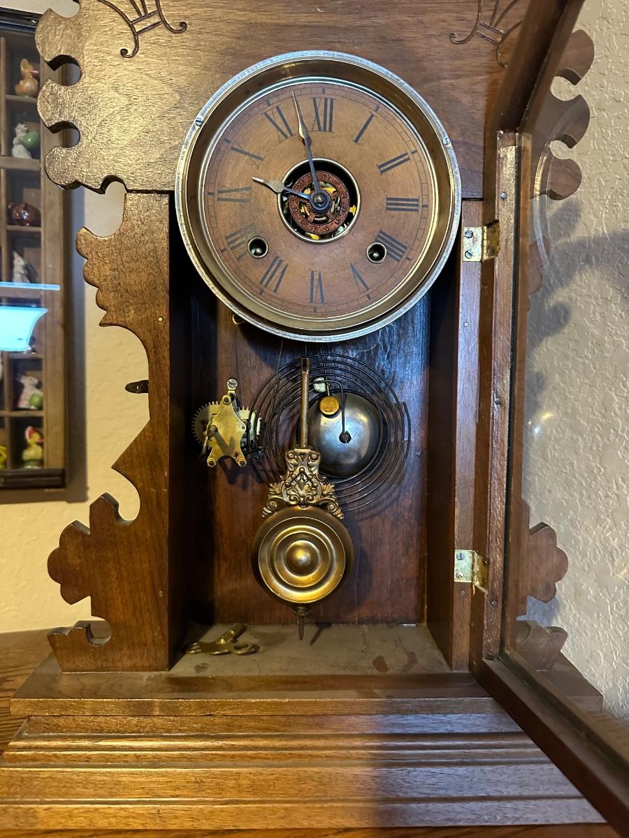 ANTIQUE PENDULUM MANTLE CLOCK WITH KEY