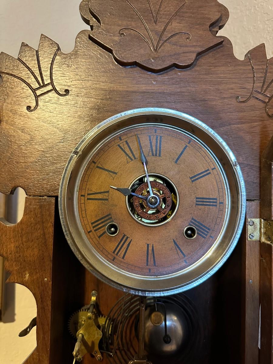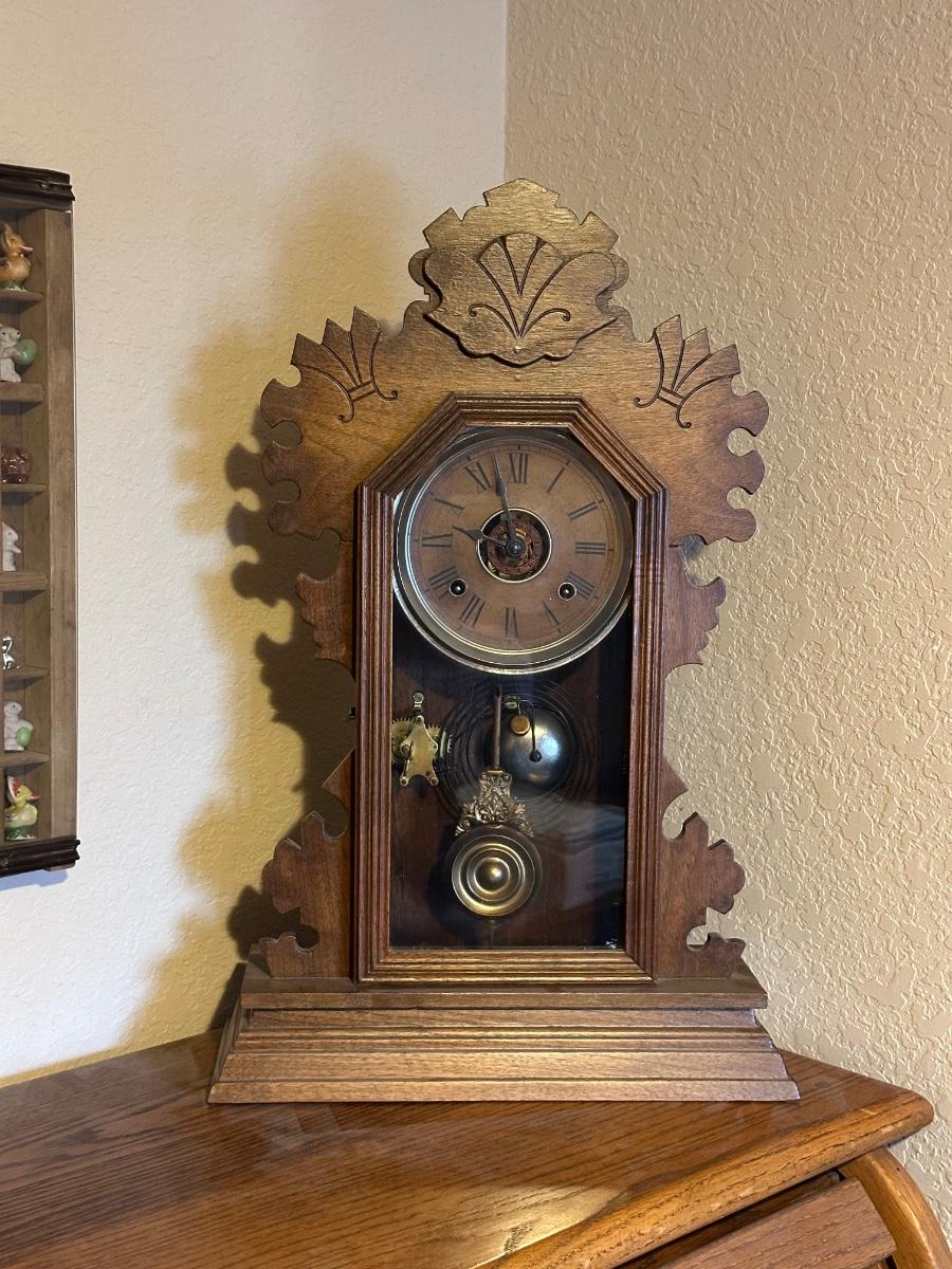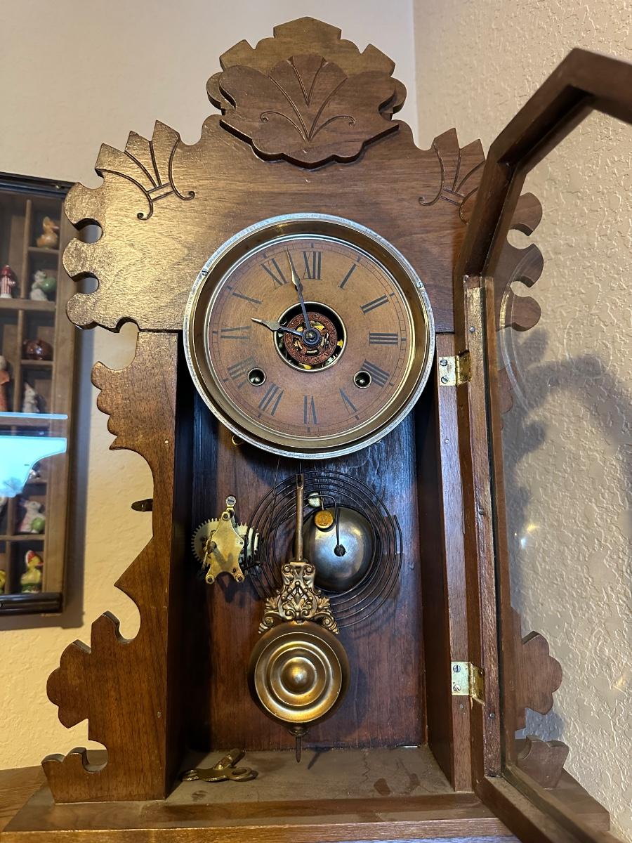 ANTIQUE PENDULUM MANTLE CLOCK WITH KEY
