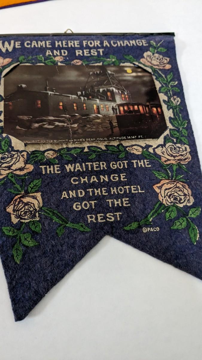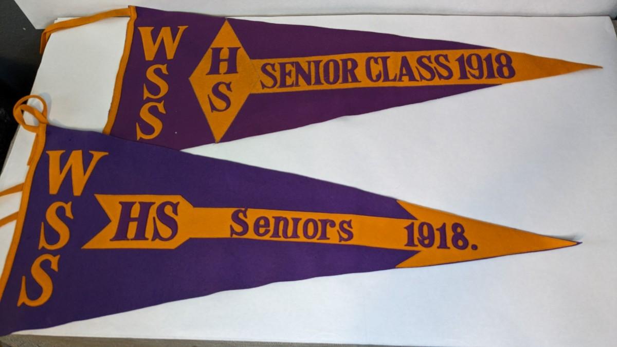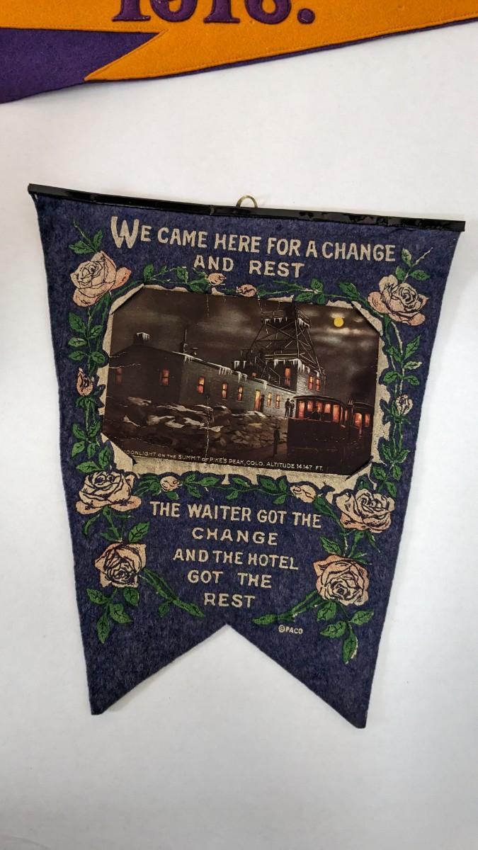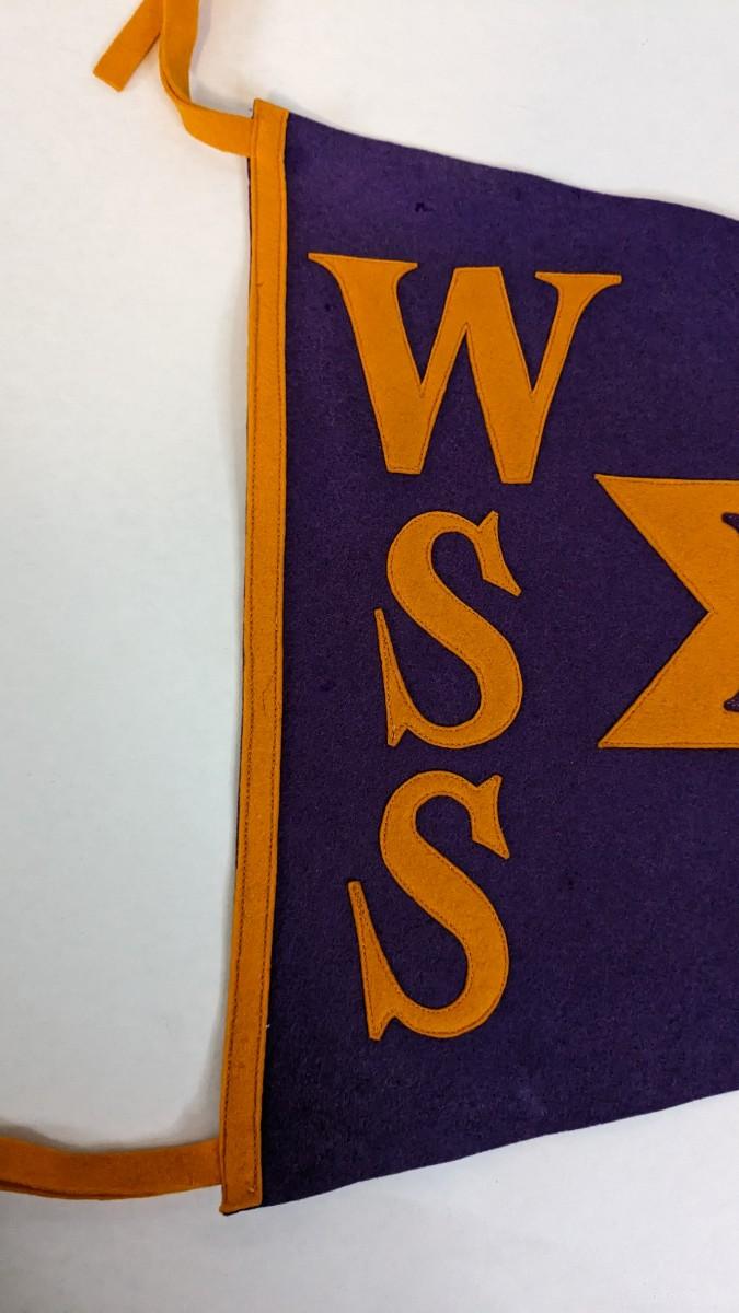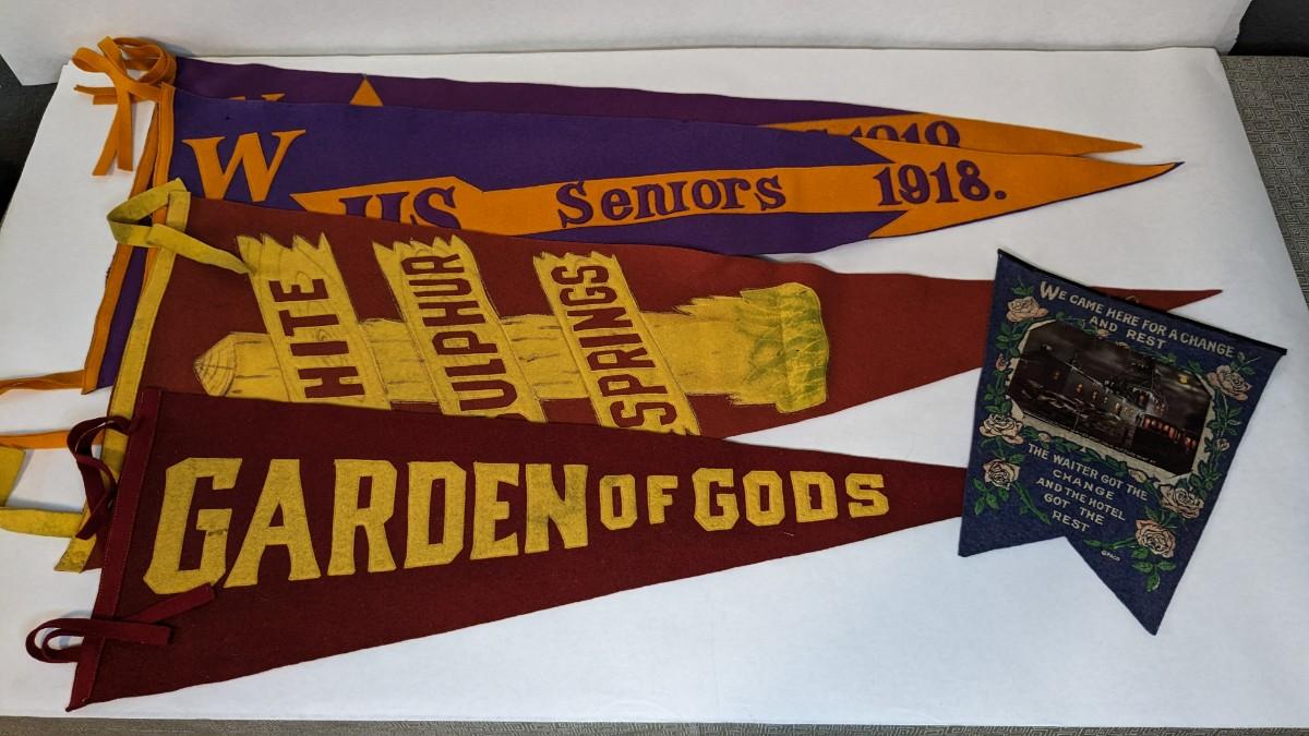 (5) varied size and subject matter antique pennants. All show some signs of wear with WSS being the only 2 with true holes. Very neat pieces of history