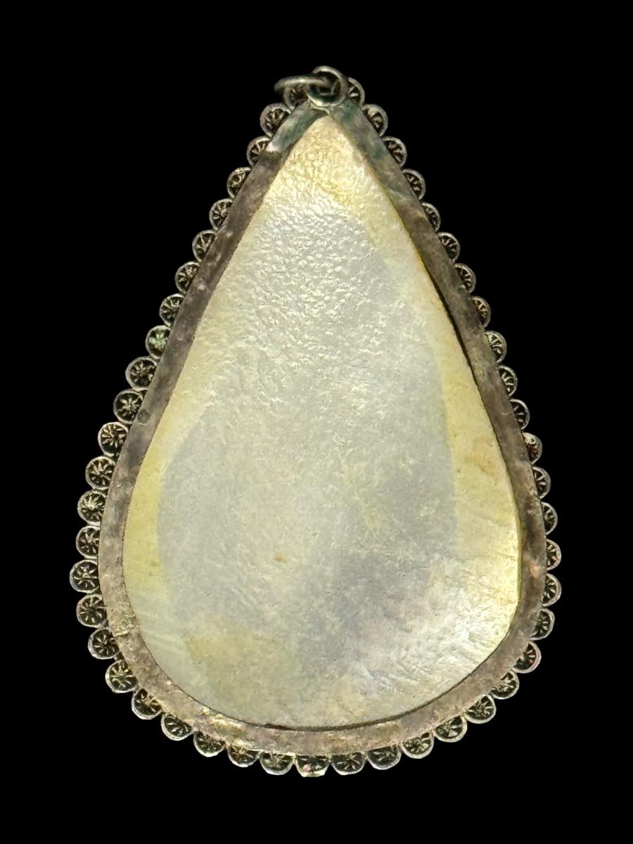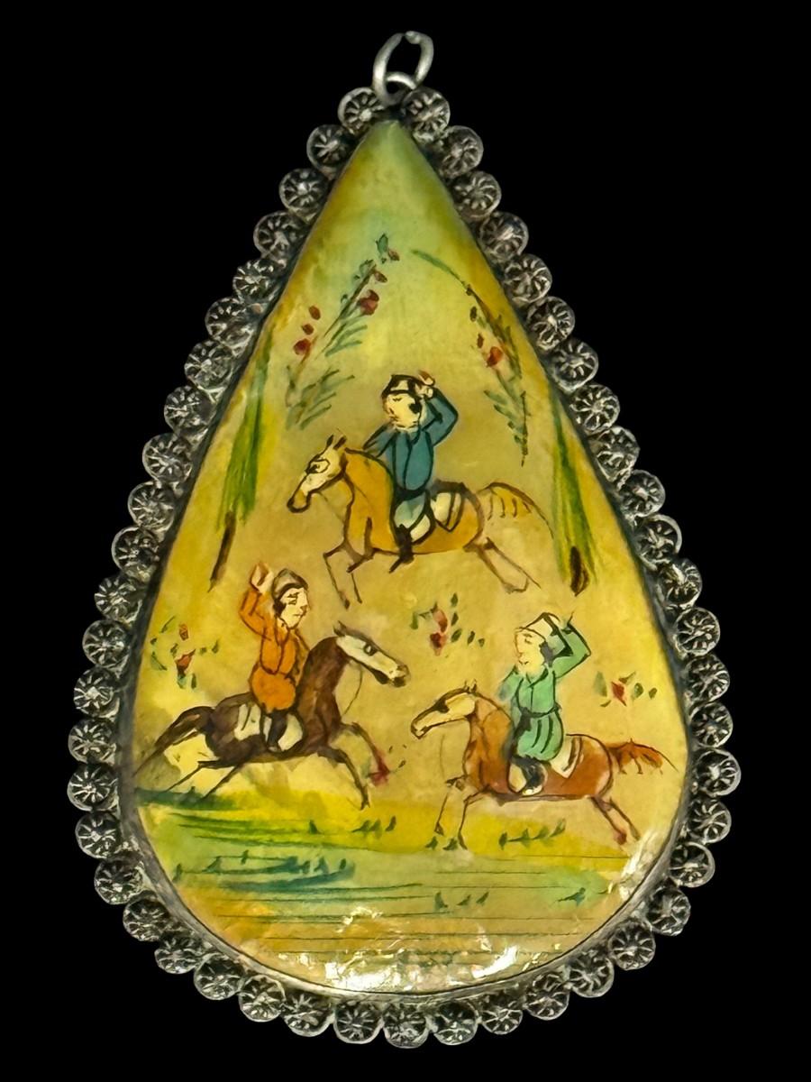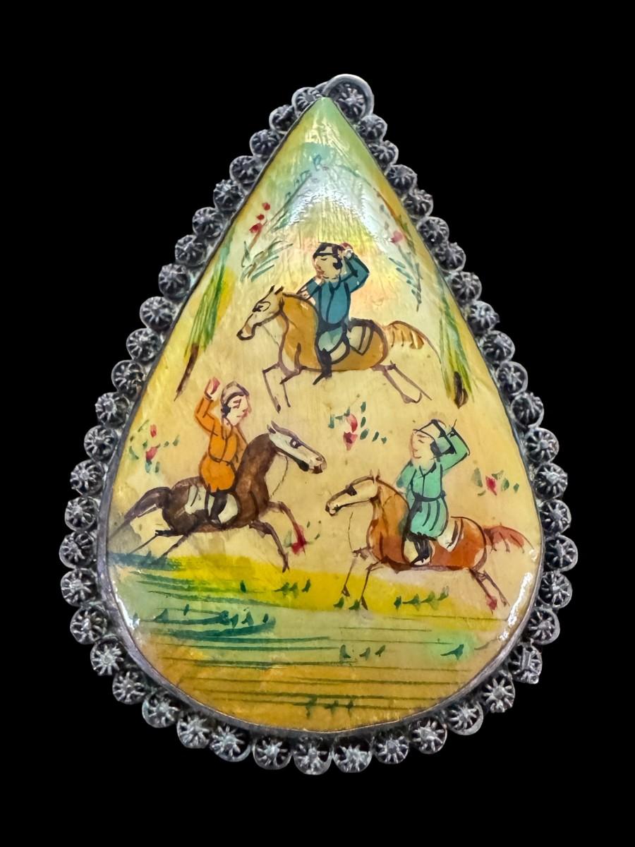 Antique Persian Painted Shell Pendant with Sterling Filigree Border [11.00g]