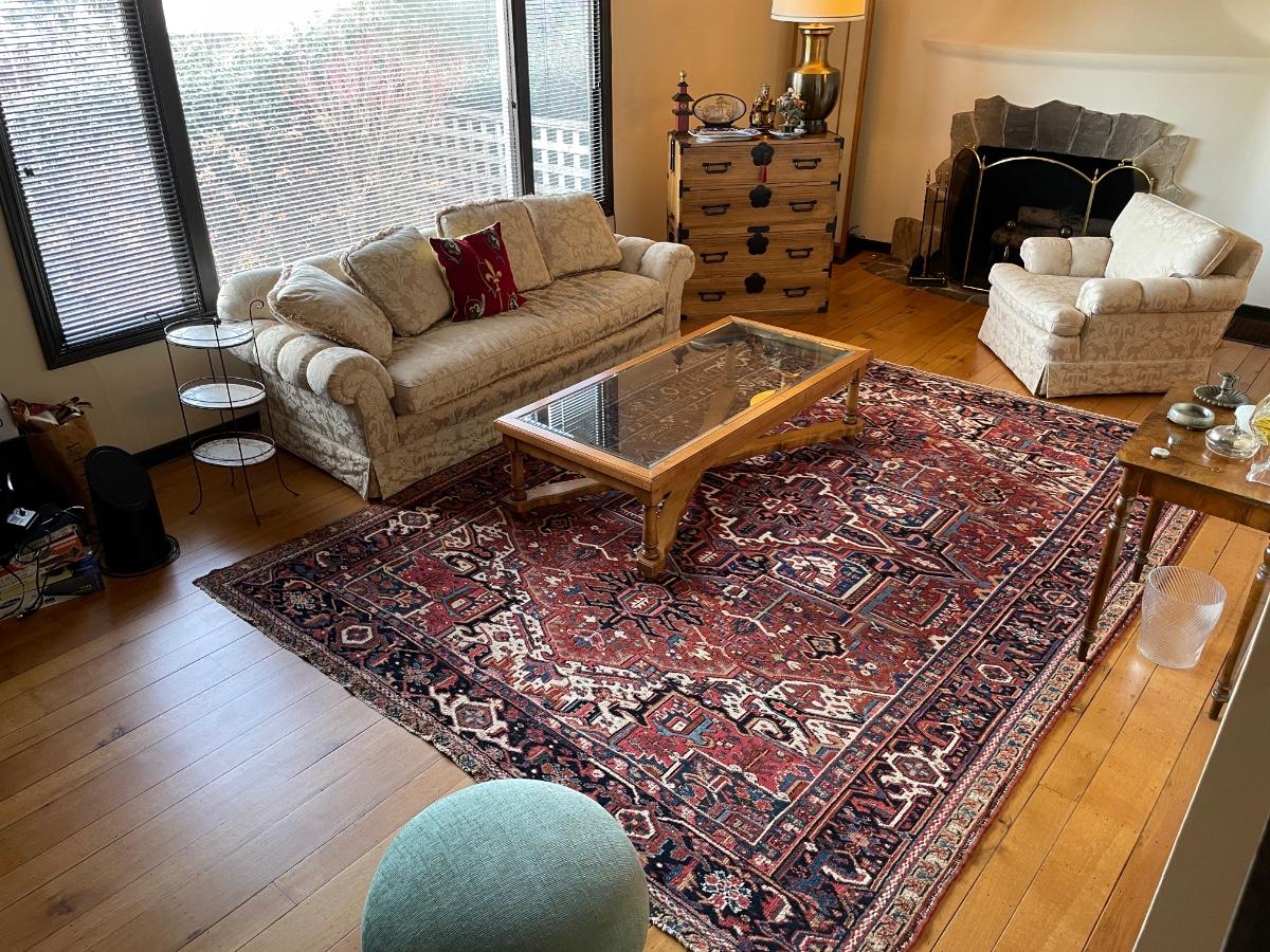 Persian rug made in Iran. In great condition. No holes, stains, or heavy wear/tear. Owner took good care of it.