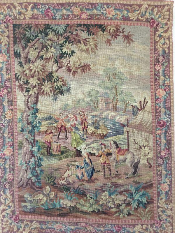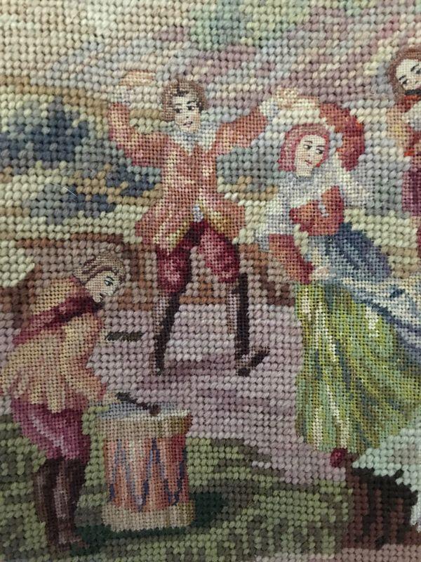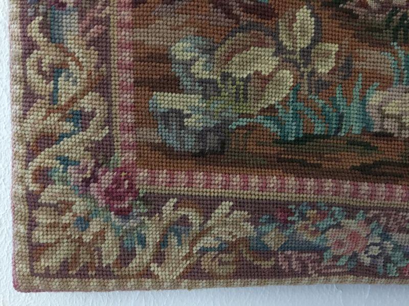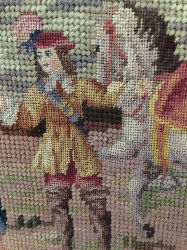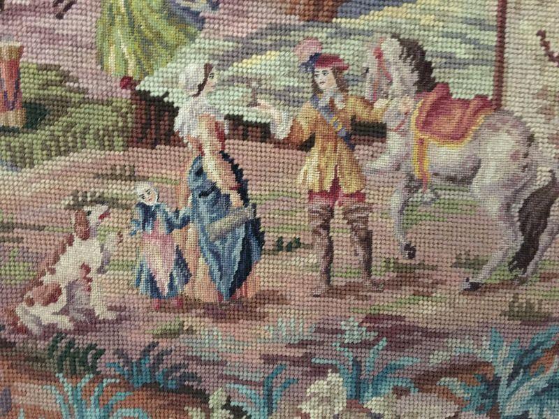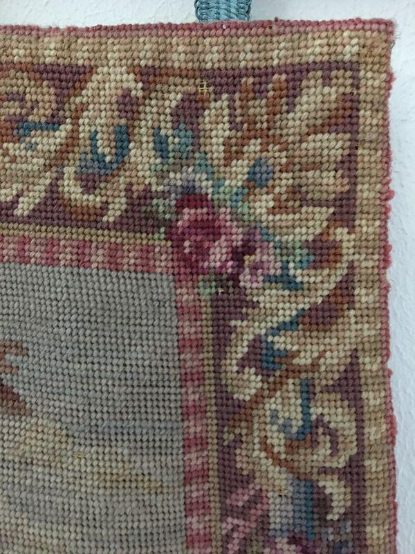 Antique Petit Point Tapestry Hand-Made Includes decorative hanging iron European Scene Lot # 151