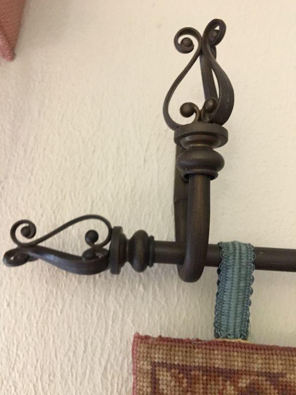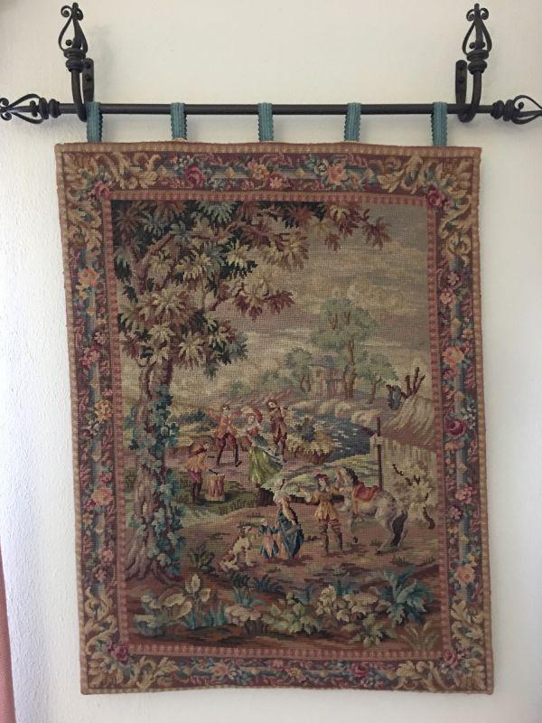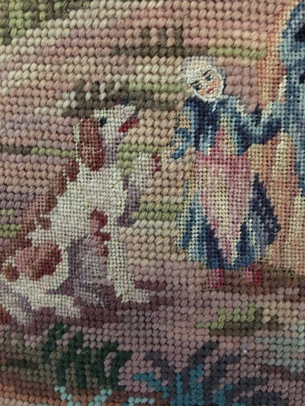 Antique Petit Point Tapestry Hand-Made Includes decorative hanging iron European Scene Lot #151