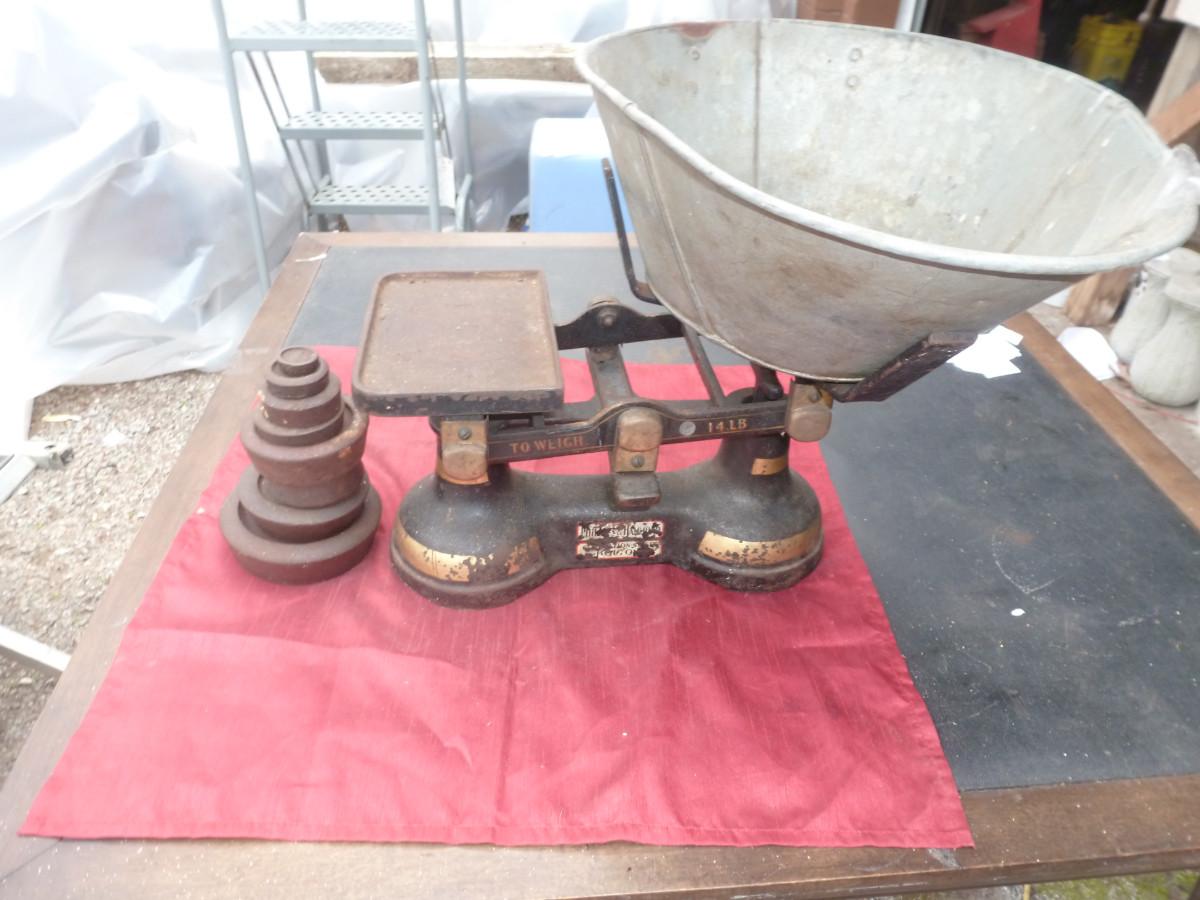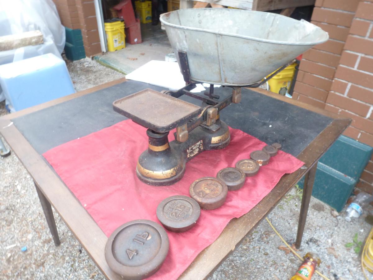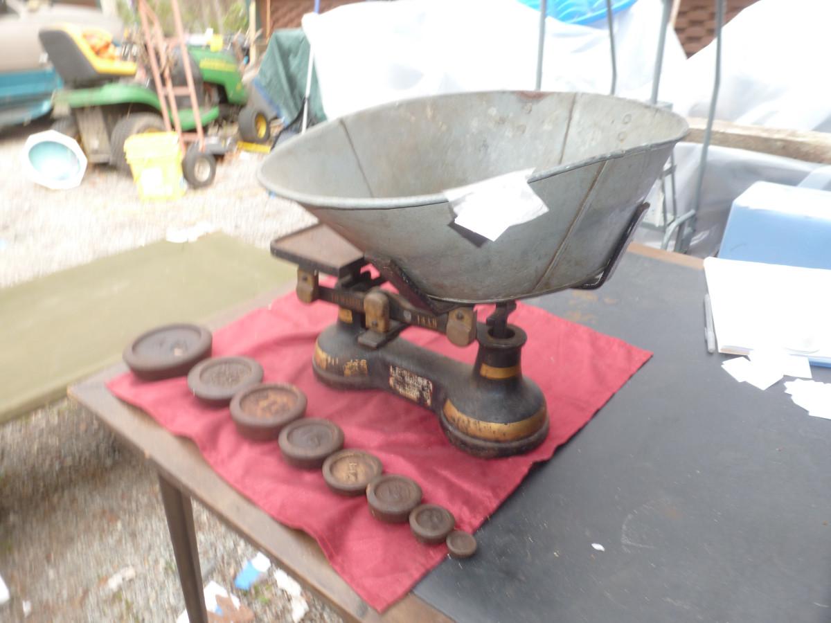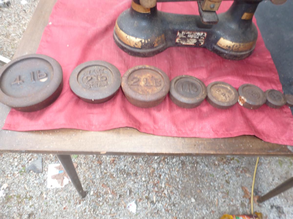 Antique Phillips & Hammond Scale with Weights- 14 Lb Capacity