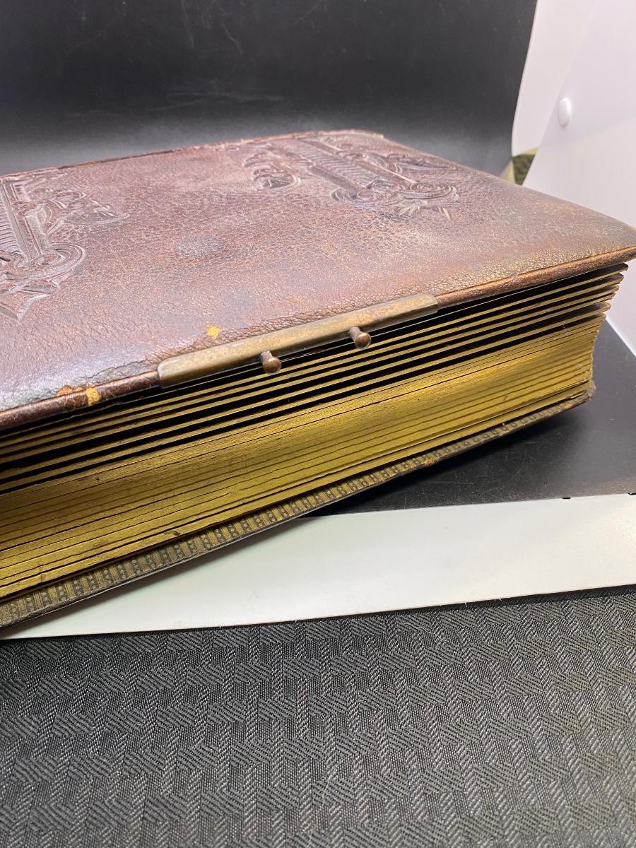 Antique Photo Album Filled with Victorian Era Family, Children, Fashionable Women, Gentlemen Portrait Photo Cards, there is some tearing to some album pages, but there is no significant damage overall and is in good condition for its age. Check pictures for more details and for sizing.