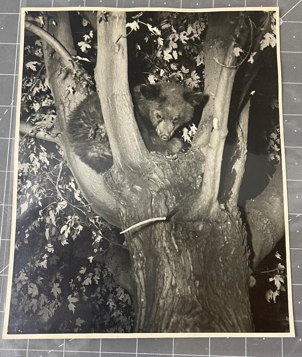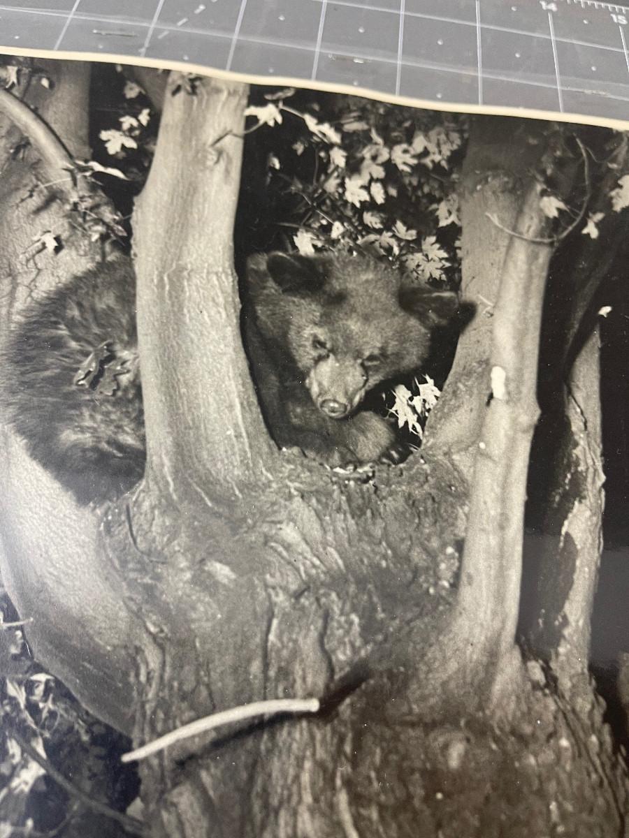 Antique photo Bear cub in a Tree