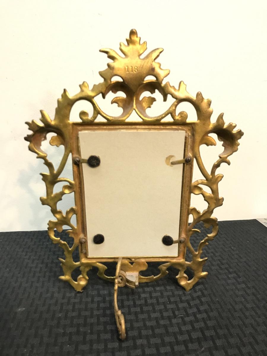 Antique filigree Regency style metal frame. Good condition. Holds a 5x7 photo.