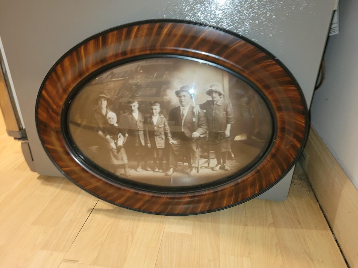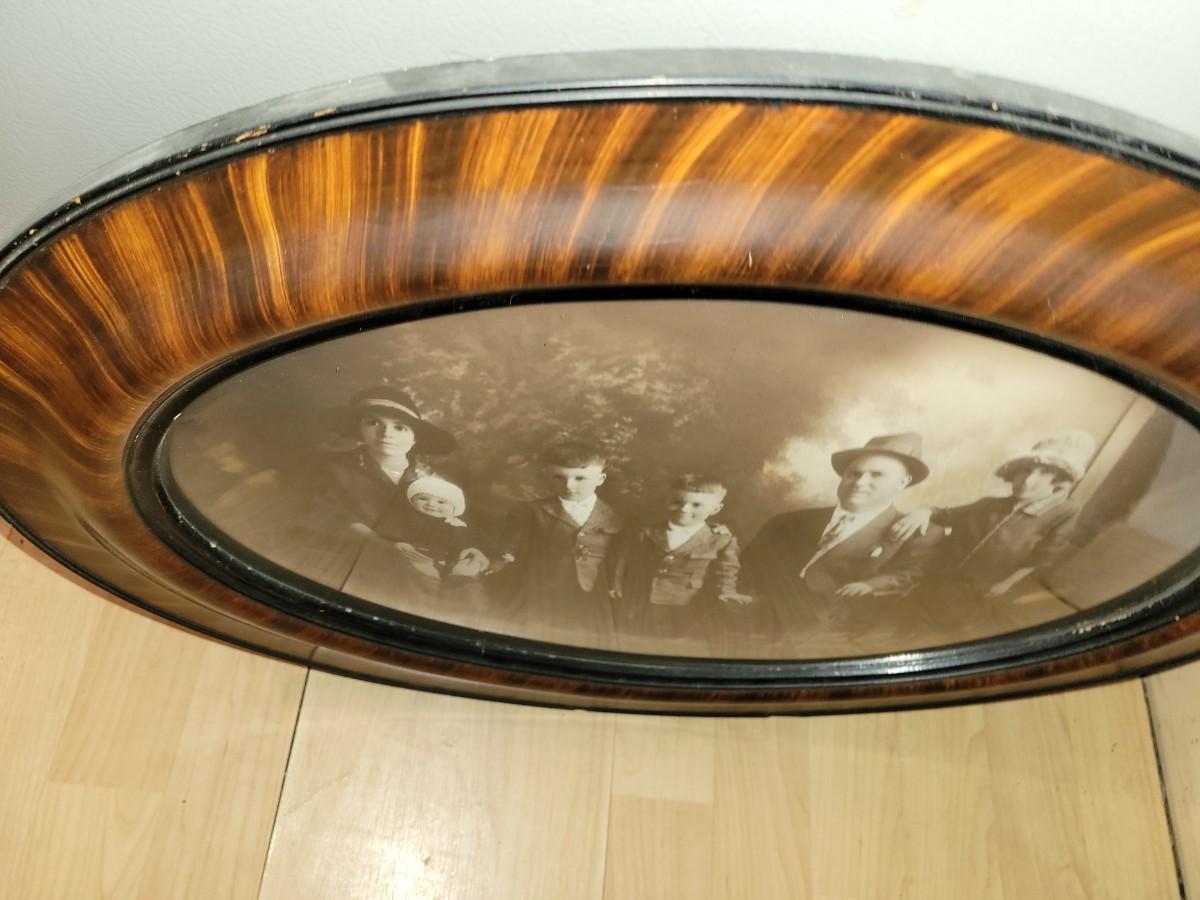 Antique photo with oval glass and wood frame real deal.