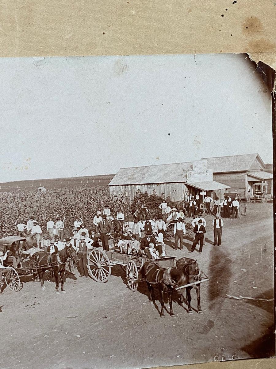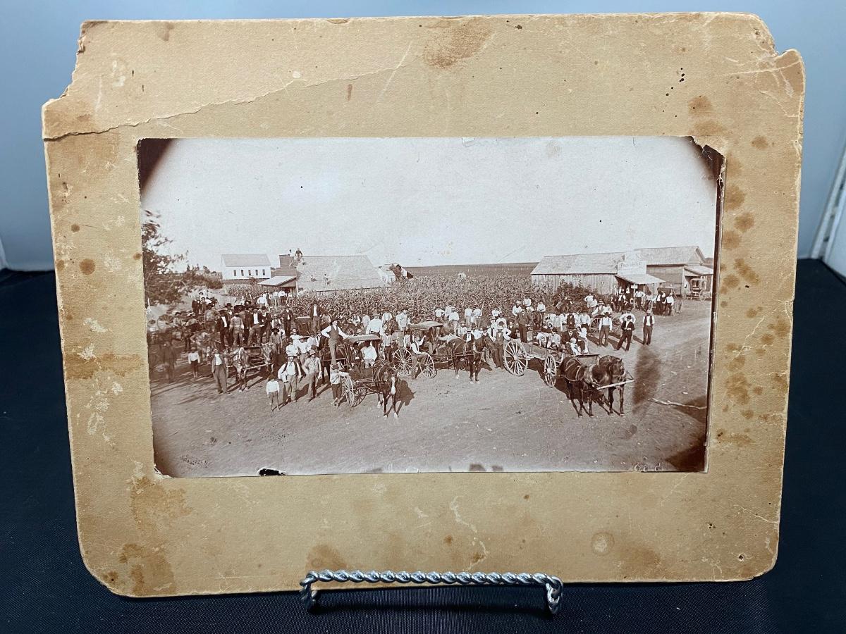 Antique photo of a small farm town. No identifying name. Signs of age and wear. Late 1800s more than likely.