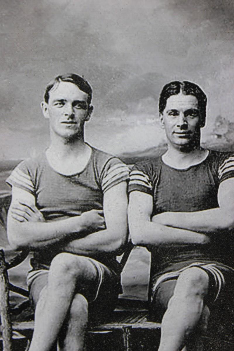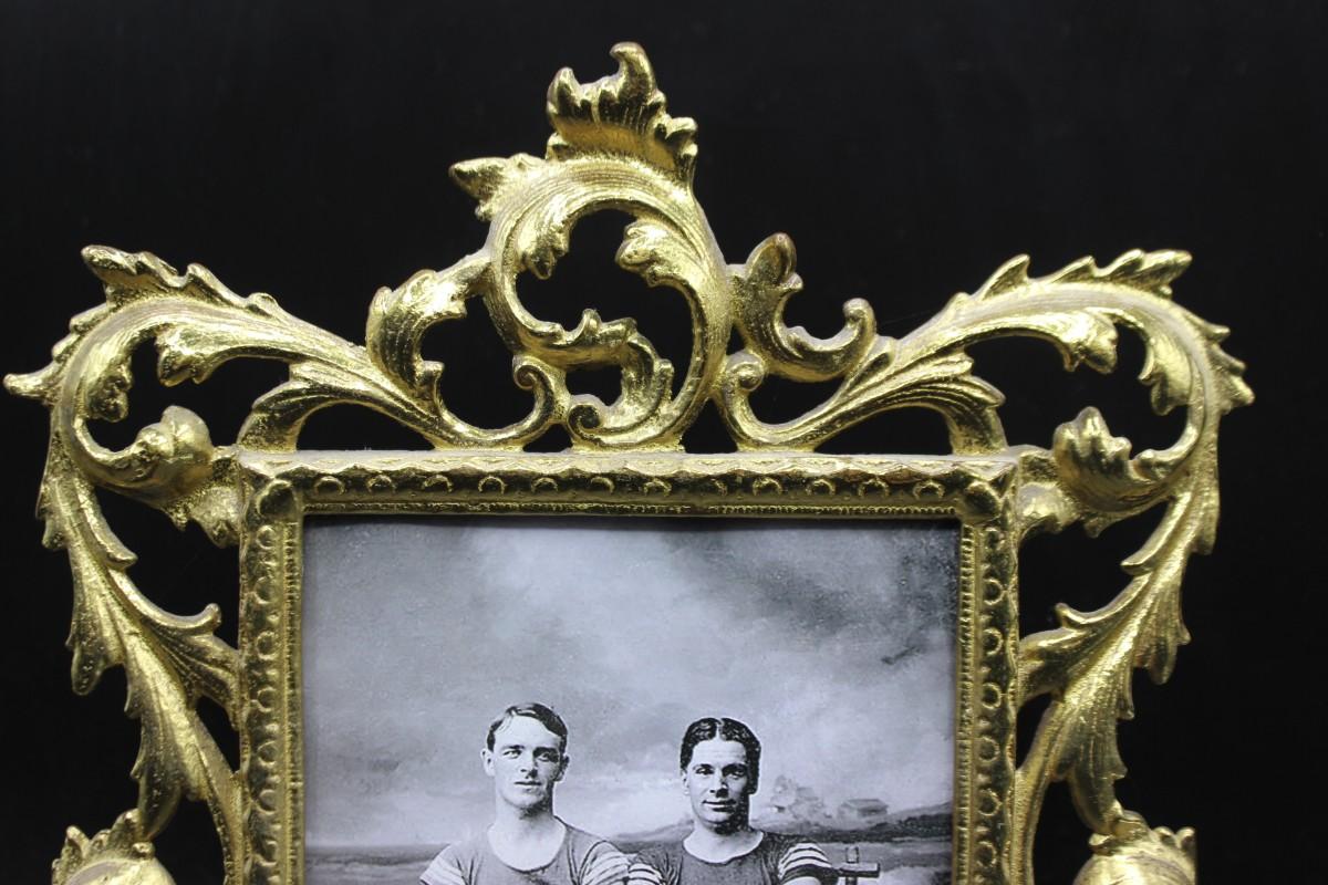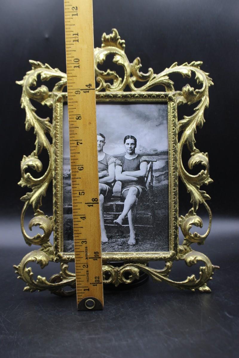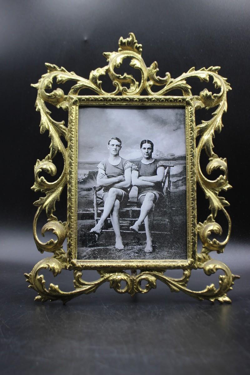 Vintage Bronze Metal Art Nouveau Style Gold Frame with a Photo of Two Gentlemen in Swimming Suits