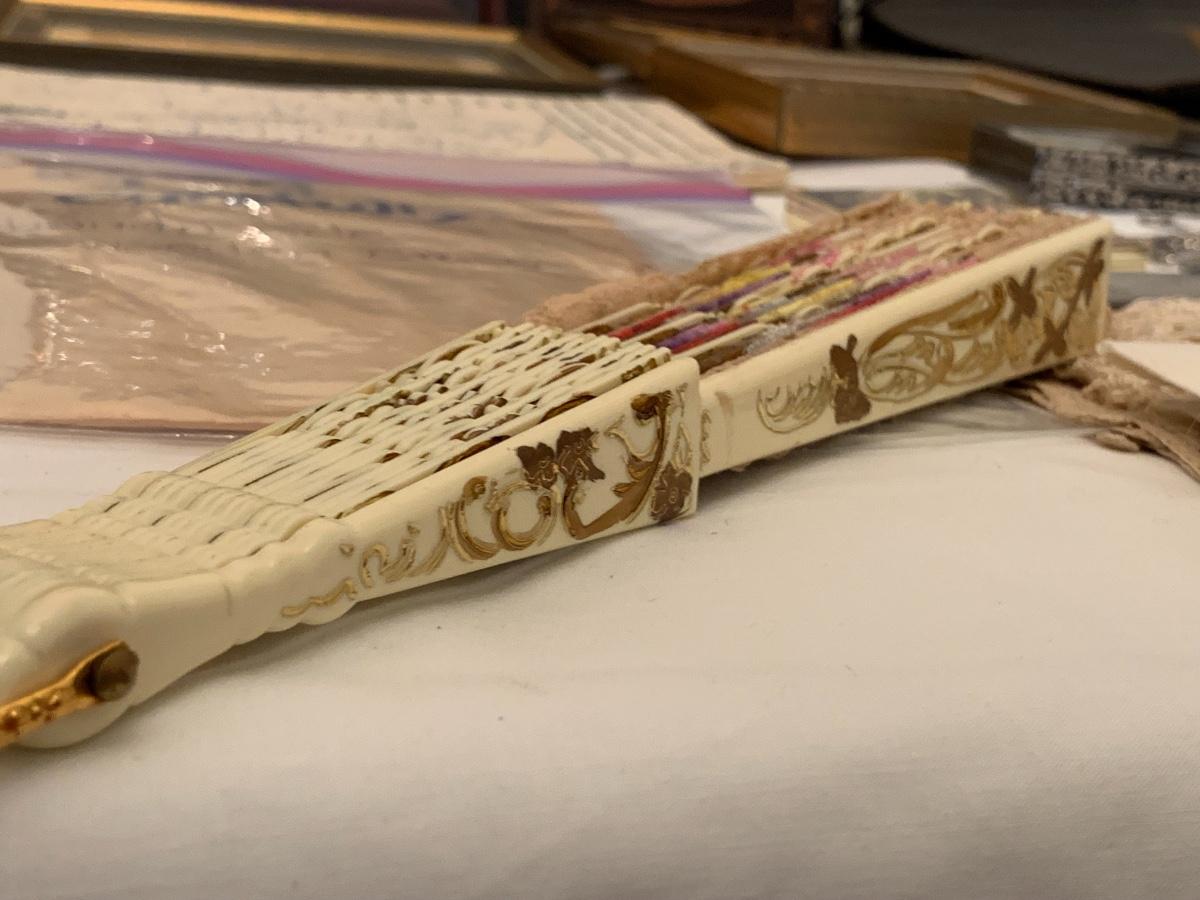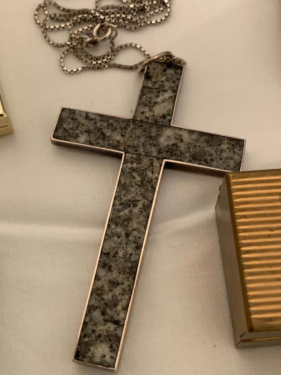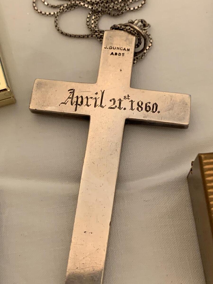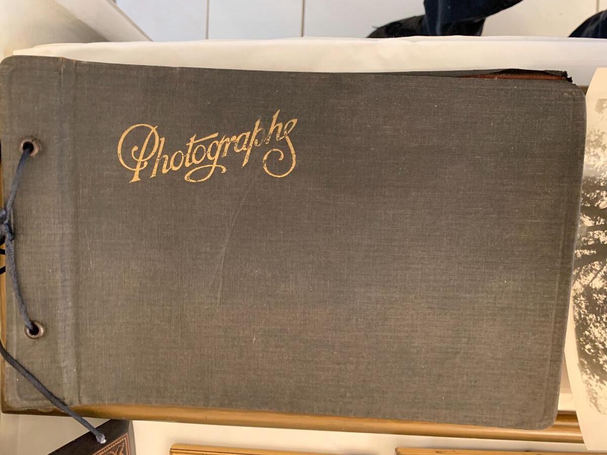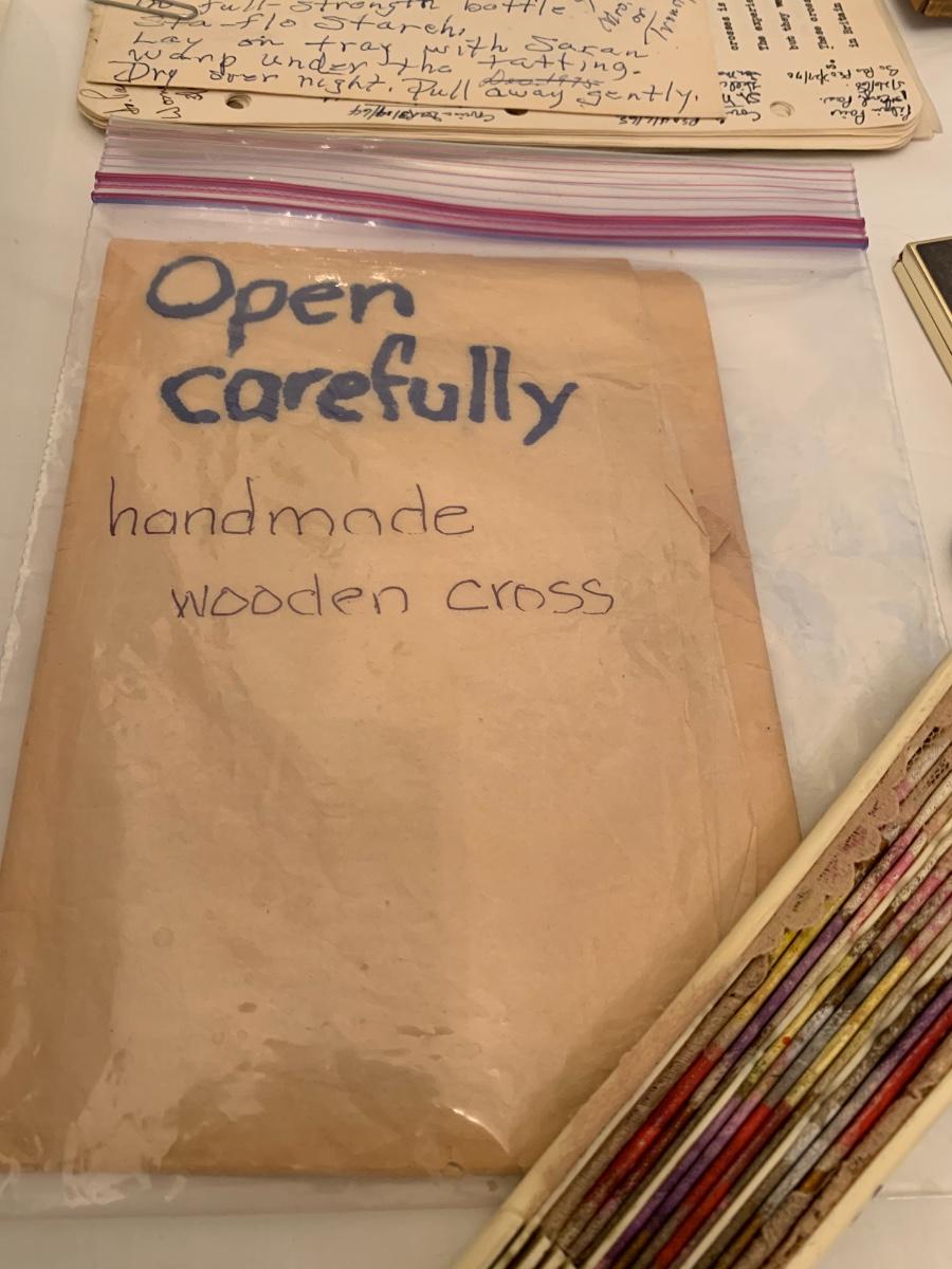 Antique photos, linens, and jewelry. Miniature pocket bible, Cross made in 1860, and more.