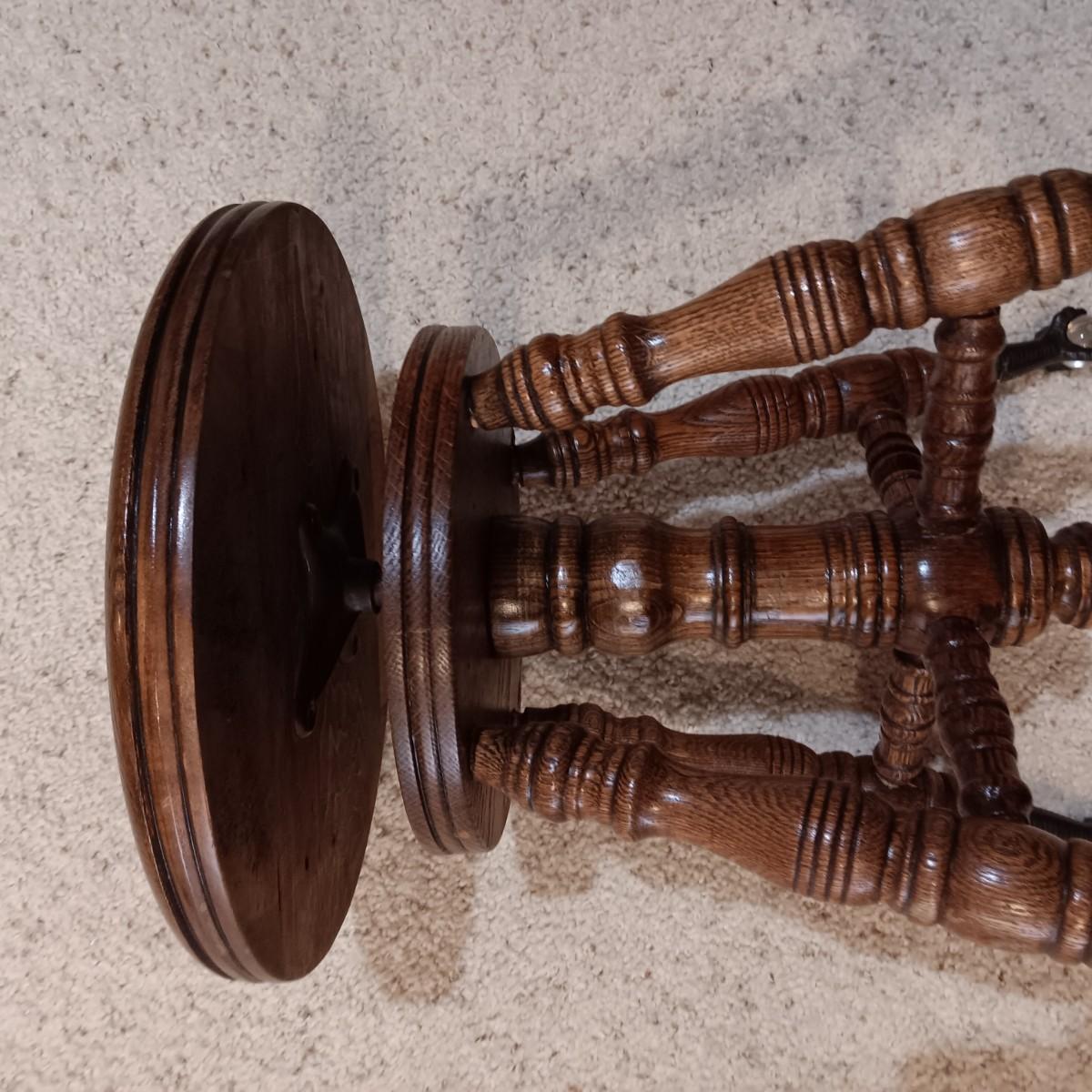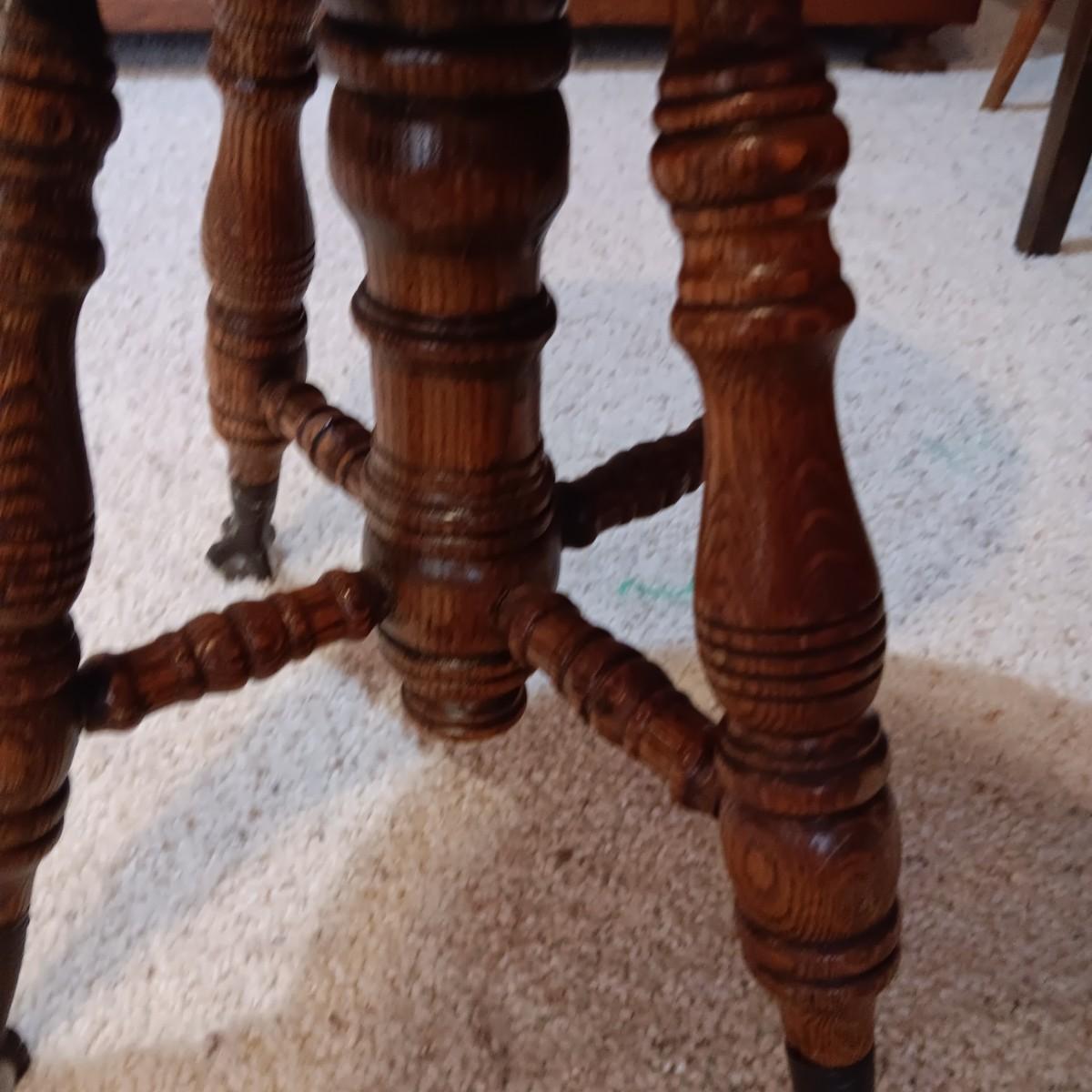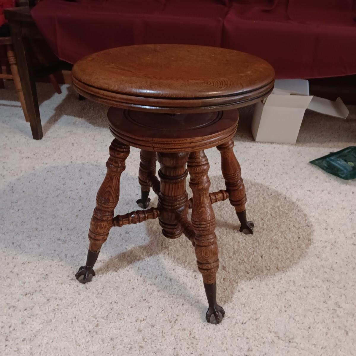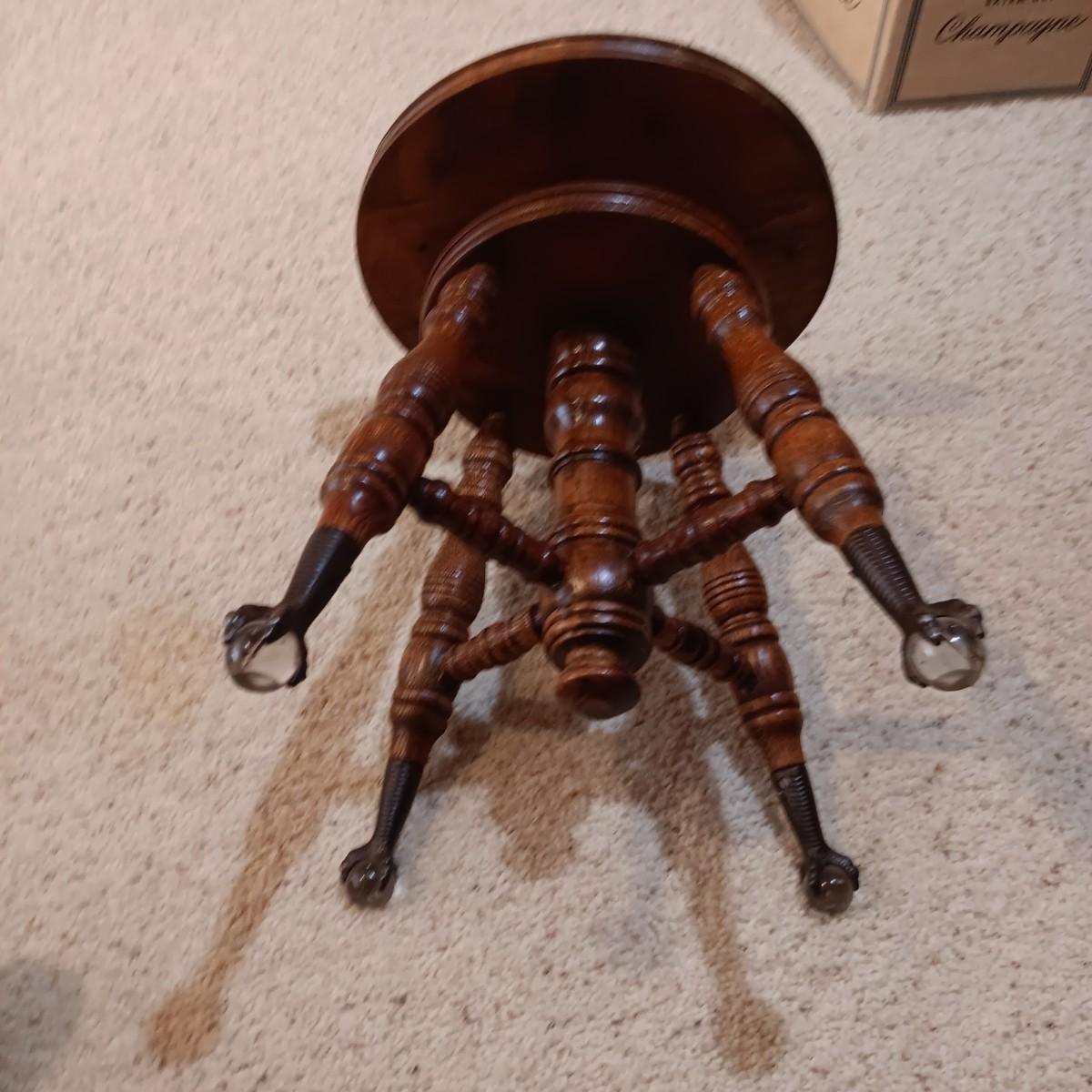 ANTIQUE PIANO STOOL WITH GLASS BALL CLAW FEET