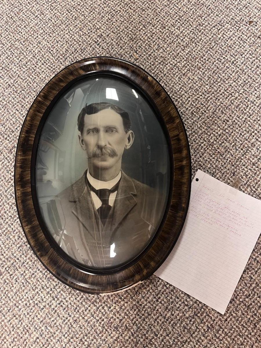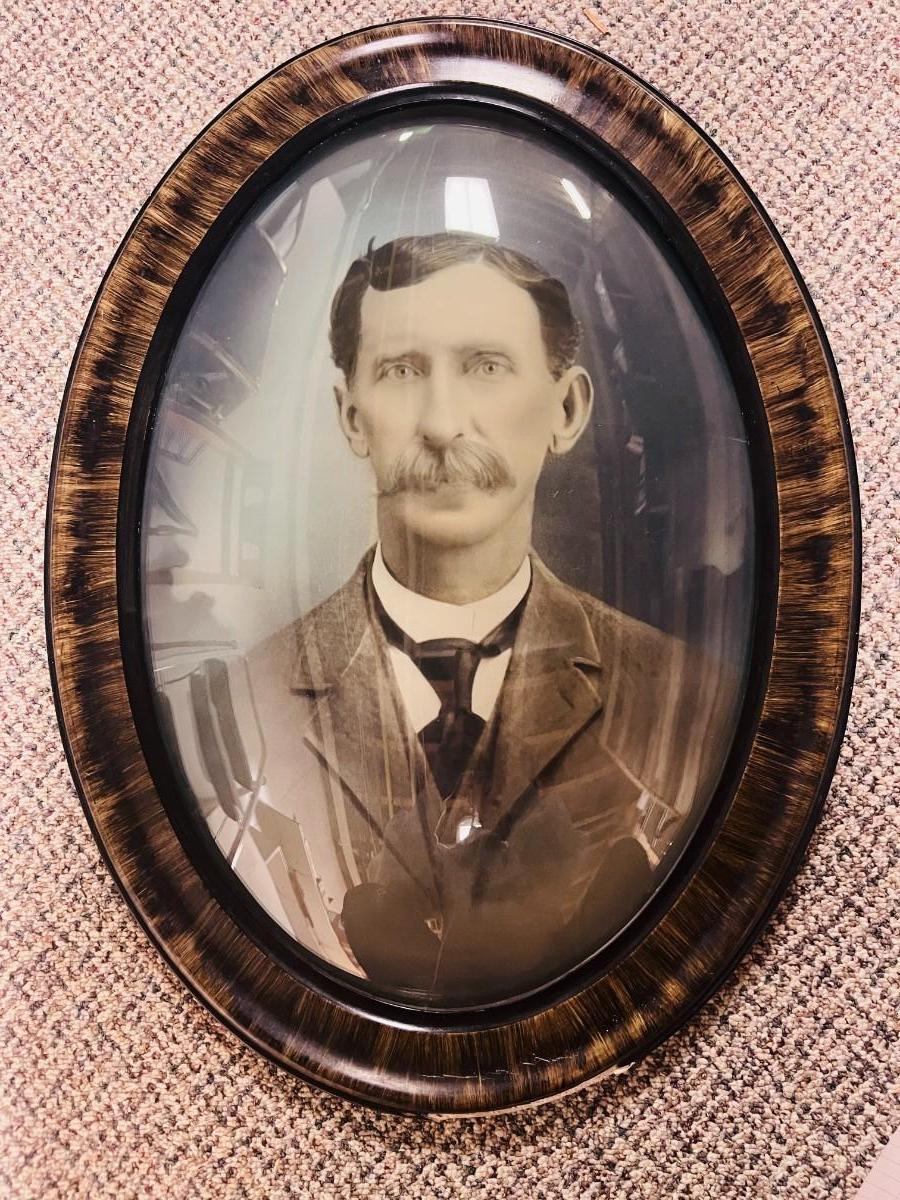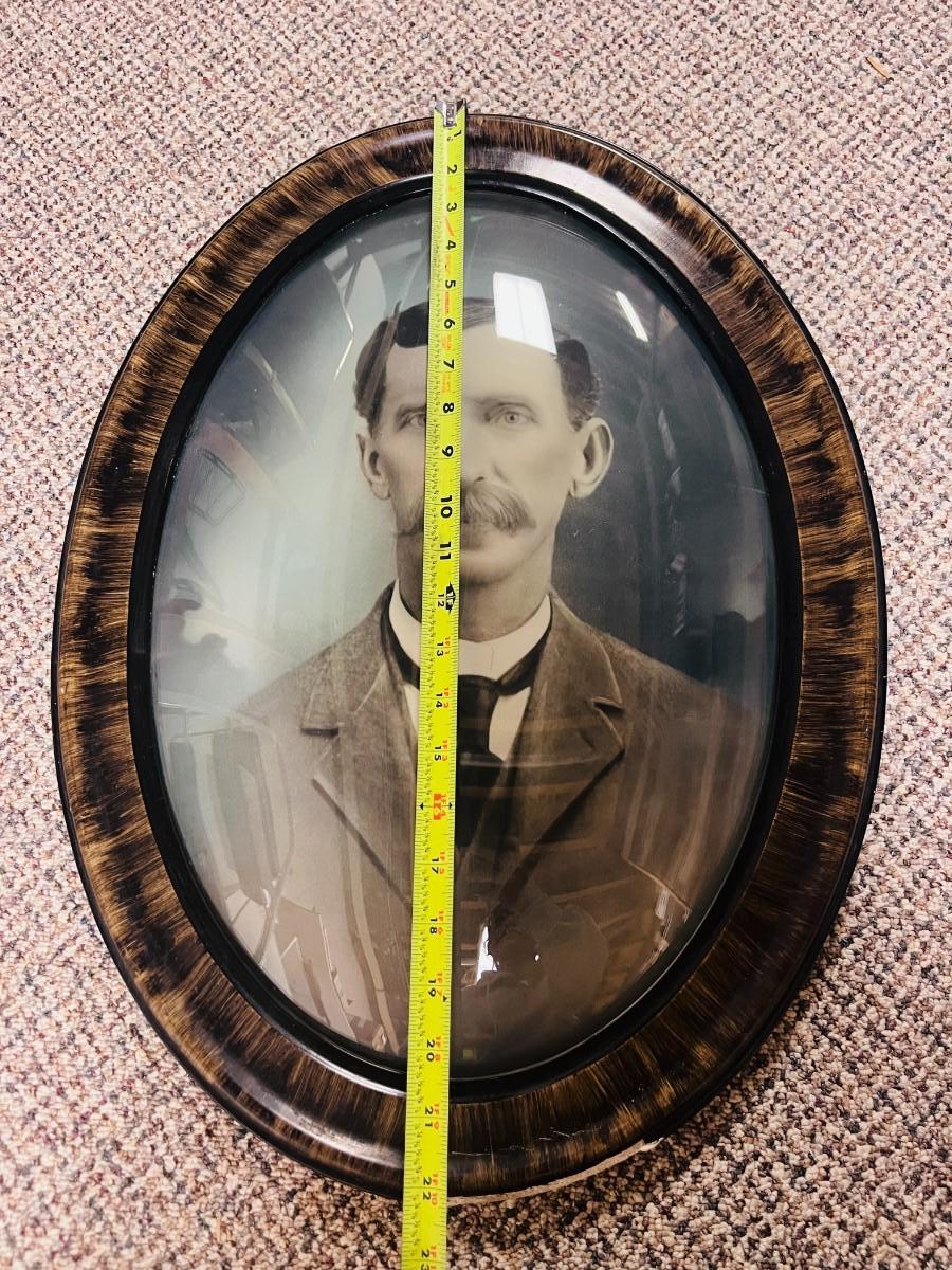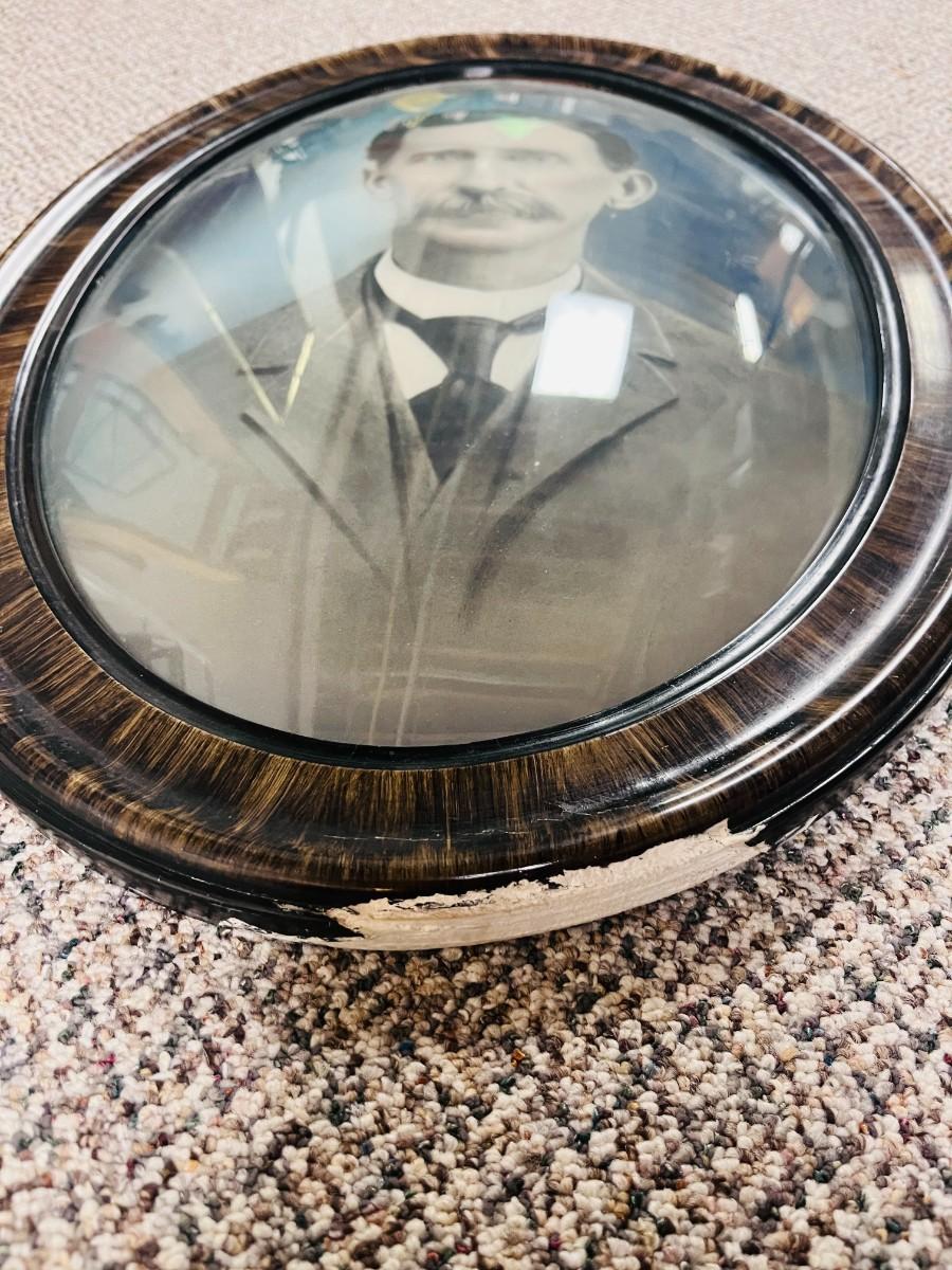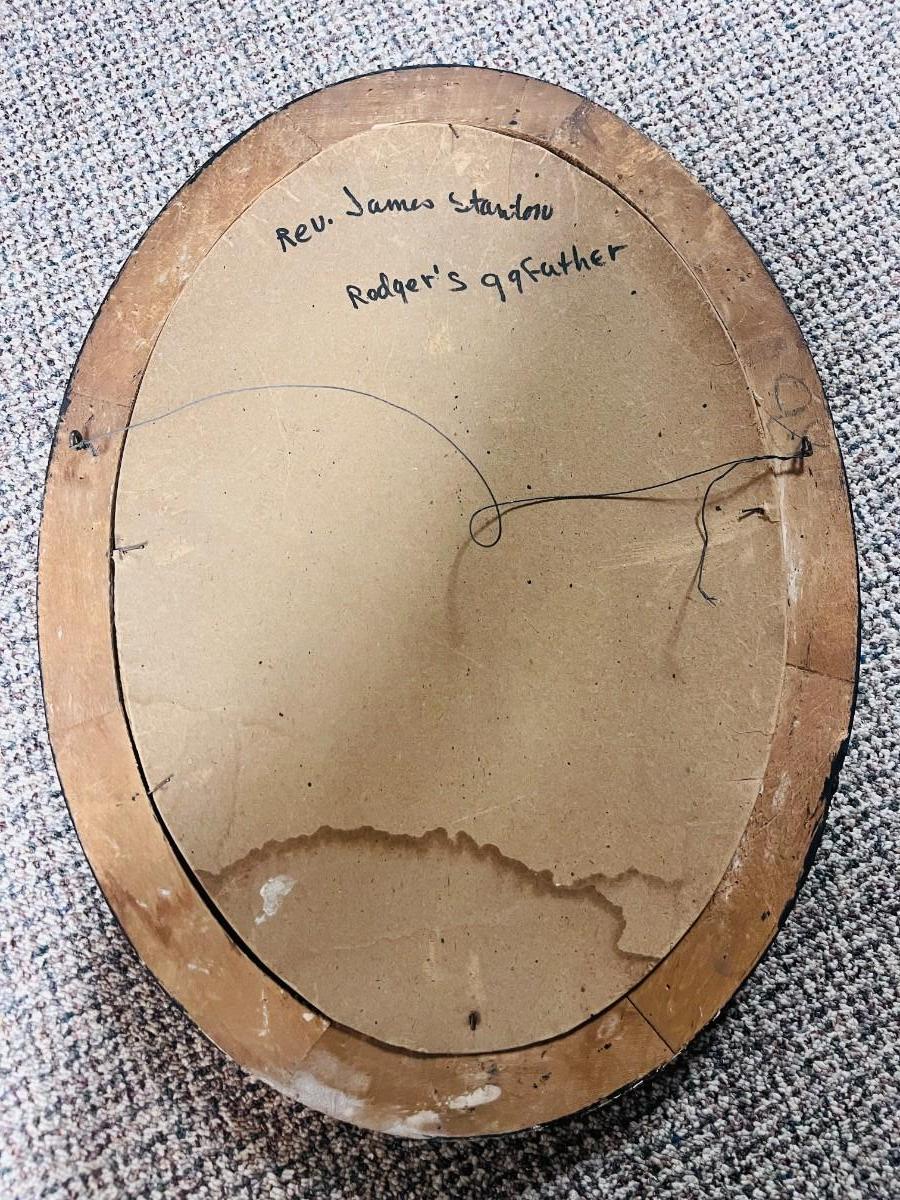 ANTIQUE PICTURE OF REVEREND JAMES STANTON IN AN ANTIQUE CURVED GLASS FRAME