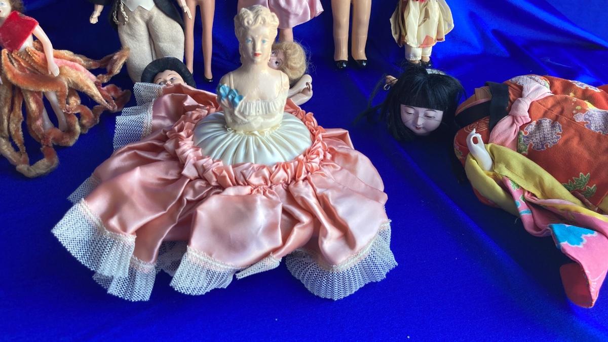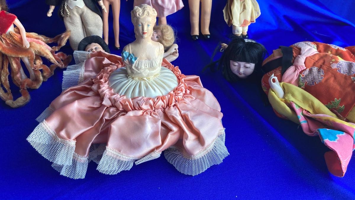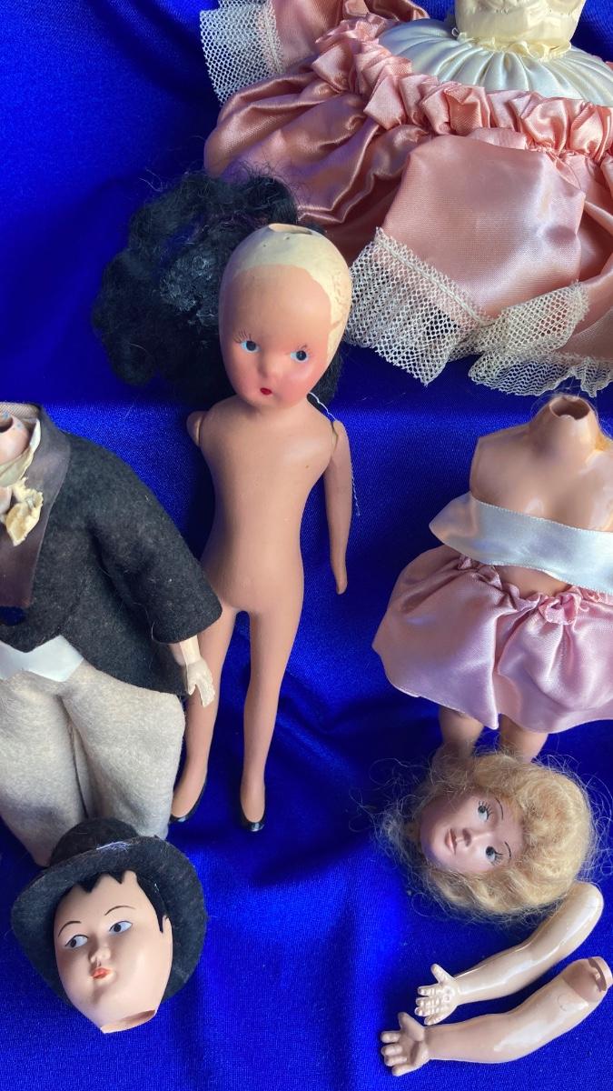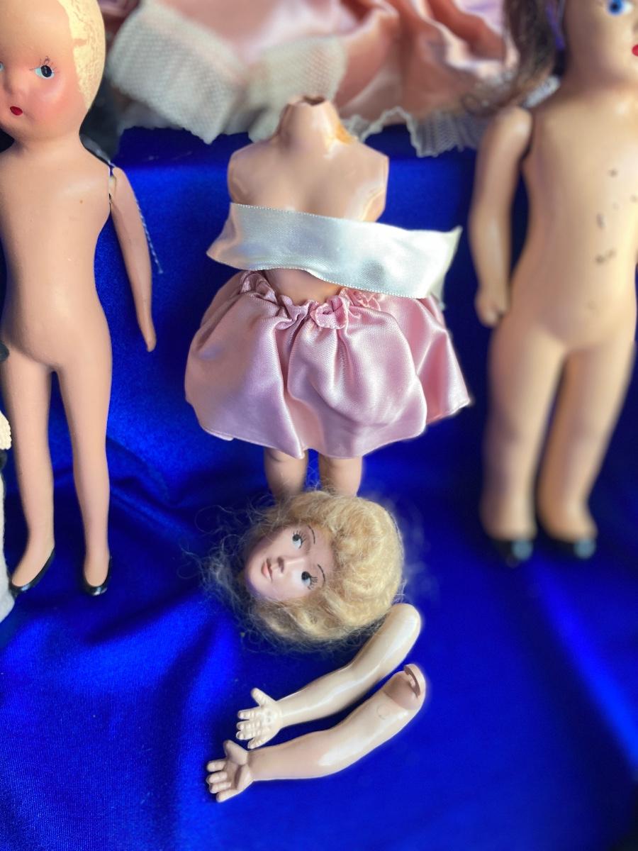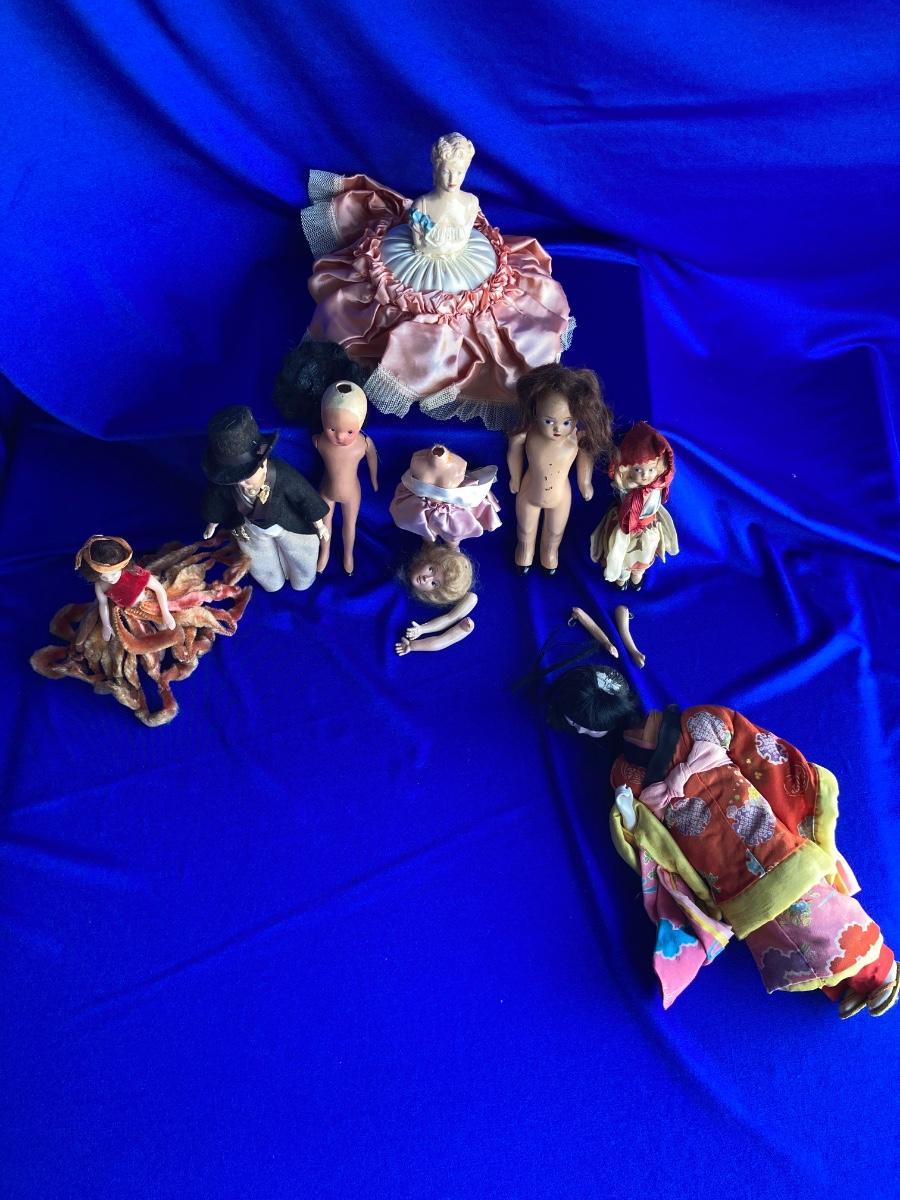 ANTIQUE PIN CUSION AND SOME OLE HEADLESS DOLL’S IN NEED OF NEW RUBBER BANDS