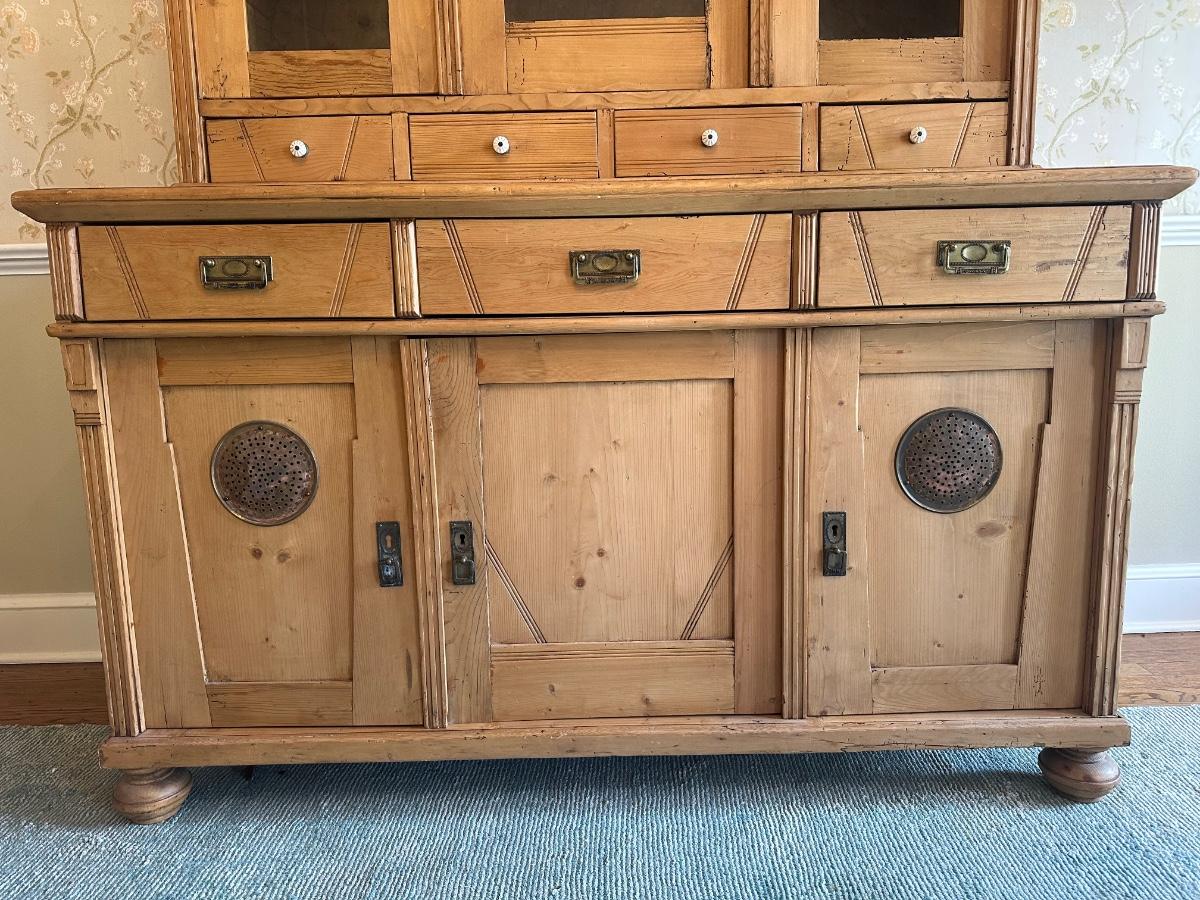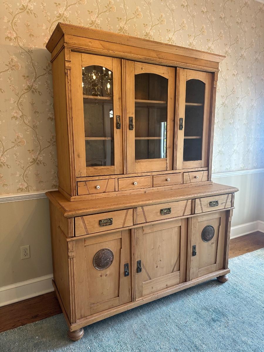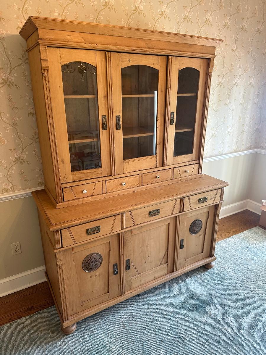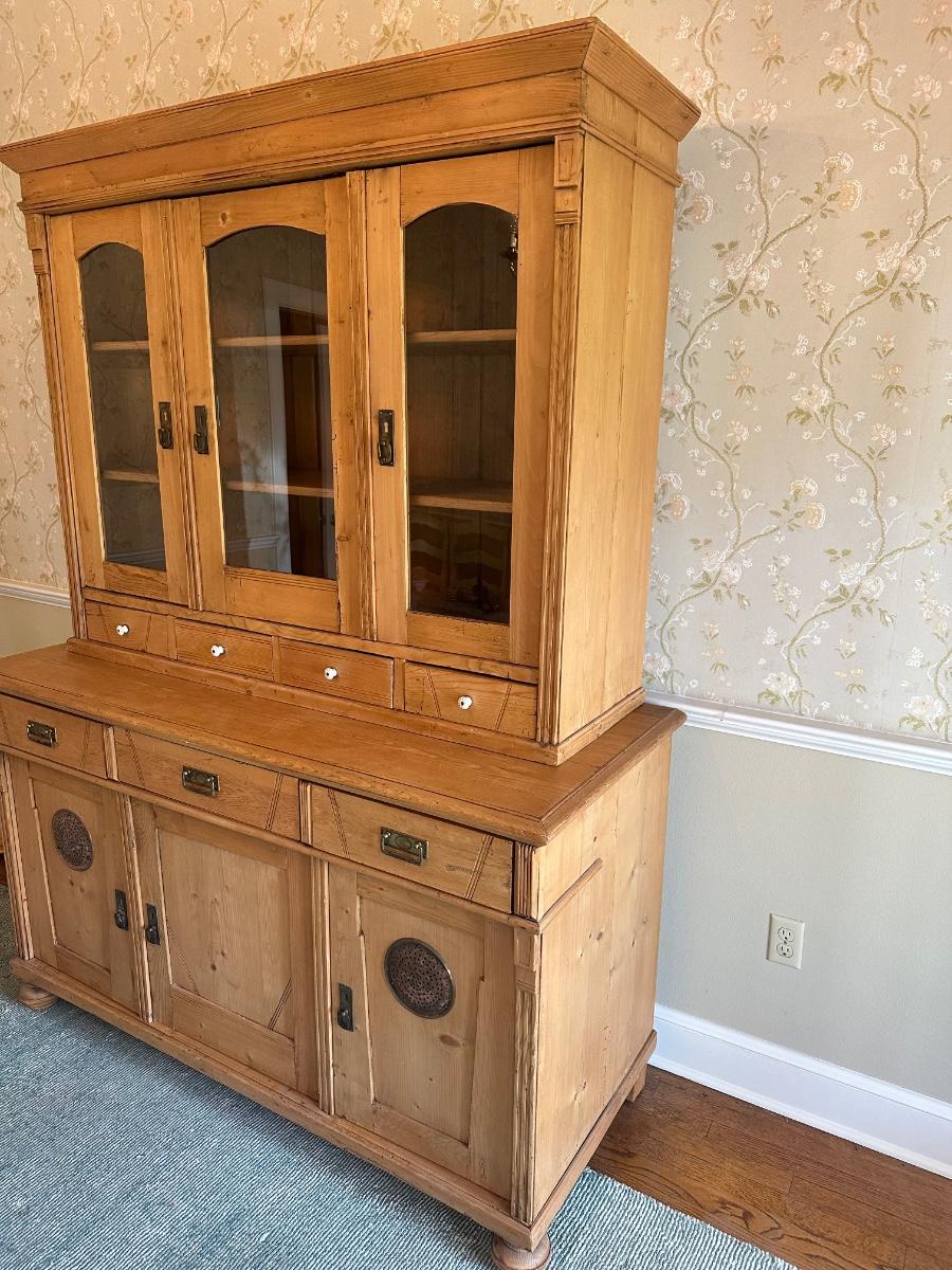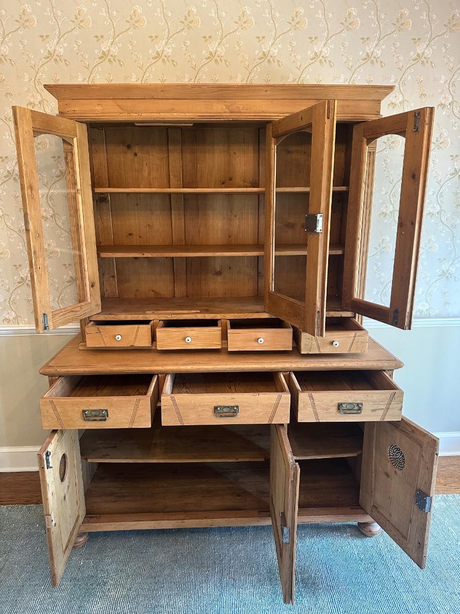 Homeowner said it is a Russian cabinet. The top slides off for easier transportation. Beautiful piece!