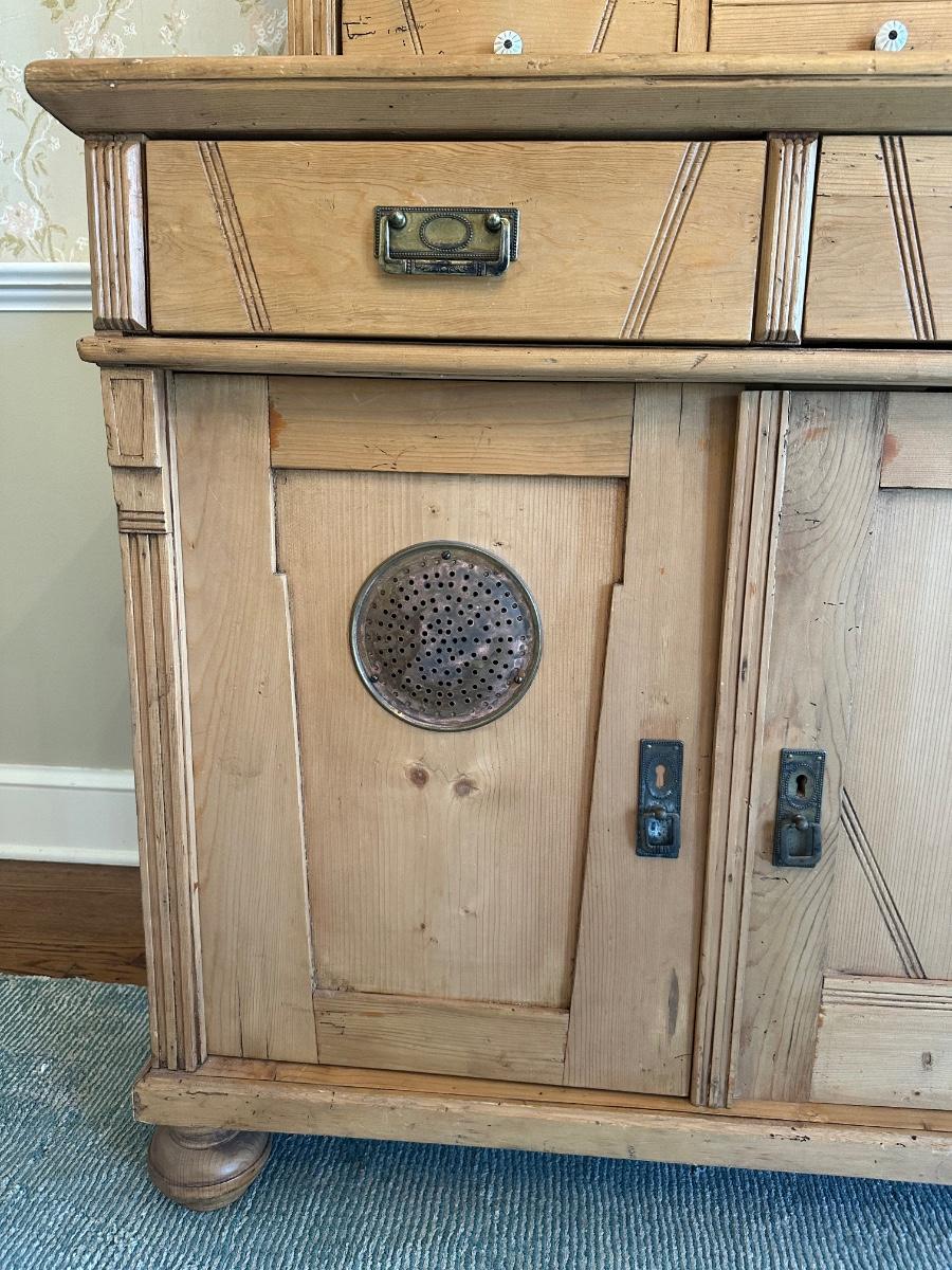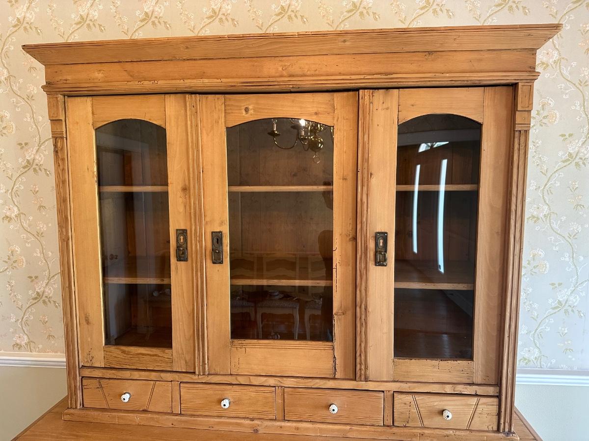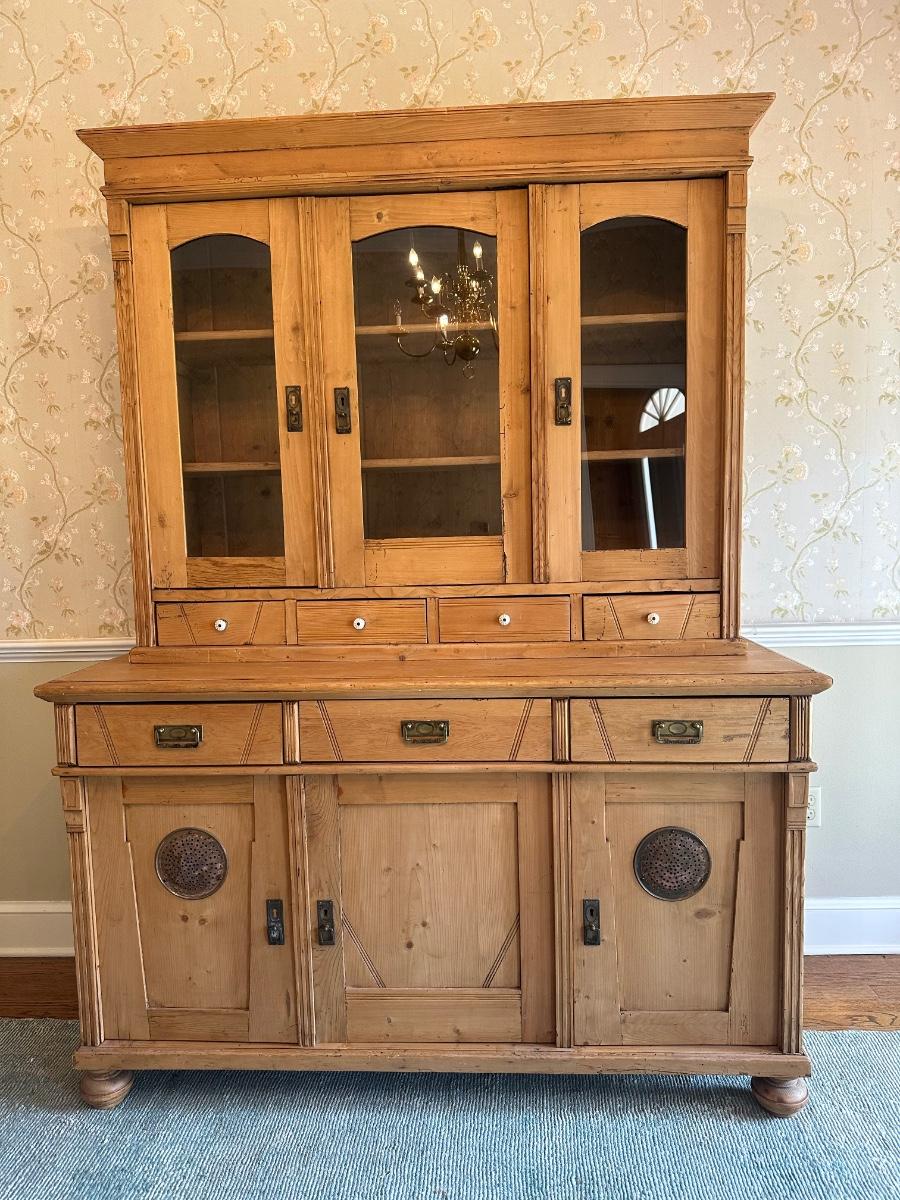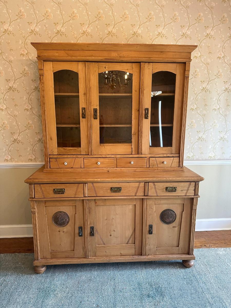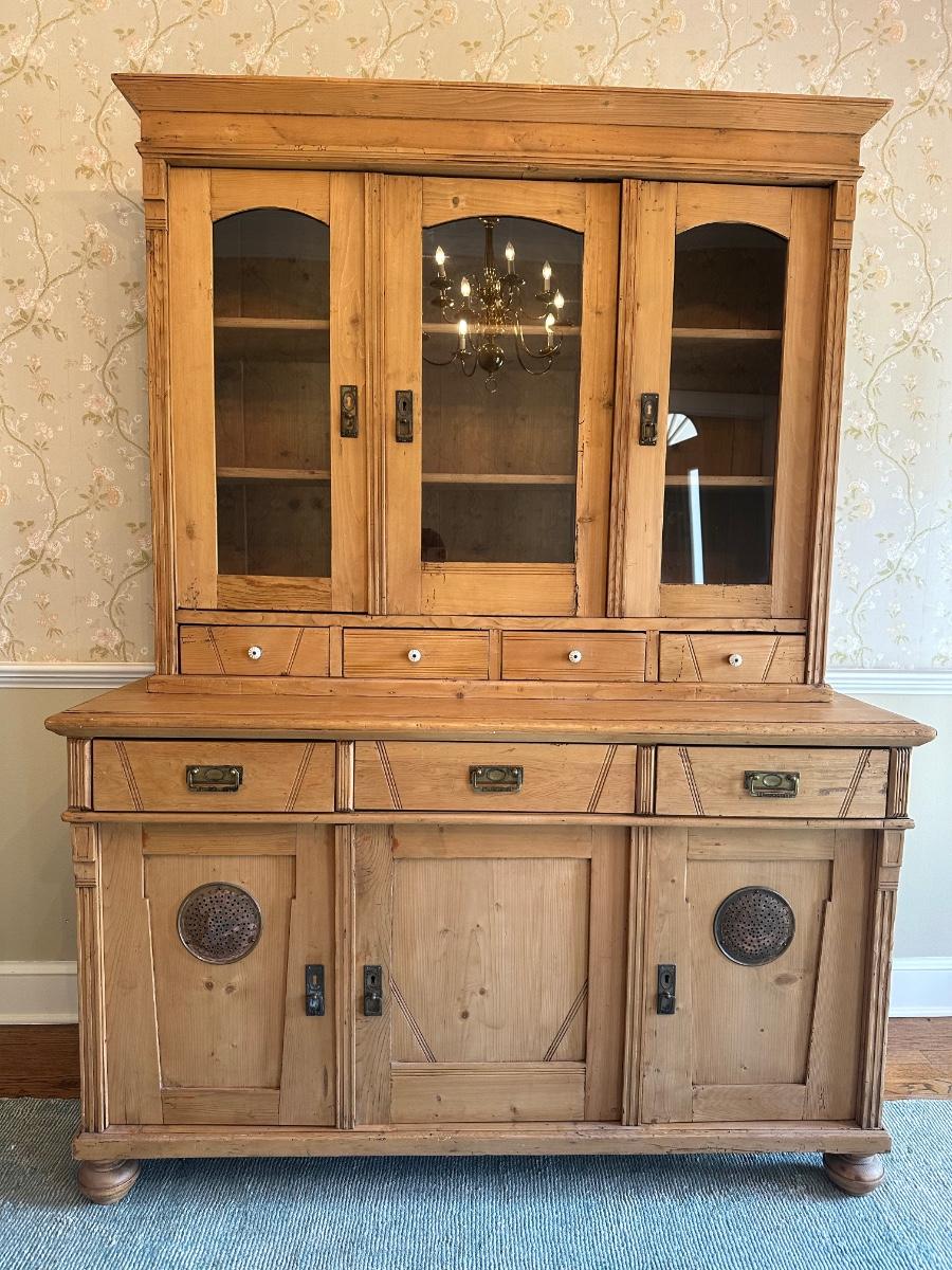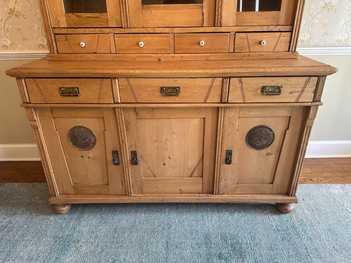 Homeowner said it is a Russian cabinet. The top slides off for easier transportation. Beautiful piece!
