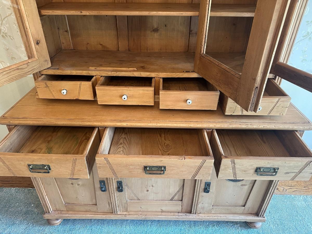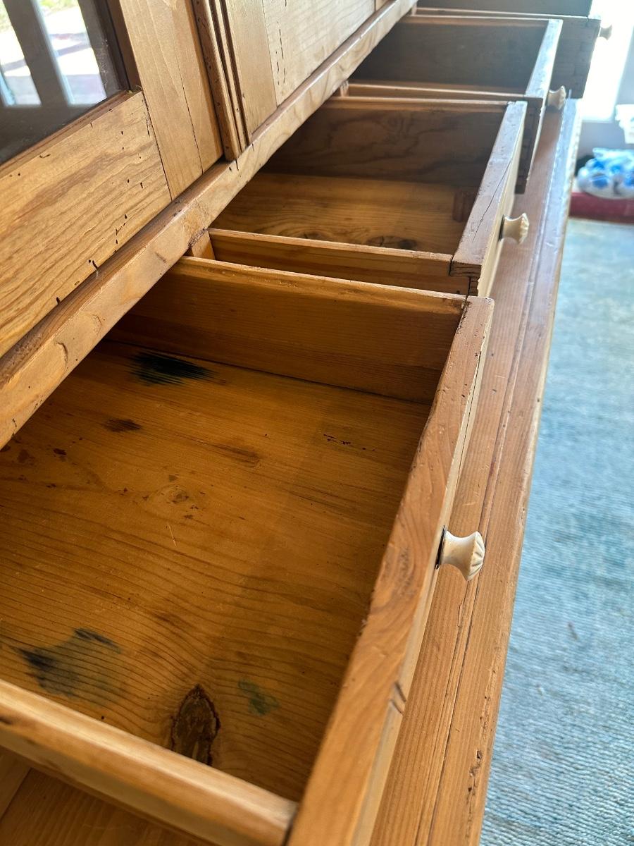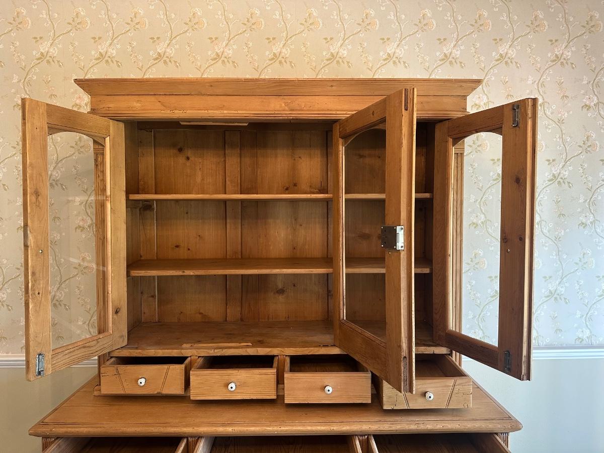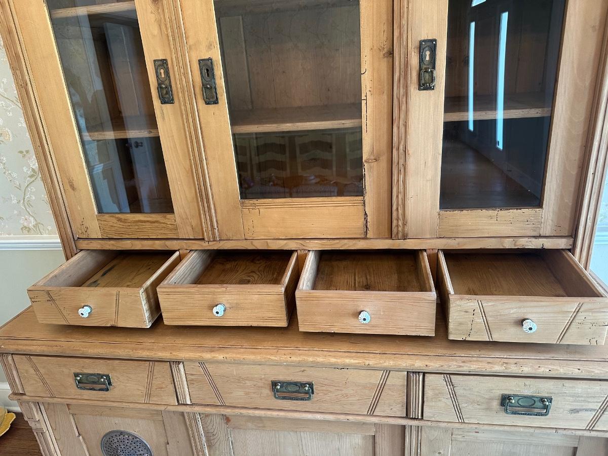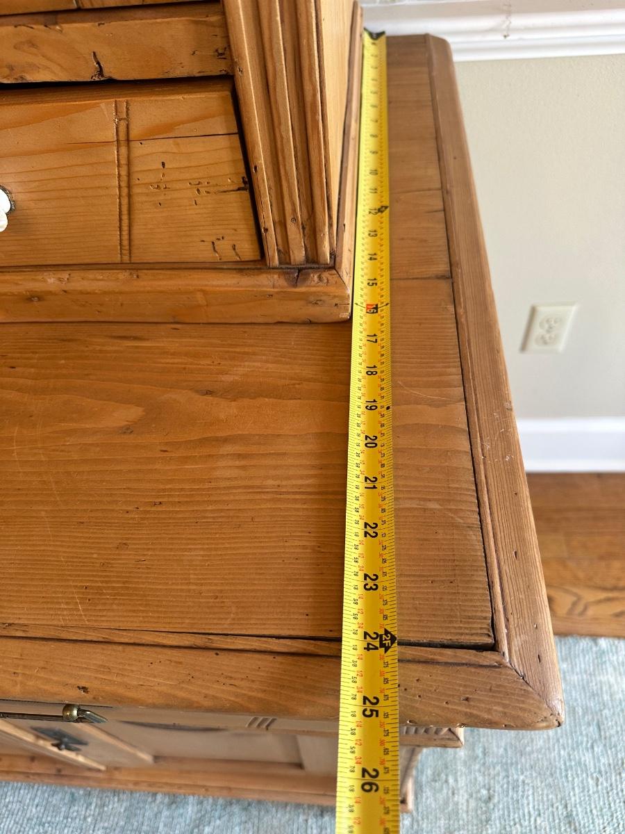 Homeowner said it is a Russian cabinet. The top slides off for easier transportation. Beautiful piece!