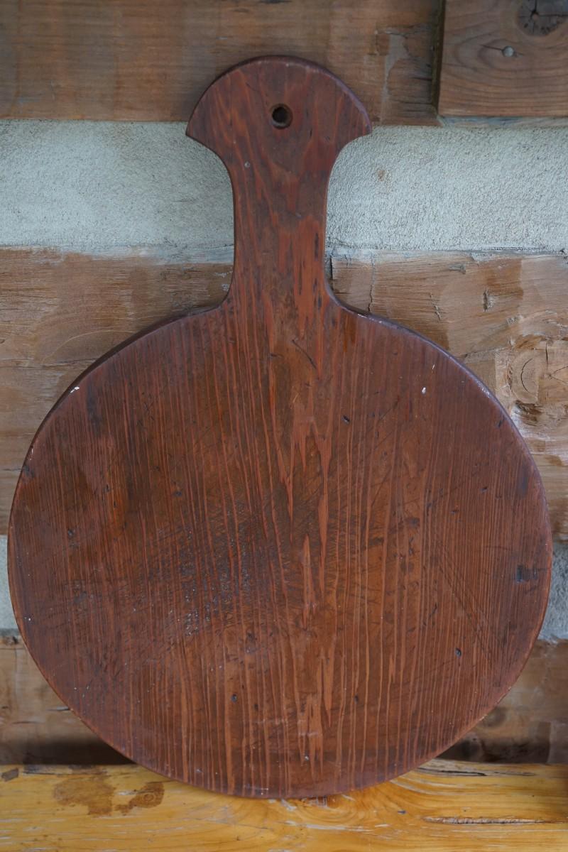 ANTIQUE PINE LG ROUND BREAD BOARD / CANDLE BOX SCALLOPED DESIGN W/ DRAWER