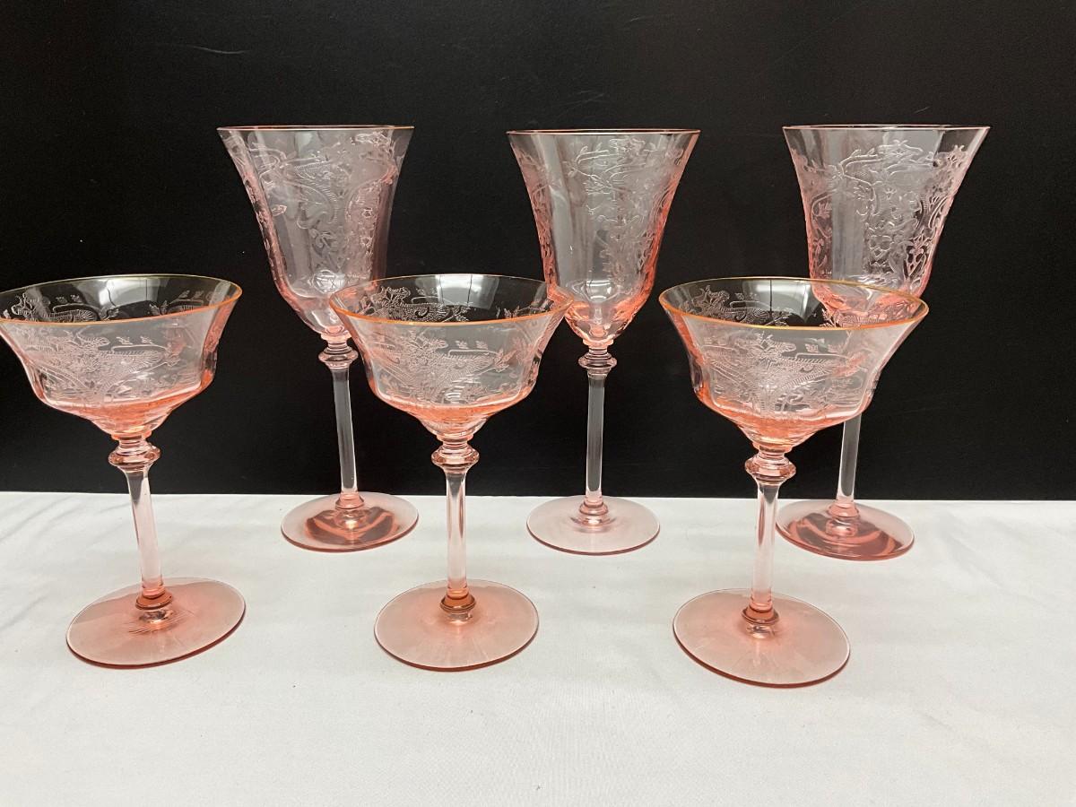 Antique Pink Depression Wine Glasses 1888