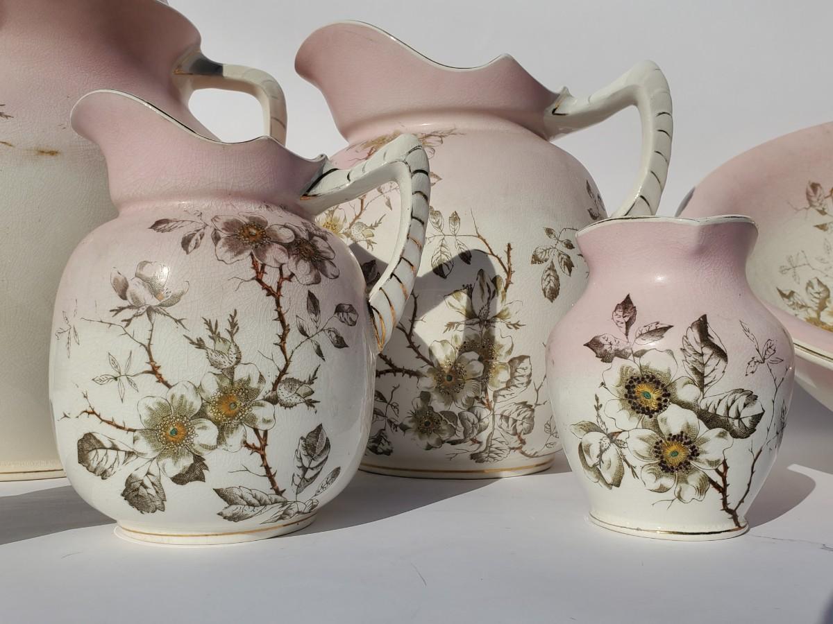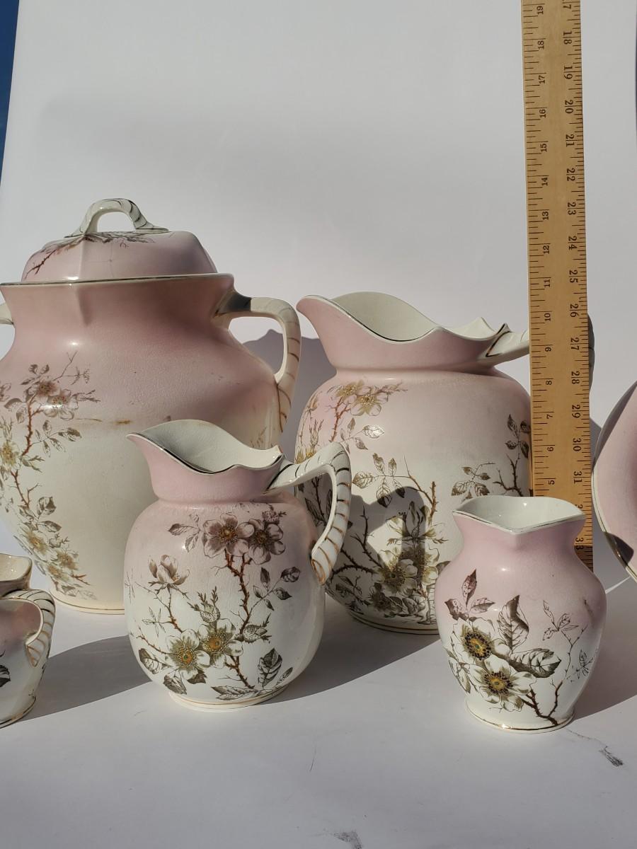 Antique Pink Dogwoods 7-pc Chamber Pot & Vanity Accessories