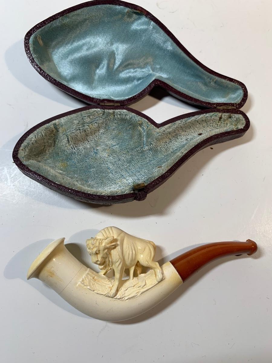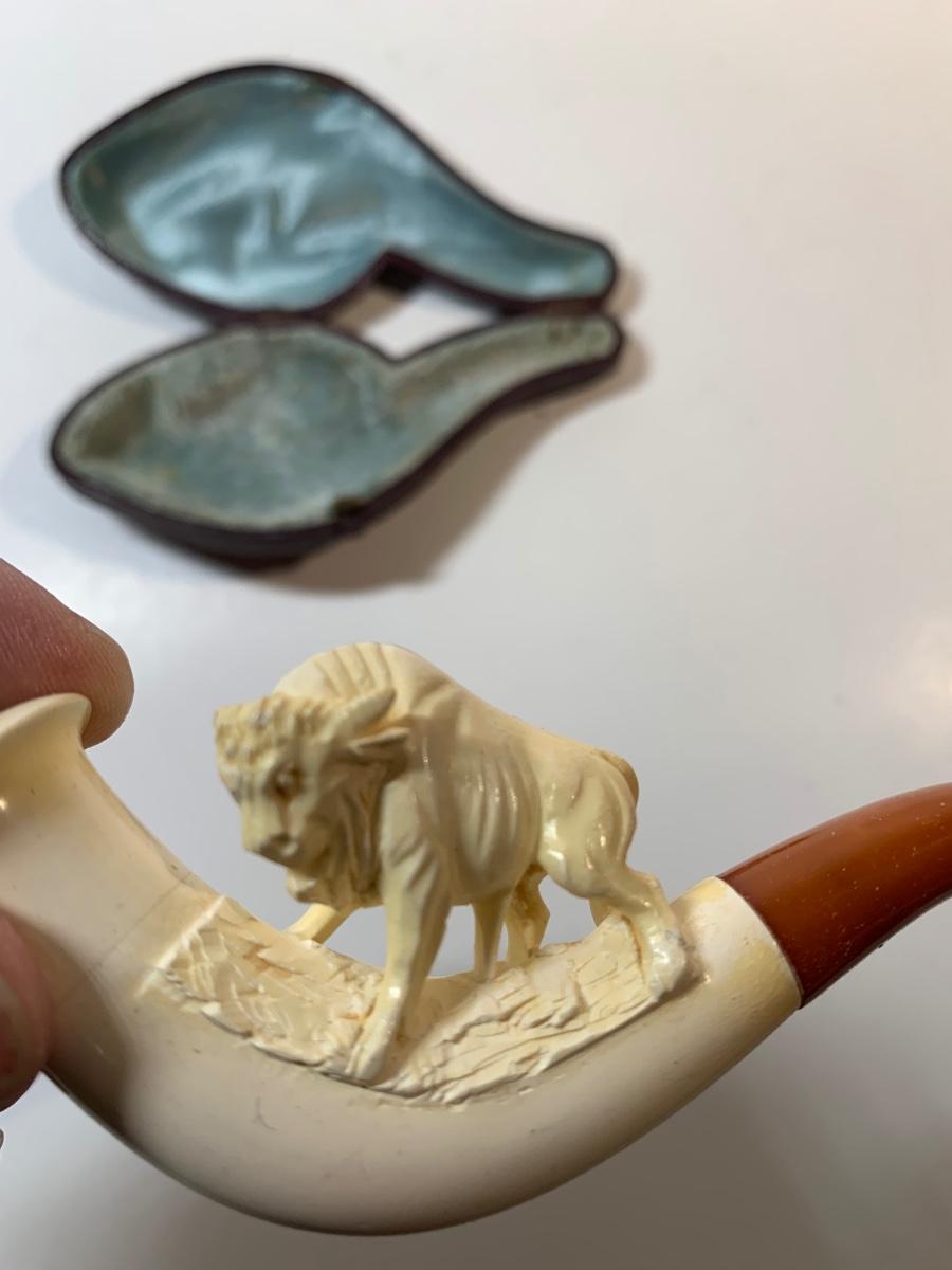 In the style of Meerschaum and certainly the same quality this finely carved pipe is a beauty