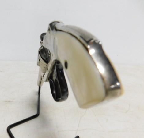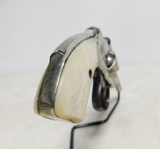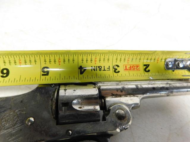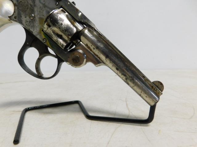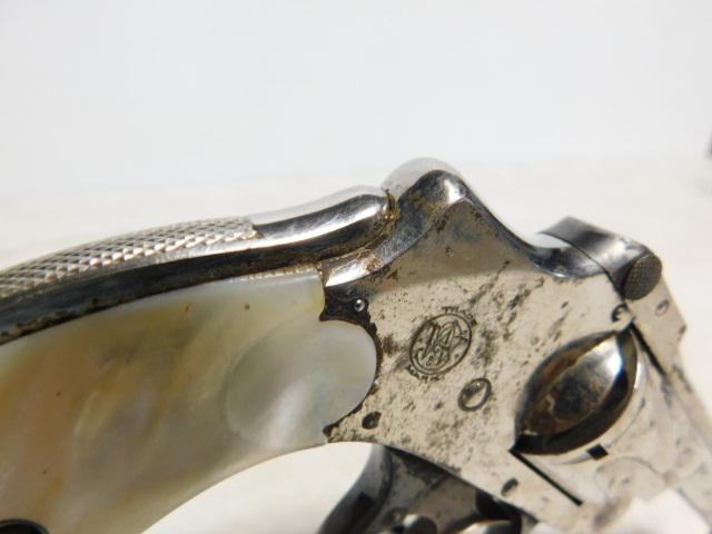 Smith and Wesson C & R Hammerless First Model .32 "Lemon Squeezer' Revolver with Pearl Handle Grips top break with 3.5" barrel nickel finish. All out-of-state transfers or shipping orders are by FFL dealers only. SC and TN residents may carry long guns only (no revolvers or pistols) from NC if your state law permits. We prefer that you have a PPP or CWP to purchase long guns if possible but not mandatory. . All firearm purchases require a 4473 background form. Please be advised: Due to high volume purchases, NICS acceptance could be delayed by hours or days.