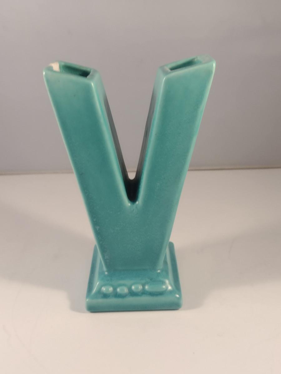 Antique Poppy Trail Pottery WWII 'V is for Victory' Vase- Approx 6" Tall