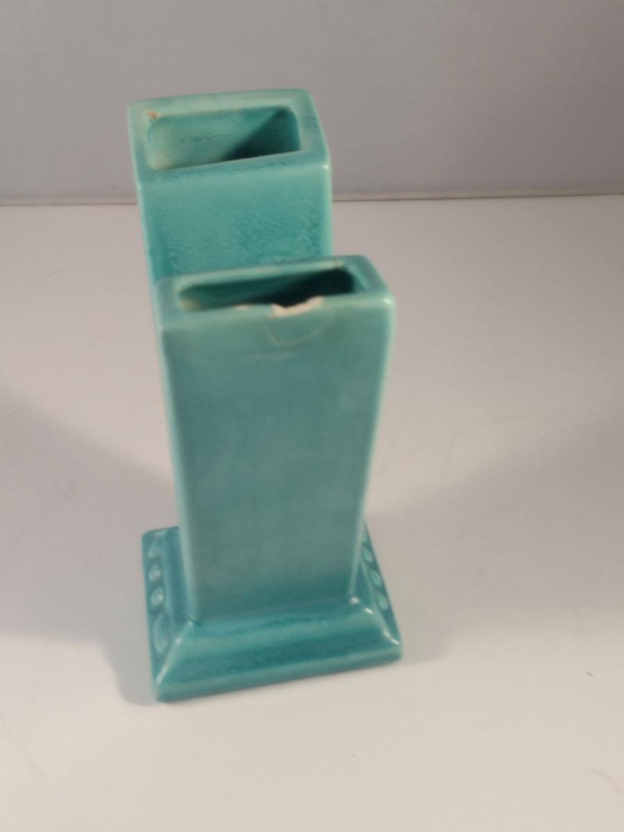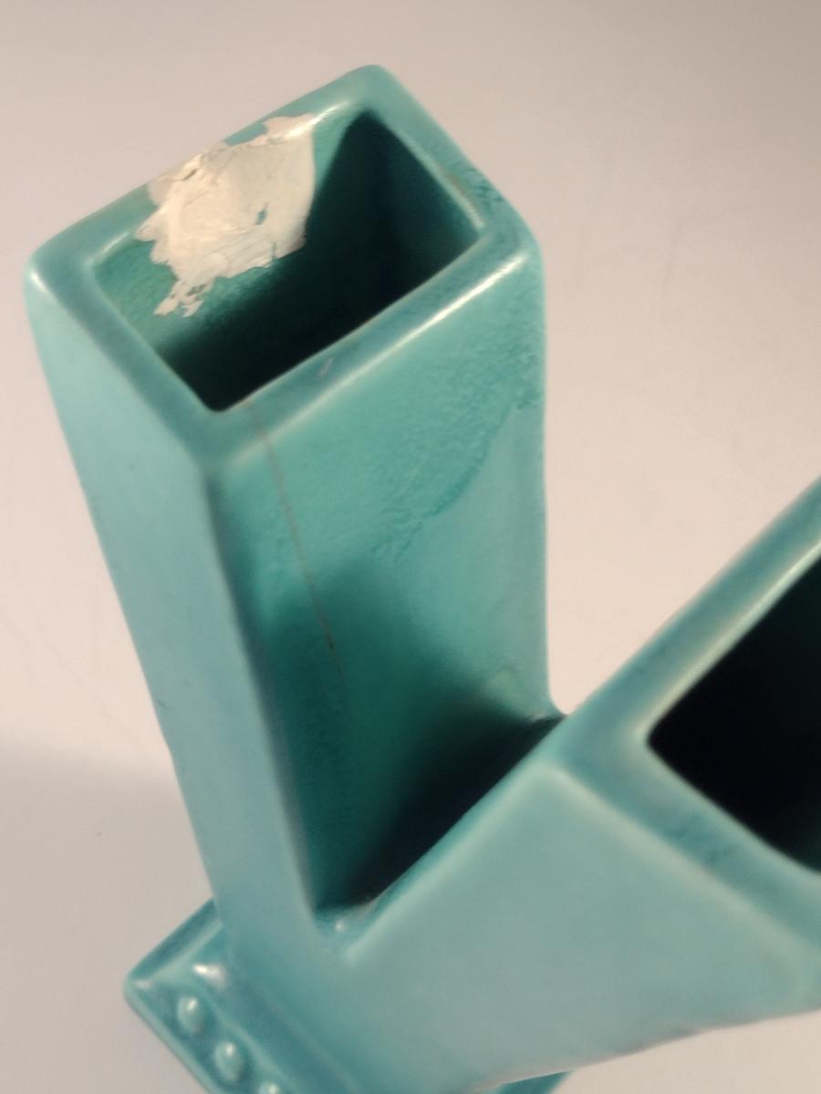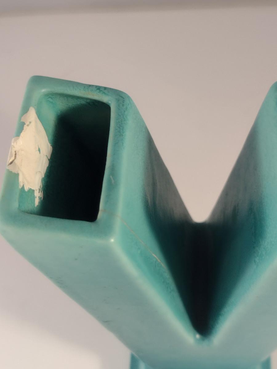 Antique Poppy Trail Pottery WWII 'V is for Victory' Vase- Approx 6" Tall. Item has large chip at top- please see all pictures.