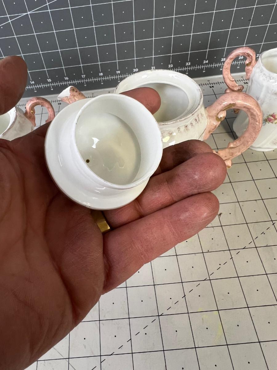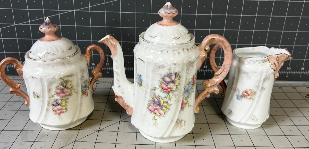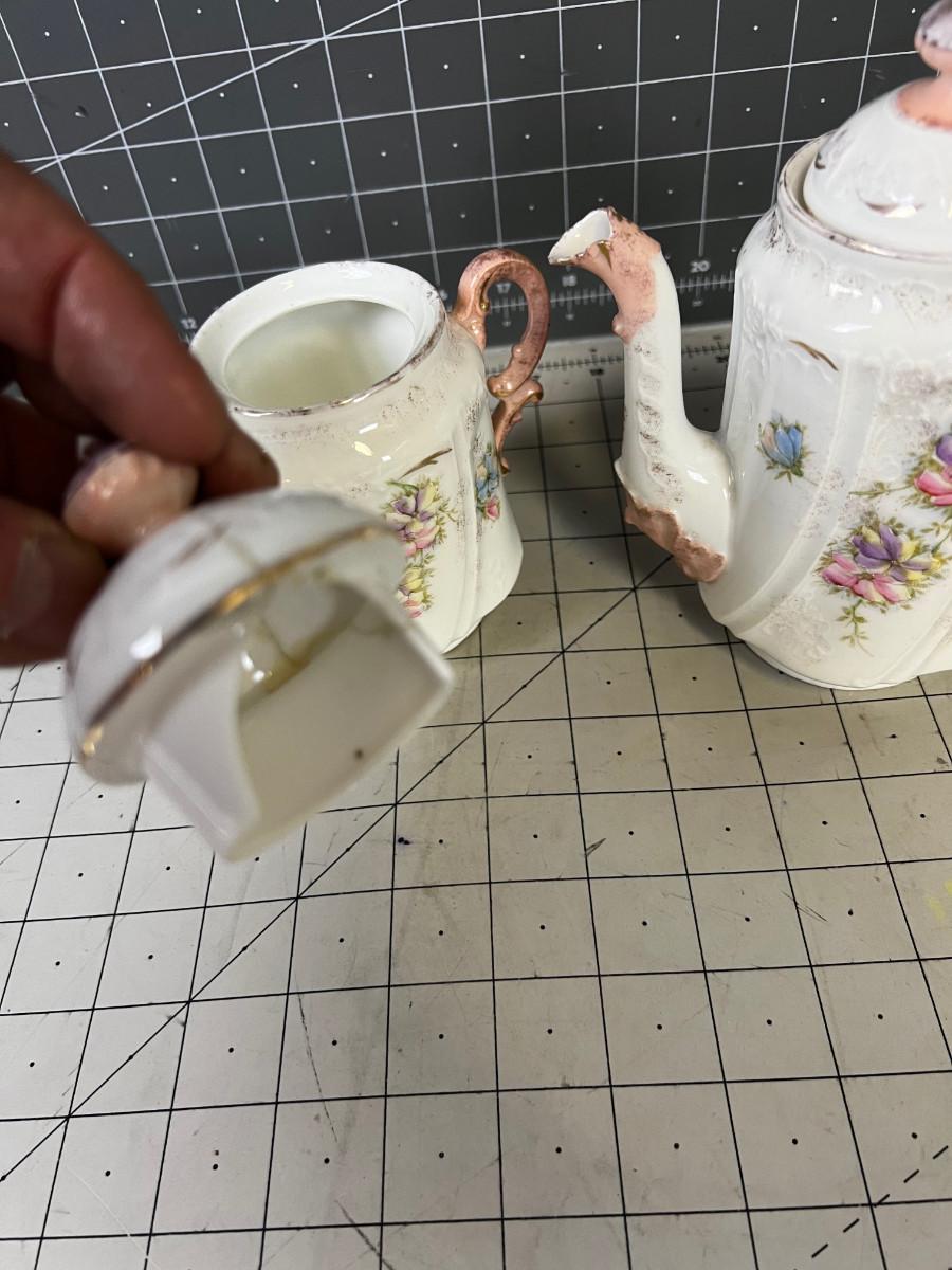 Some Damage to one on the lids. This is Very old and Beautiful. Its pretty to look at.