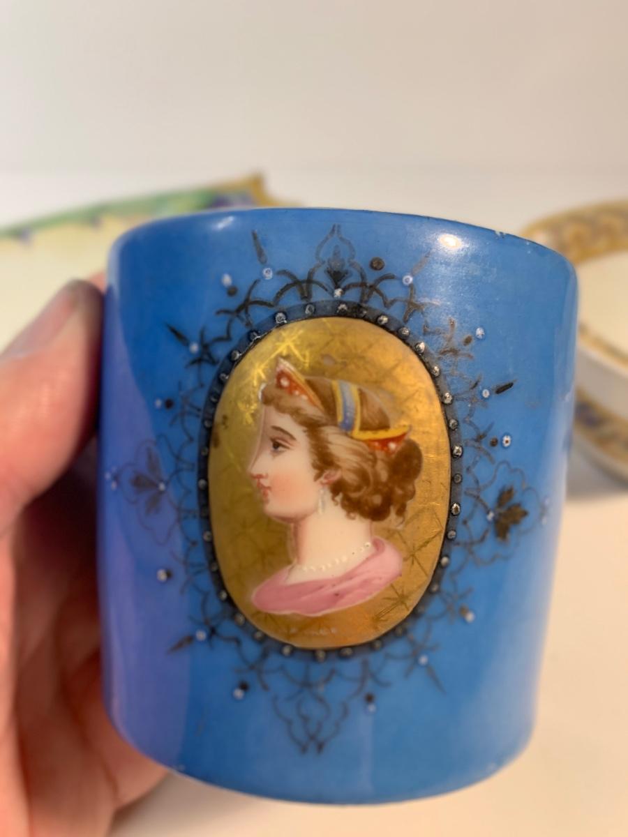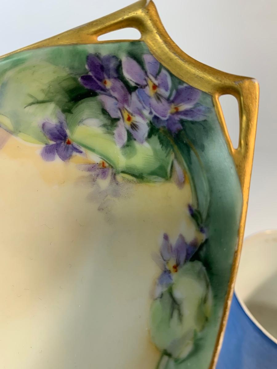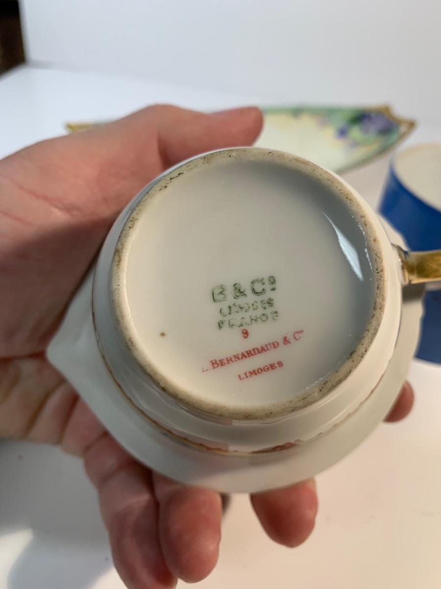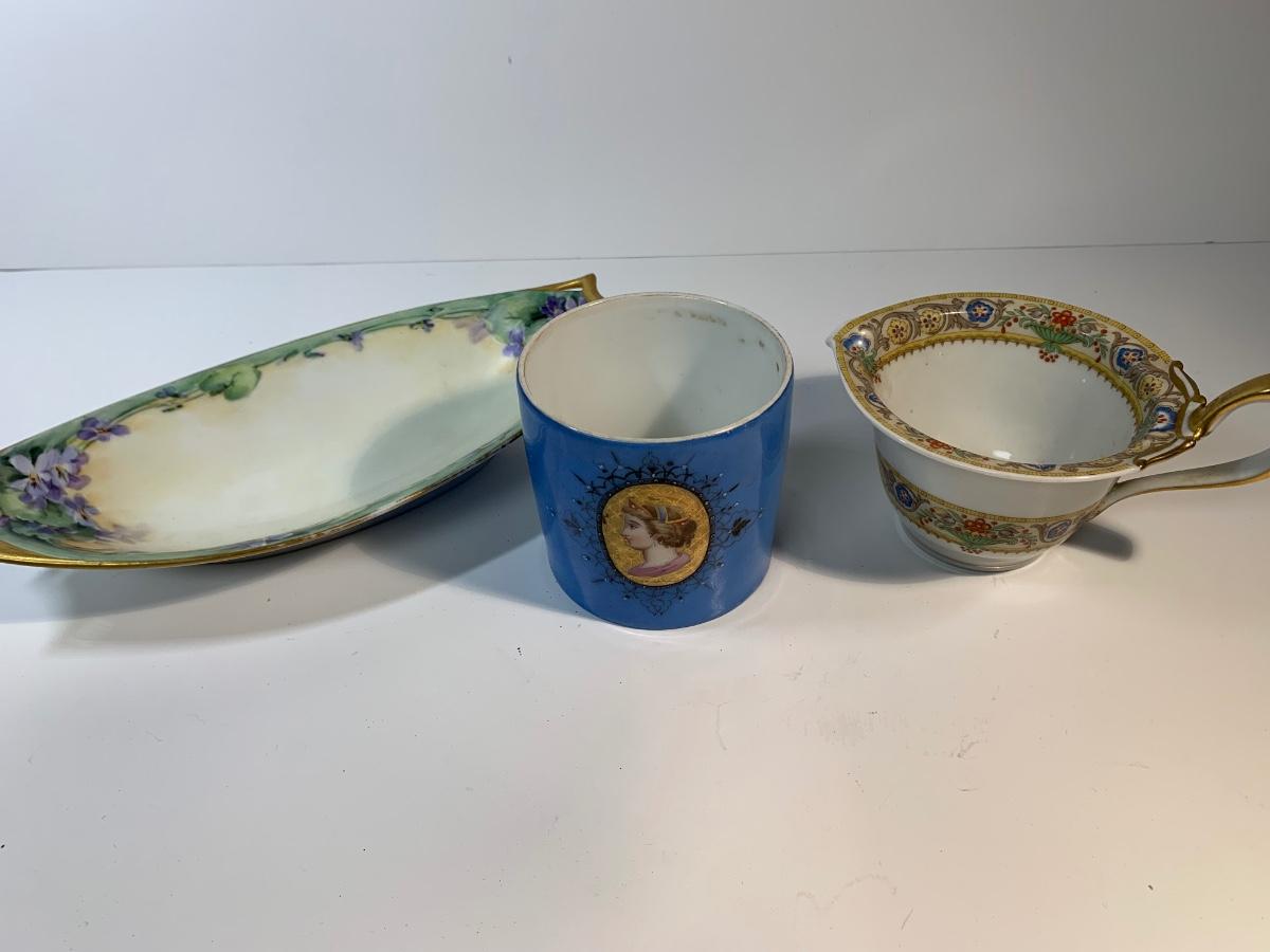 Three porcelain pieces one unmarked but looks like early Limoges