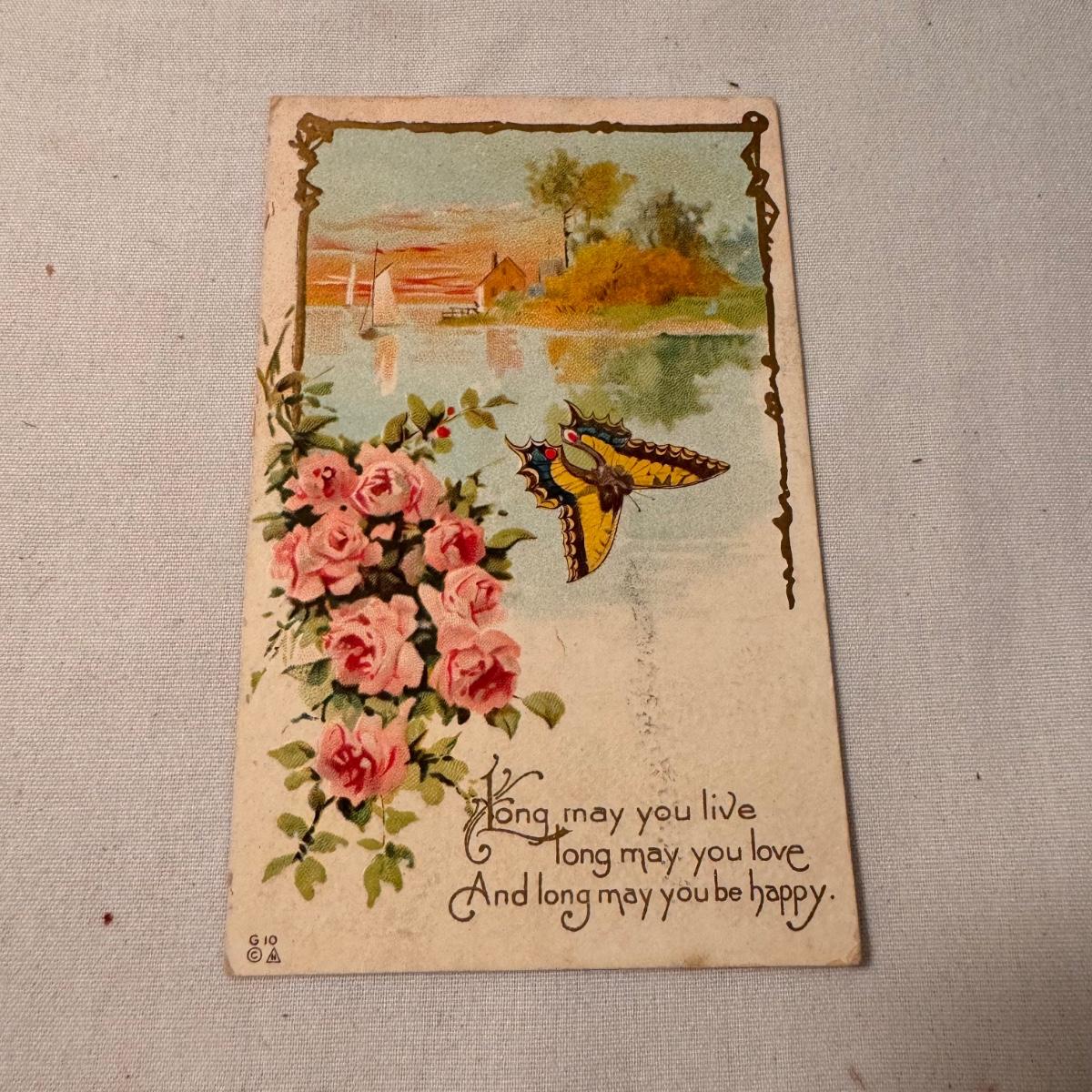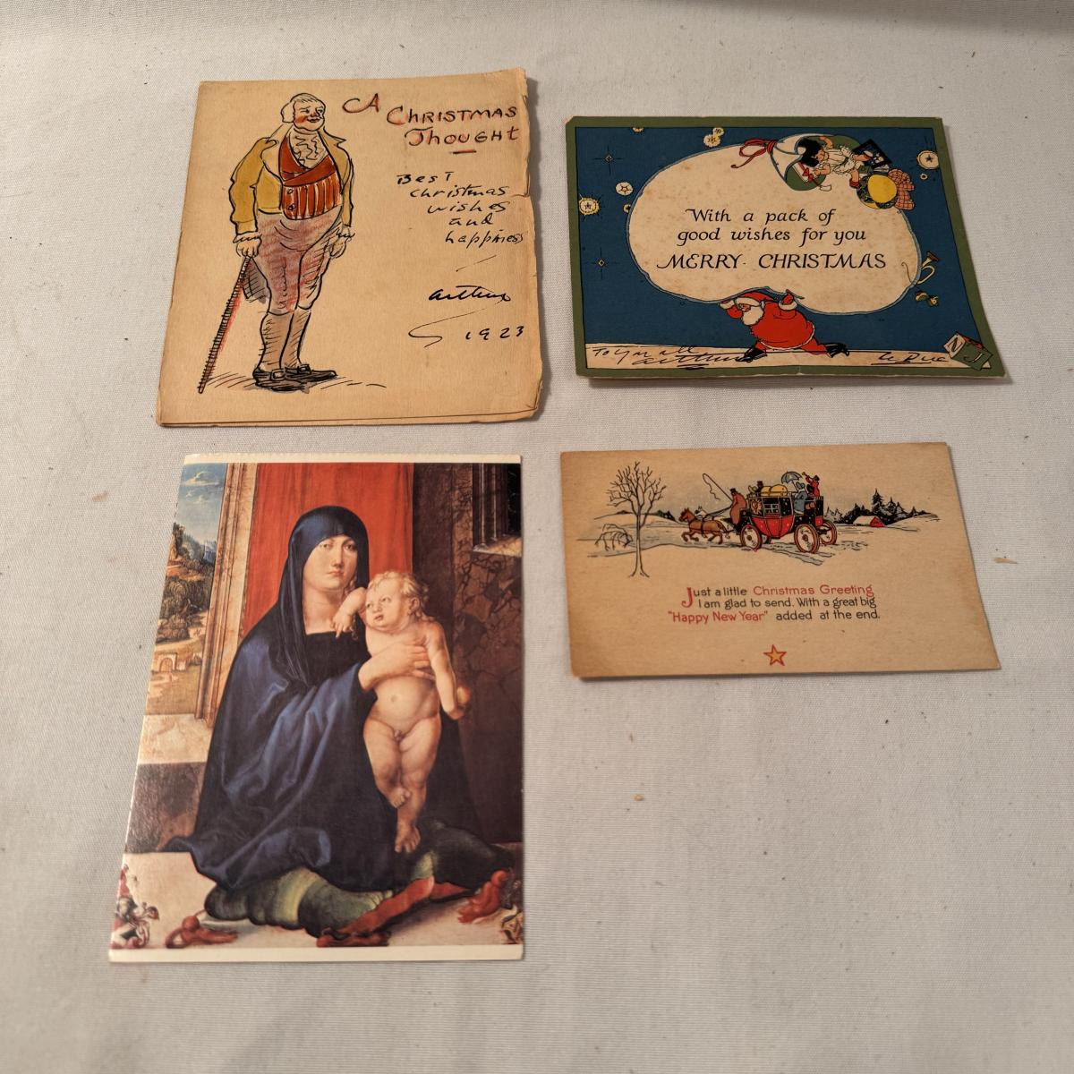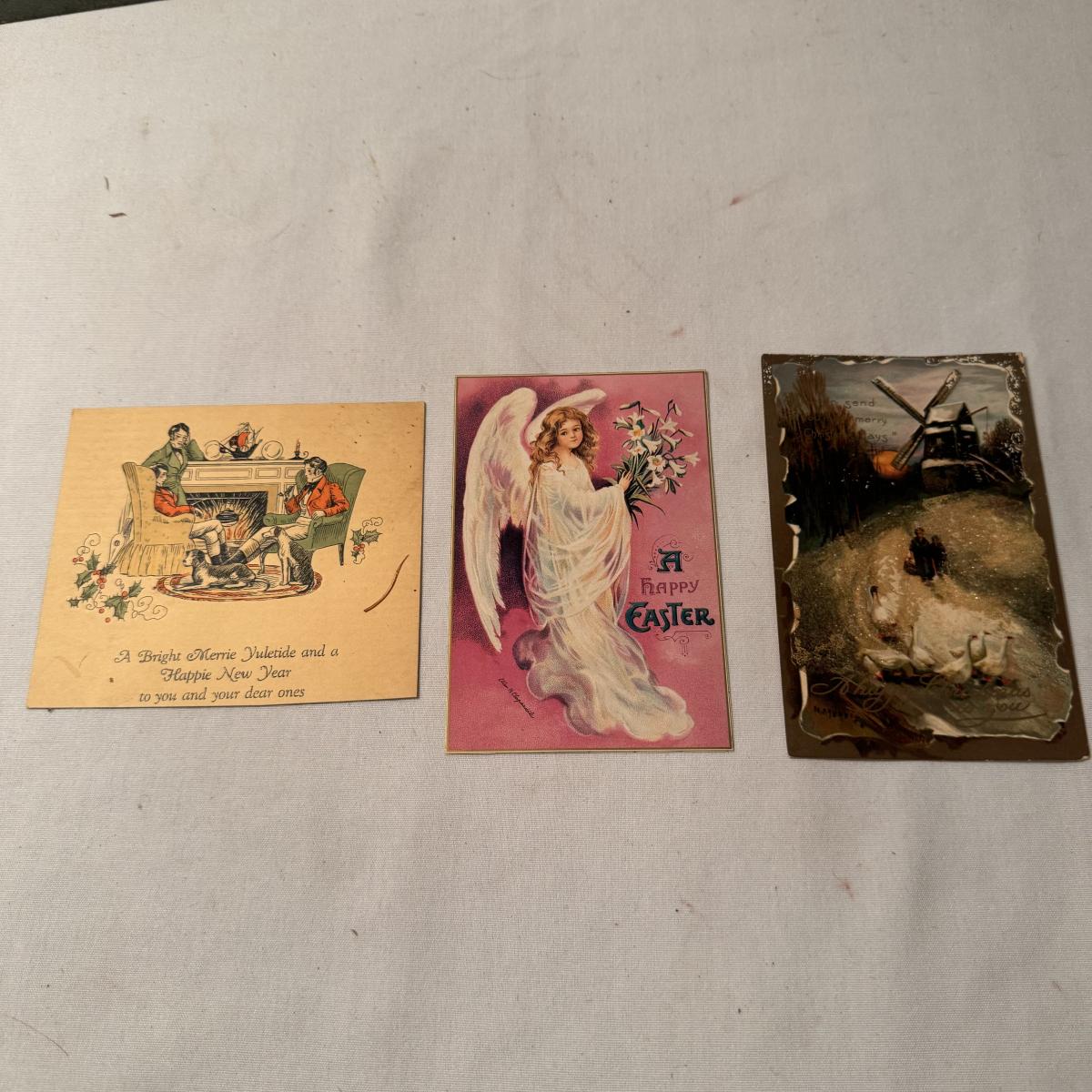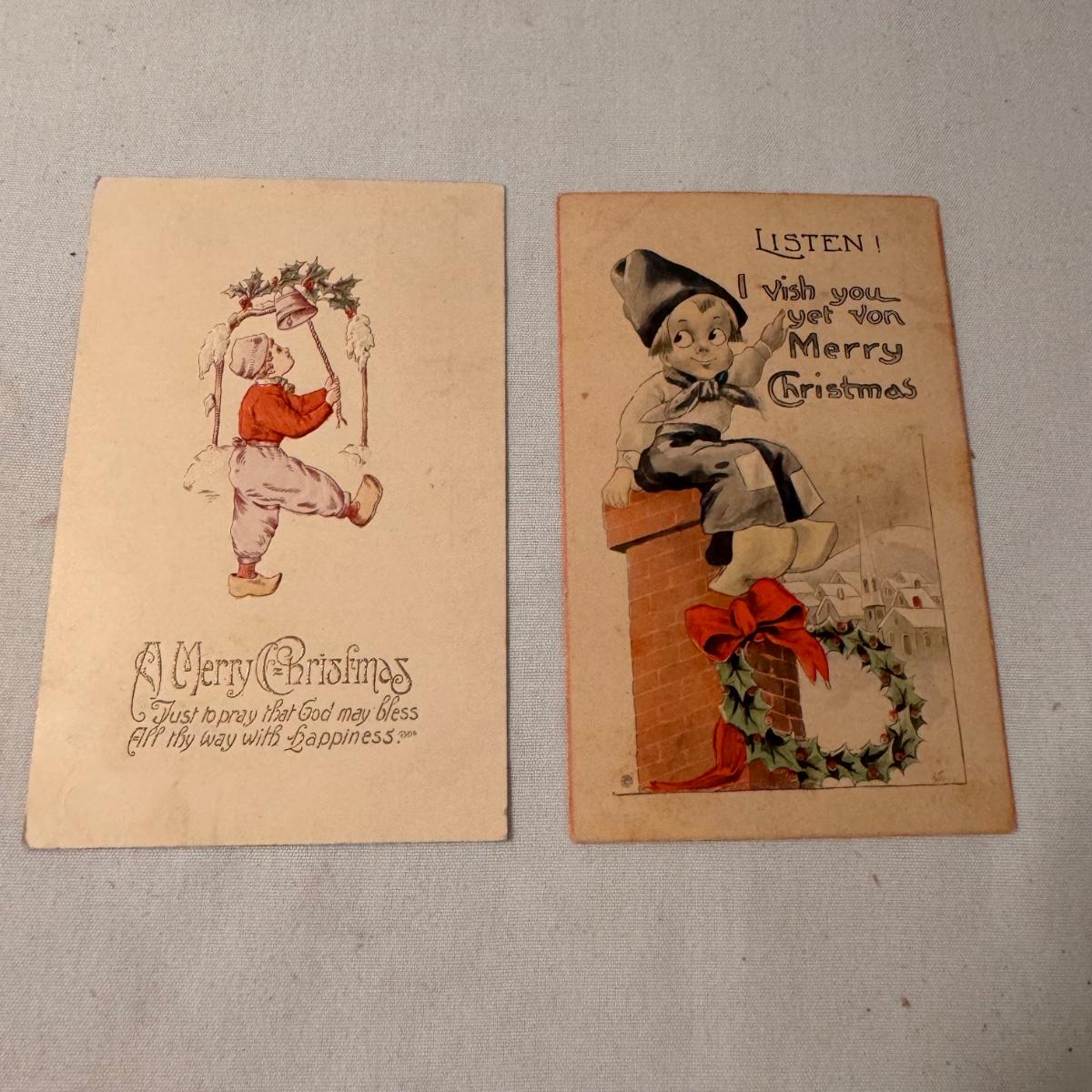 This lot includes one empty post card album, one basket, several vintage stamps, and over fifteen antique post cards. The post card album measures 14” x 9.25”H. Shipping available. All sales are final. No returns or refunds. Please bid accordingly.