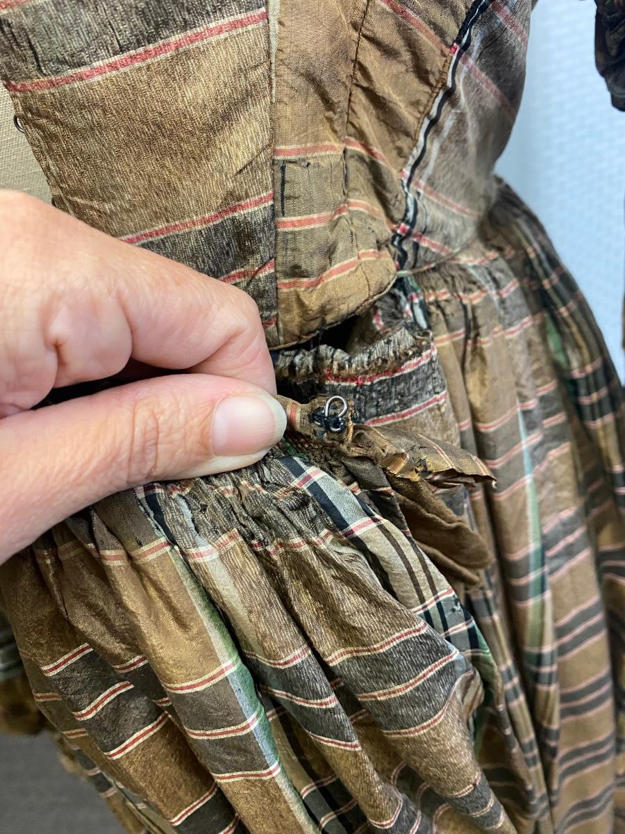 Antique Post Civil War Era Late 1860s Silk Plaid Wedding Dress