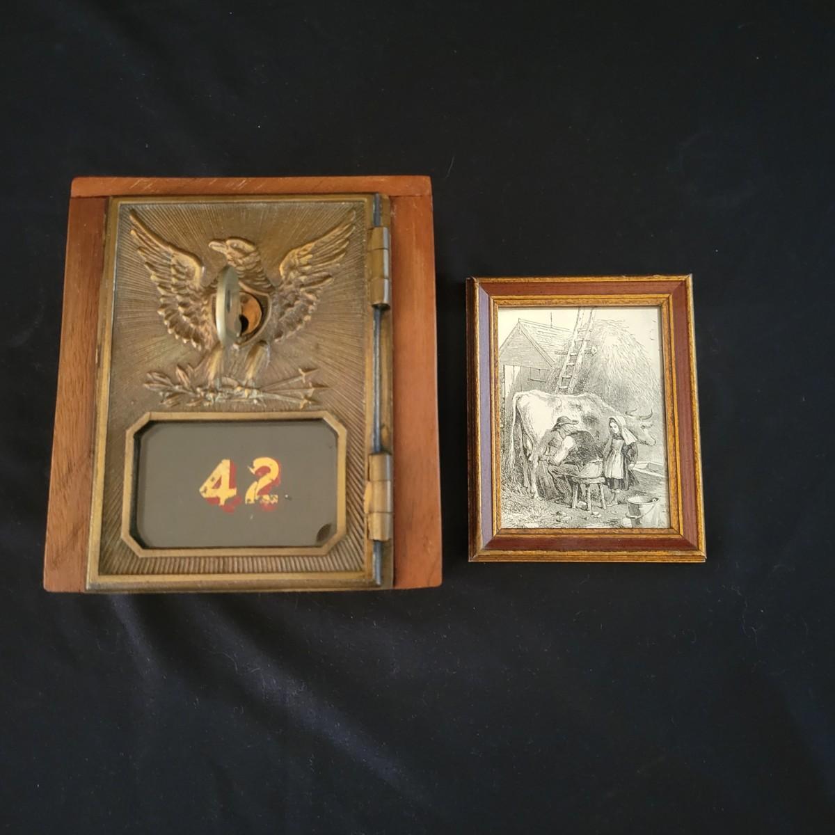 Antique Post Office Mailbox Door Bank and a Reverse Painted Mirror(FR-DW)