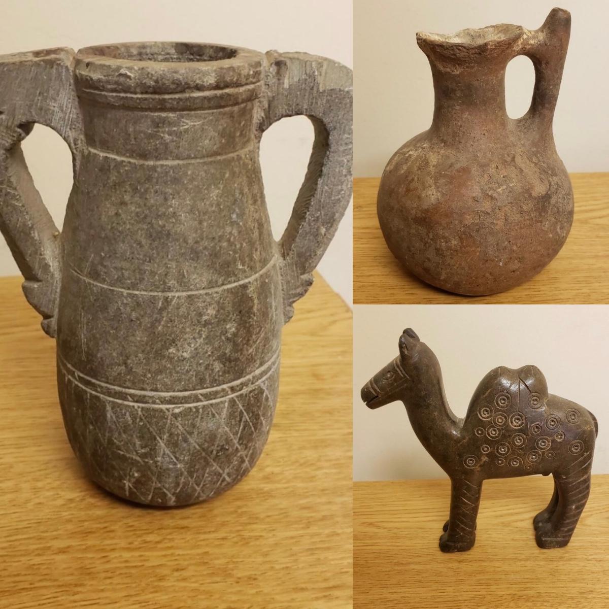 Carved Stone Camel & Pair of Pitchers (O-KD)