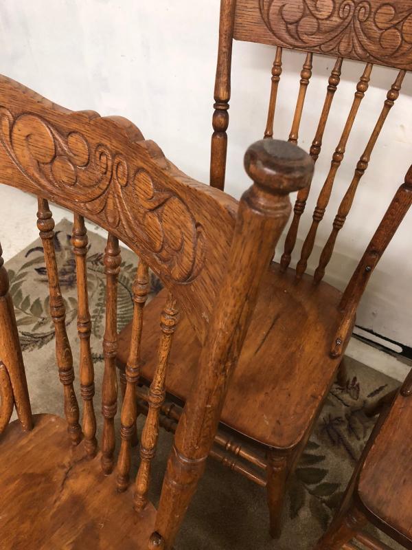Here are four(4) matching pressed back dining chairs circa 1890's on these true antiques...Good condition with light normal use wear...