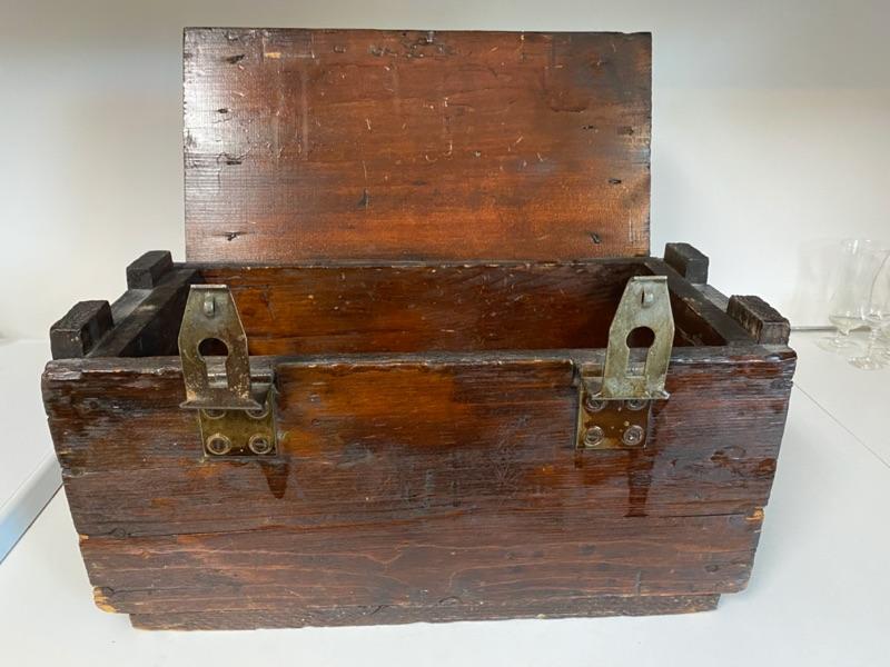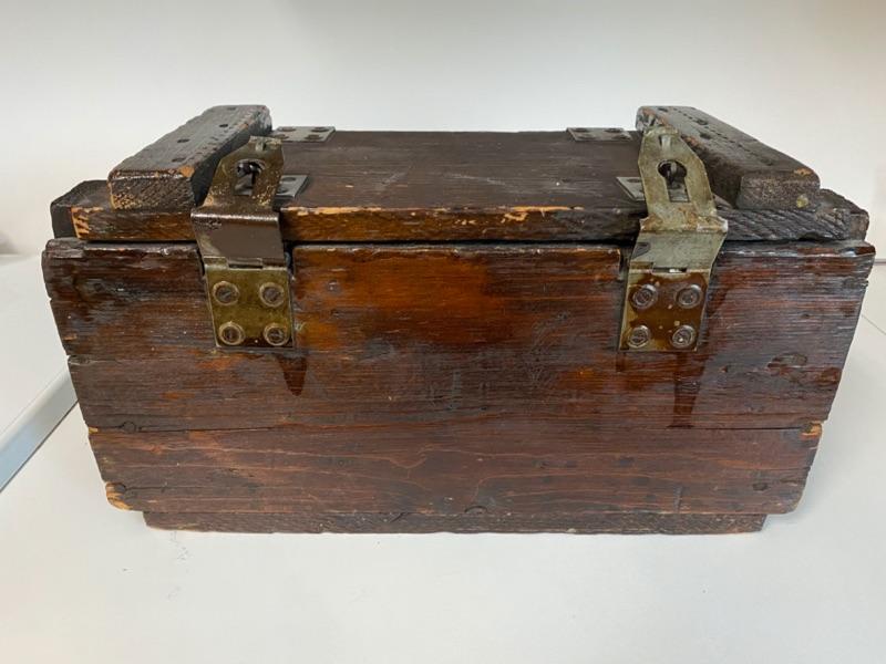 Beautiful antique 19th c handcrafted primitive wood box with two latches. 20" X 81/2" X10"