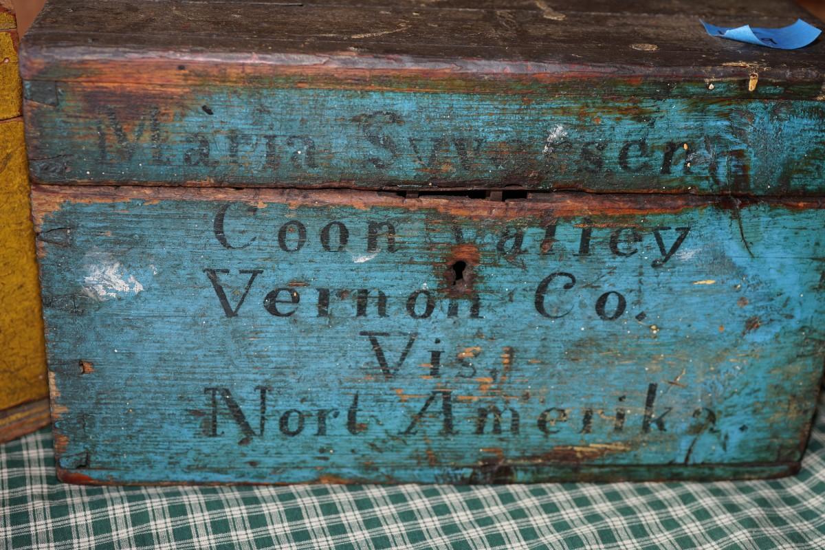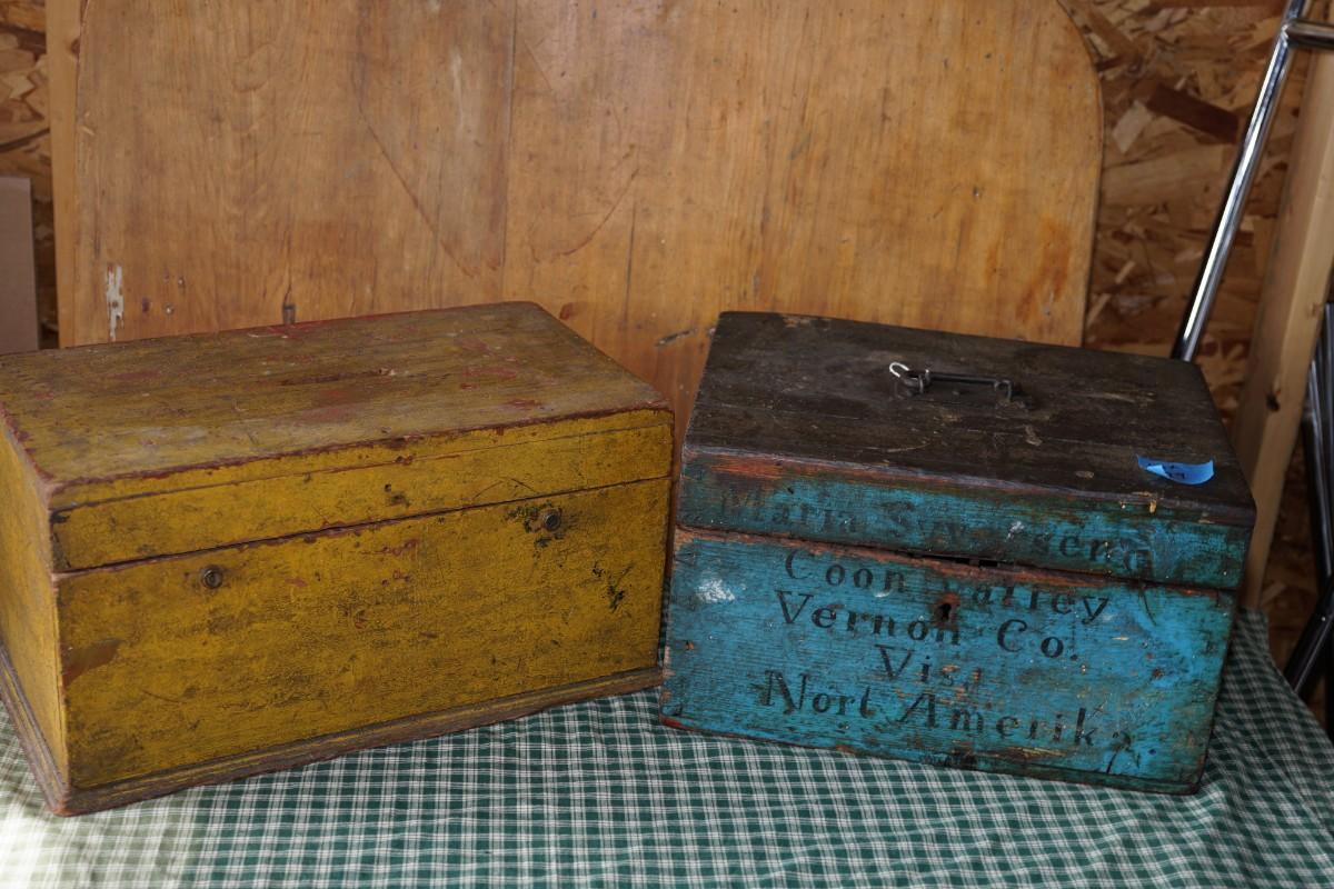 ANTIQUE PRIMITIVE BOXES ONE "COON VALLEY" VERNON ,WI. "NORTH AMERIKA"