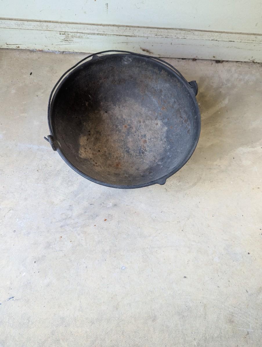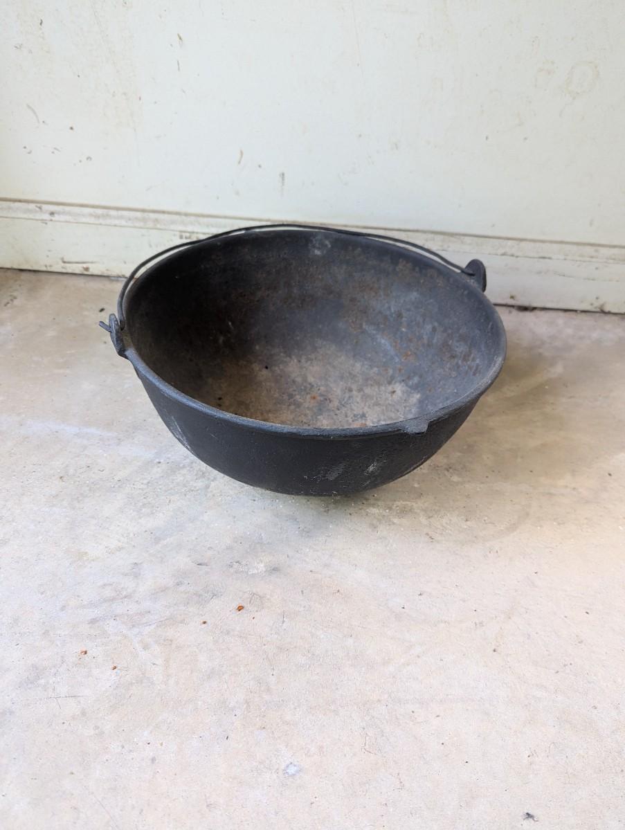 Antique Primitive Cast Iron Hanging Pot 12" (G)