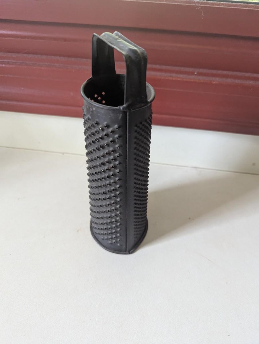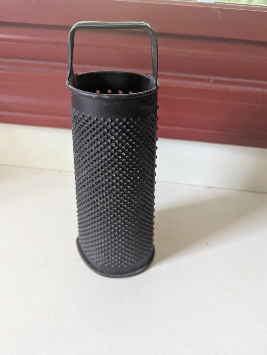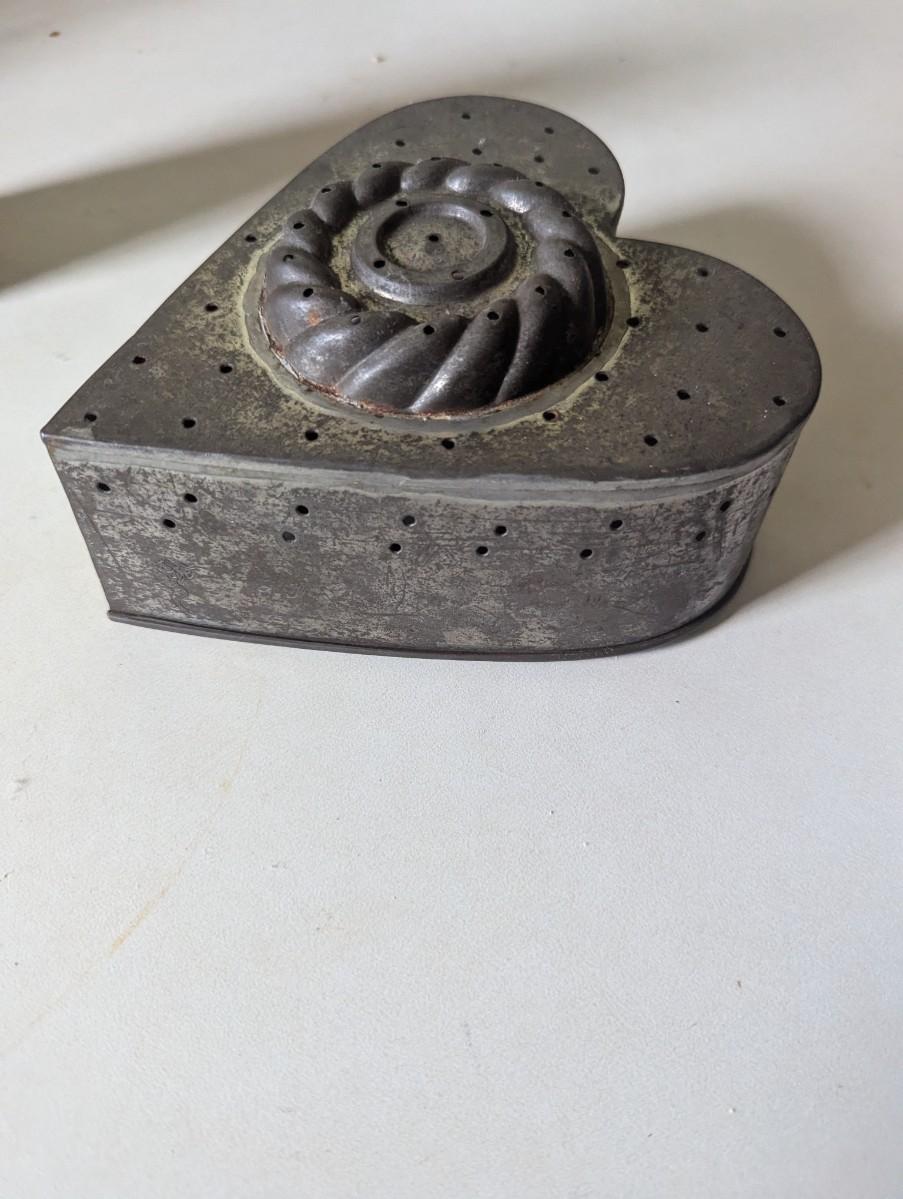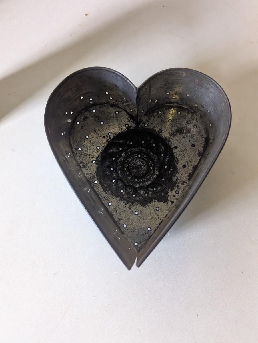 Antique Primitive Farmhouse American Heart Shaped Tin Cheese Strainer Round Grater (L)