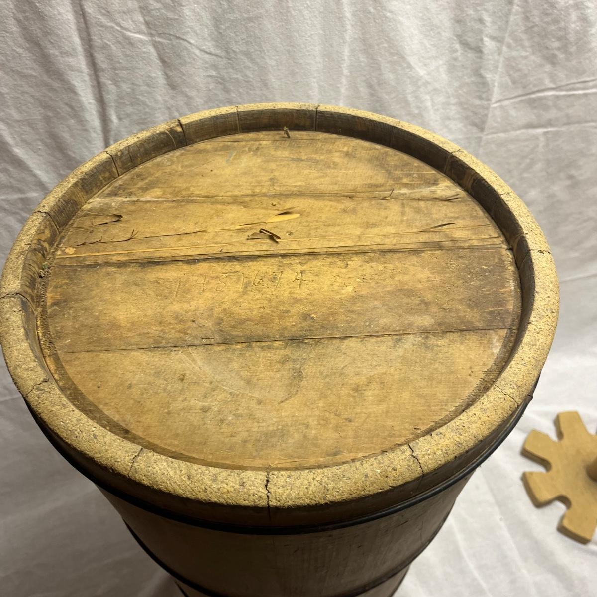Antique Primitive Large Old Banded Wood Slat Butter Milk Churn With Dasher & Lid (BO-MG)