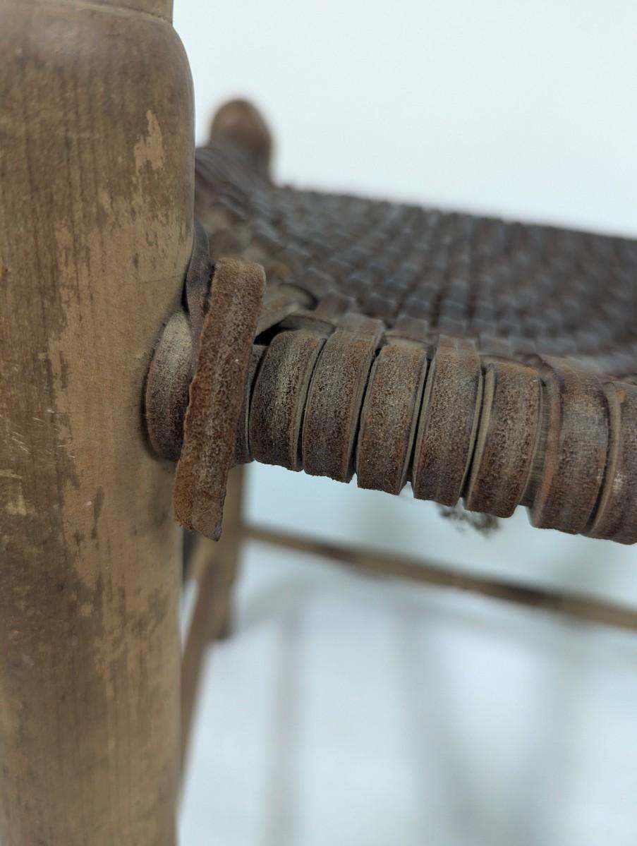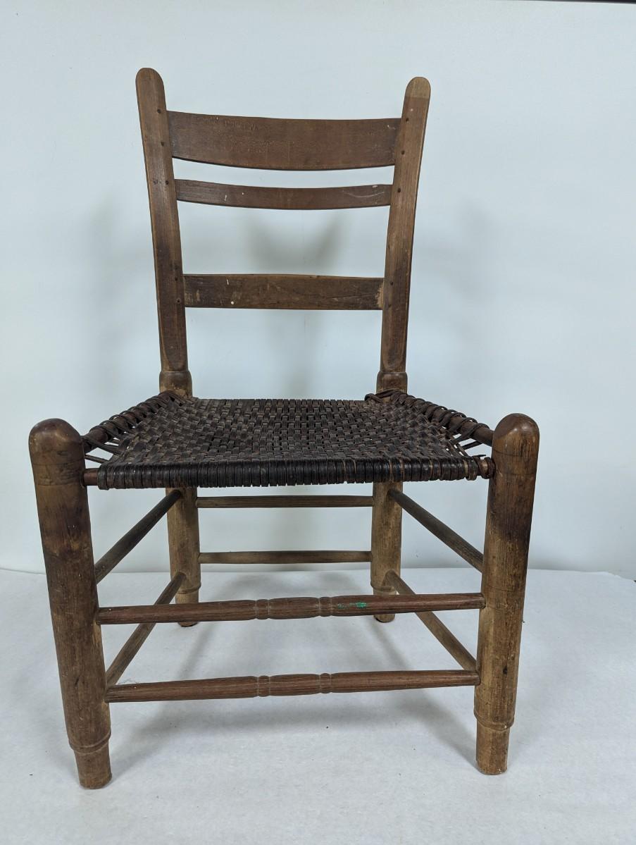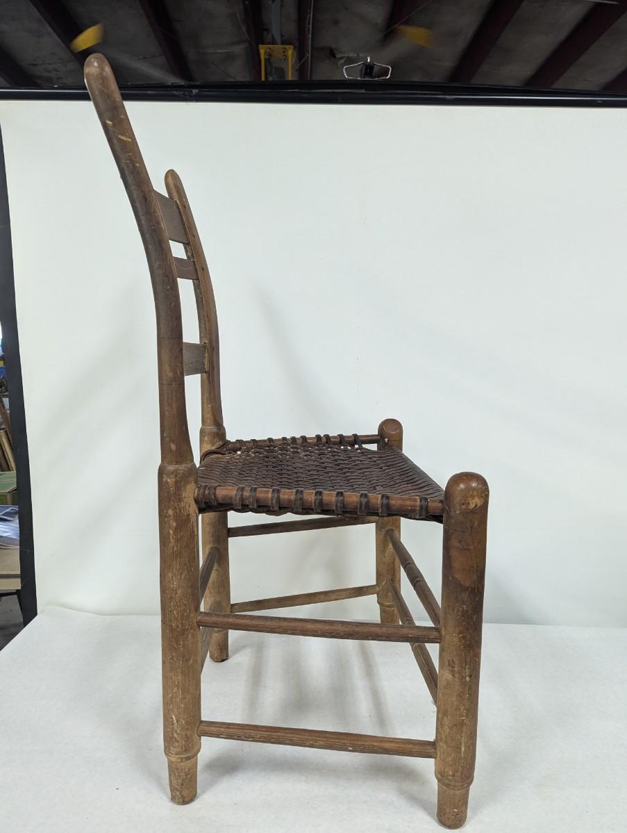 Antique Primitive Rustic Shaker Chair With Leather Seat