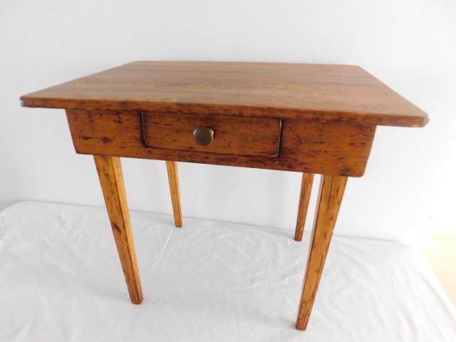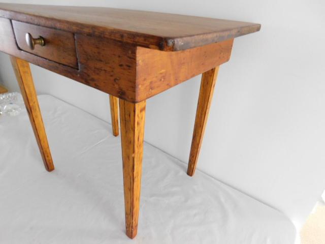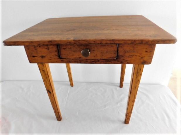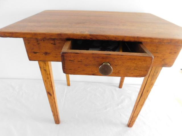 Antique Primitive Solid Wood Maple Table with Single Drawer