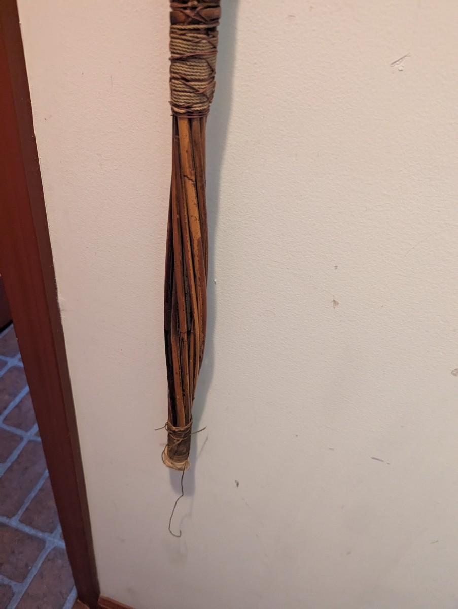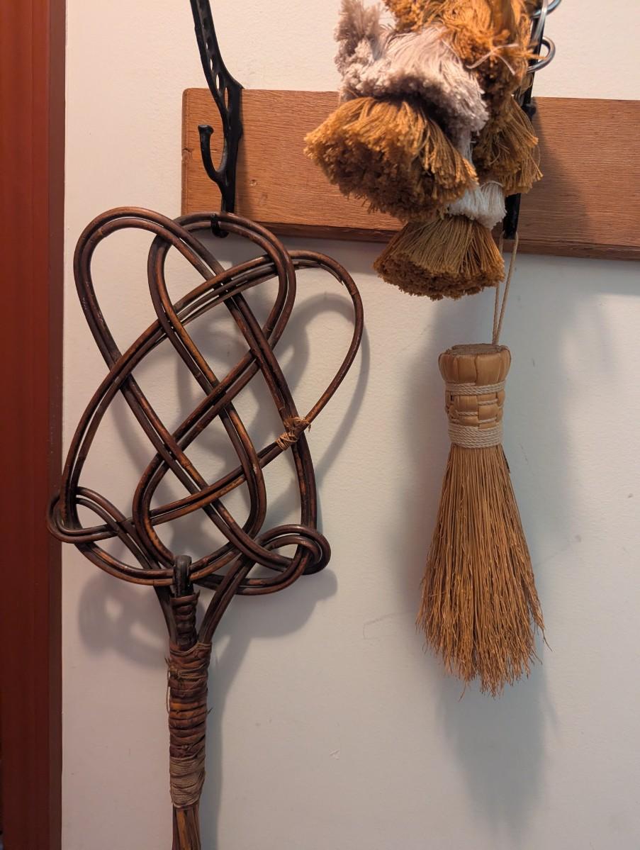 Antique Primitive Woven Rattan Rug Carpet Beater 33" & Hand Held Brush With Tassels (H)