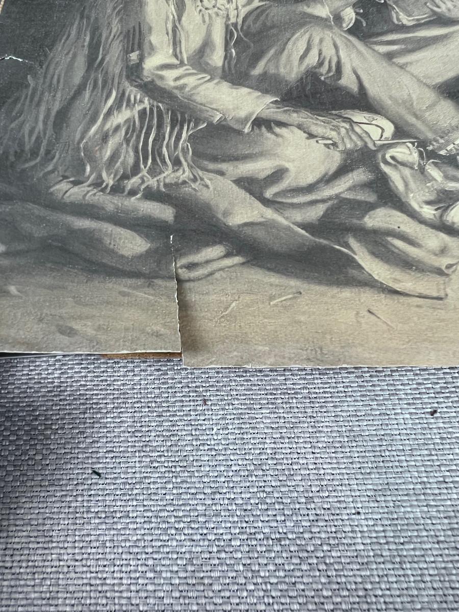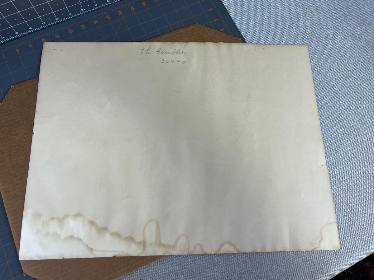 WOW INTERESTING. Written in Pencil on the Back . Unfortunately there is a little Damage on the edge and a tear in the lower left corner. 20 X 15 titled "THE GAMBLER".