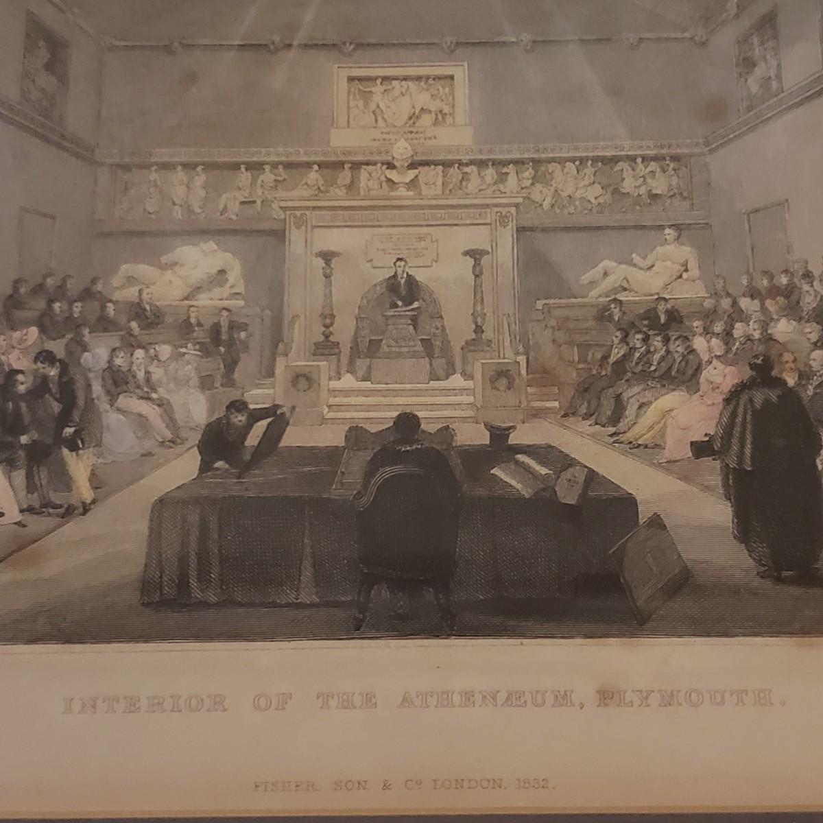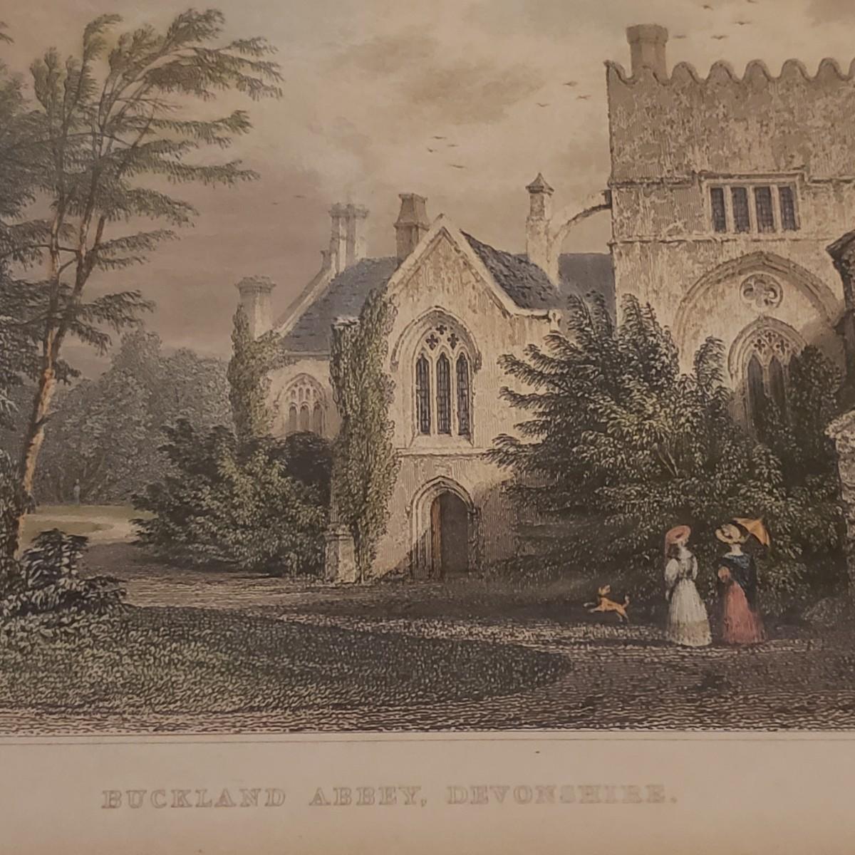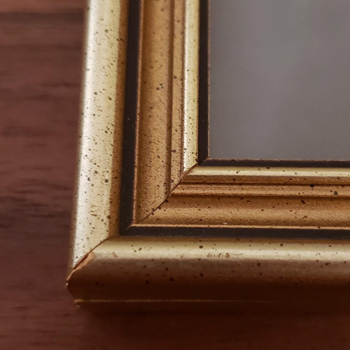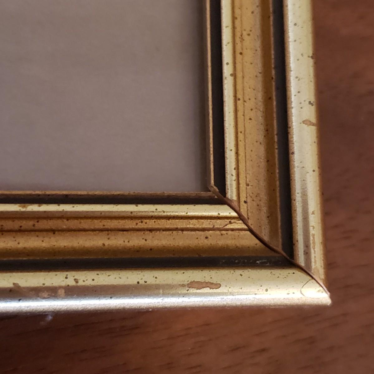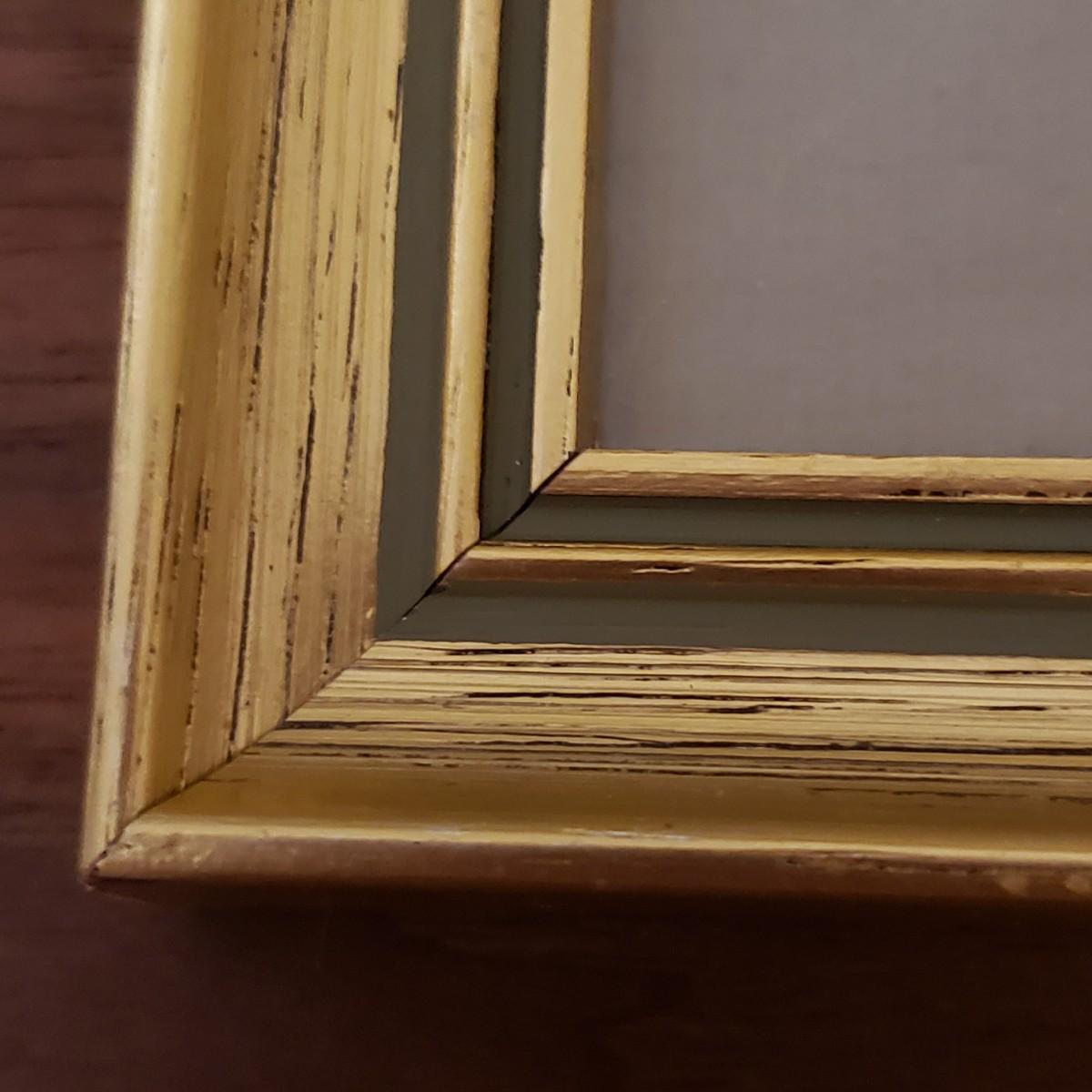 These four prints from England are framed in glass with gold paint on wood. The three largest frames measure 11" x 10". The sticker on the back of three of the frames claim the prints are more than 100 years old.