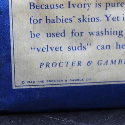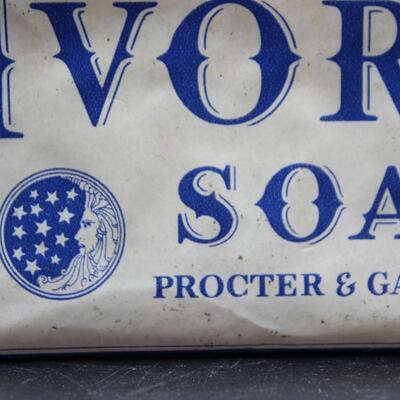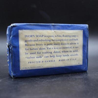 Antique Procter and Gamble Unopened Large Ivory Soap Bar, there are no significant rips or tears to the packaging and is in good condition. The graphics and colors are still vibrant, dates to around 1940. Check pictures for more details and for sizing.